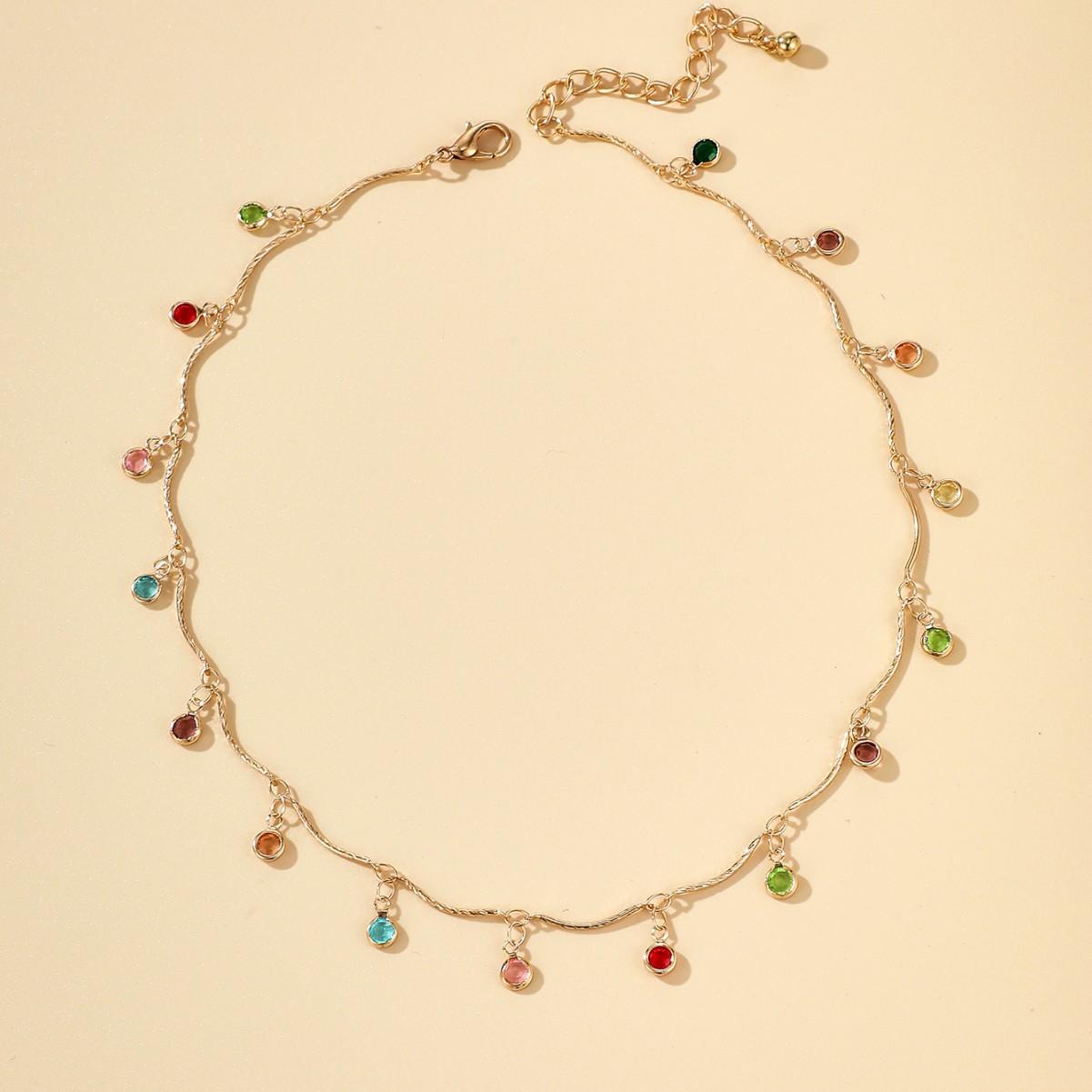 Nuevo collar transfronterizo de estilo europeo y americano con borlas de cuentas redondas multicolores, color caramelo, personalidad sencilla con incrustaciones de diamantes de colores.