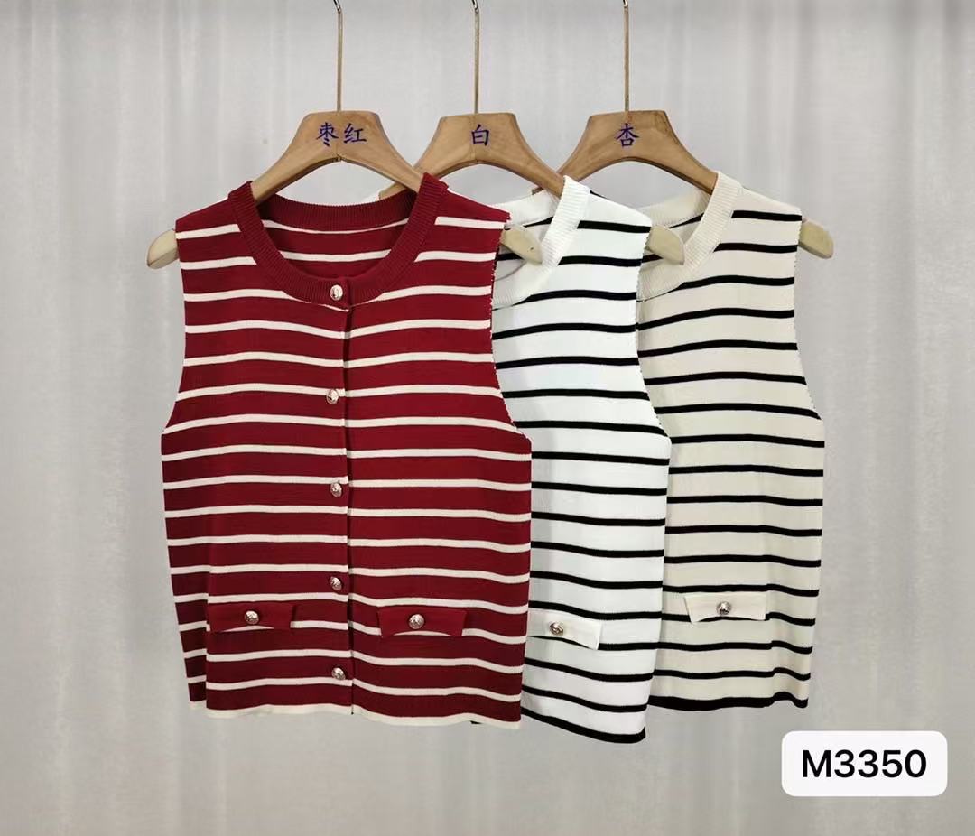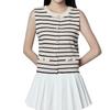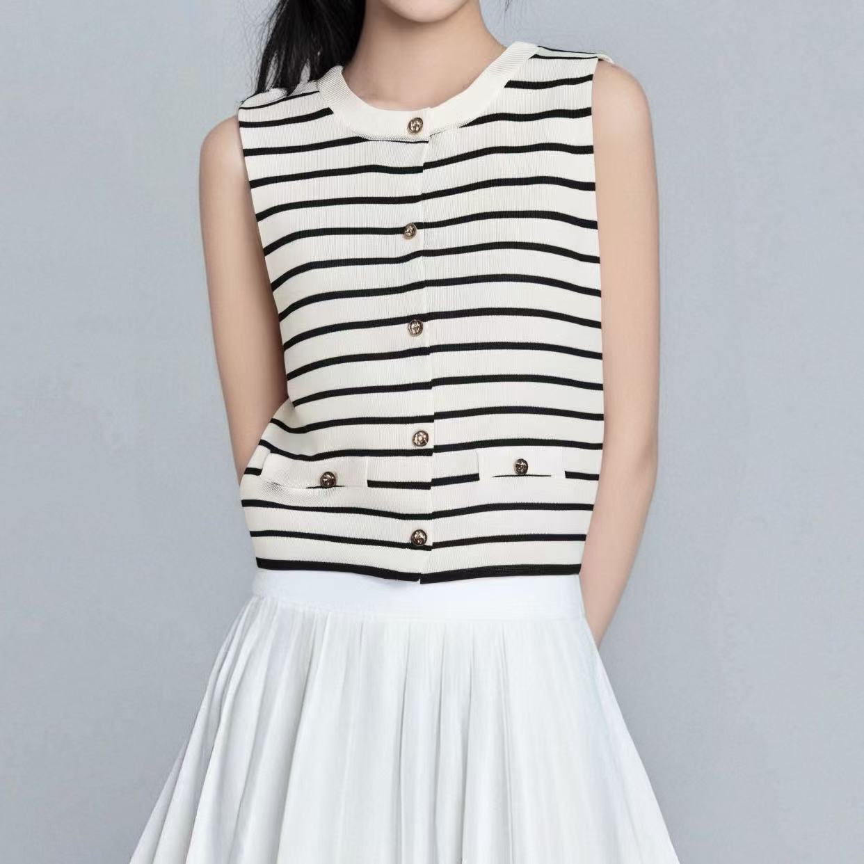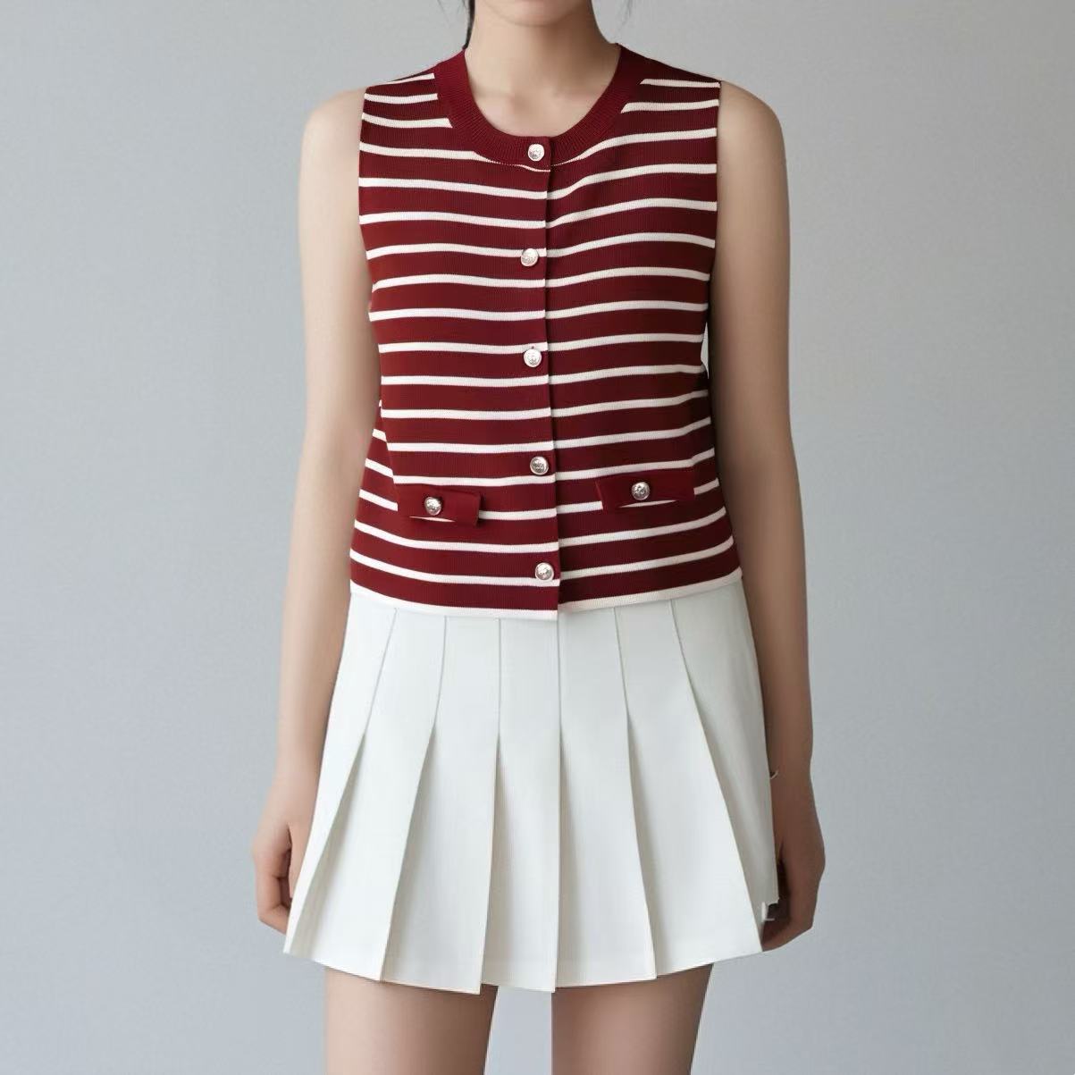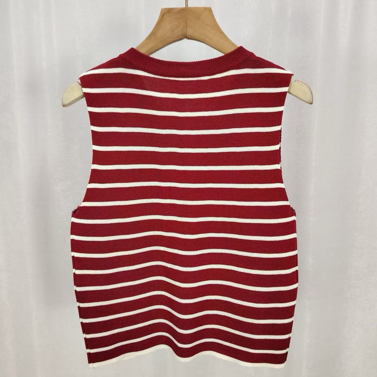 Nuevo Otoño e Invierno Color Sólido Rayado Cuello Redondo Sin Mangas Chaleco de Punto para Mujer Suelto Simple Base Casual Versátil Top