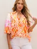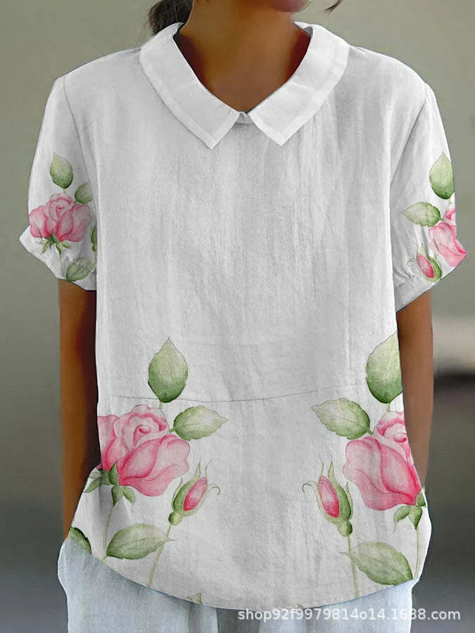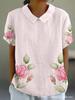 2025 Transfronterizo Nuevo Estilo Estampado Floral 3D Sombreado Verano Solapa Manga Corta Elegante Estilo Europeo y Americano Tops