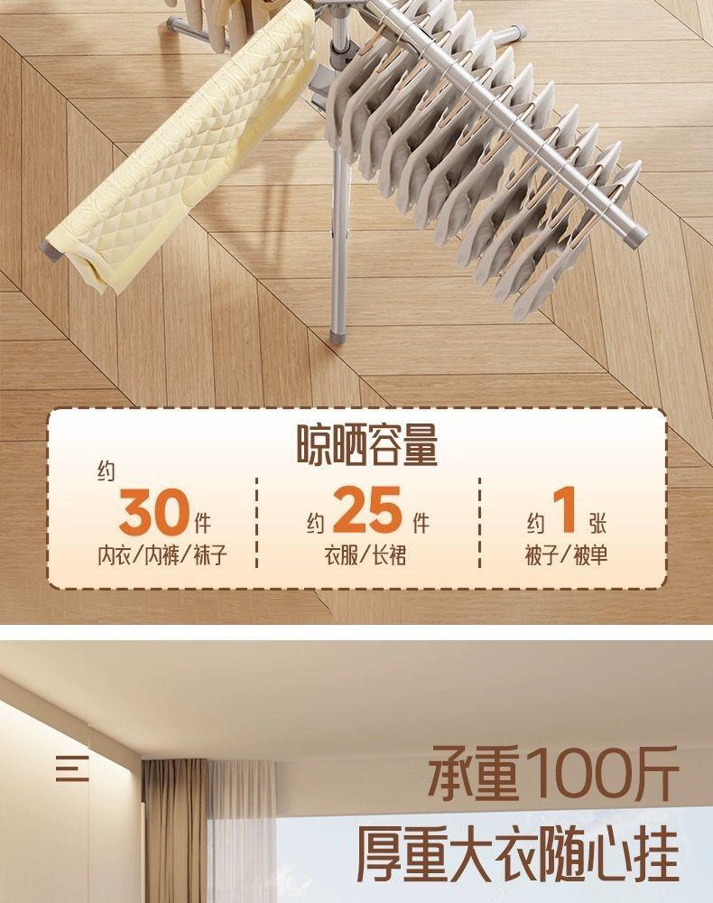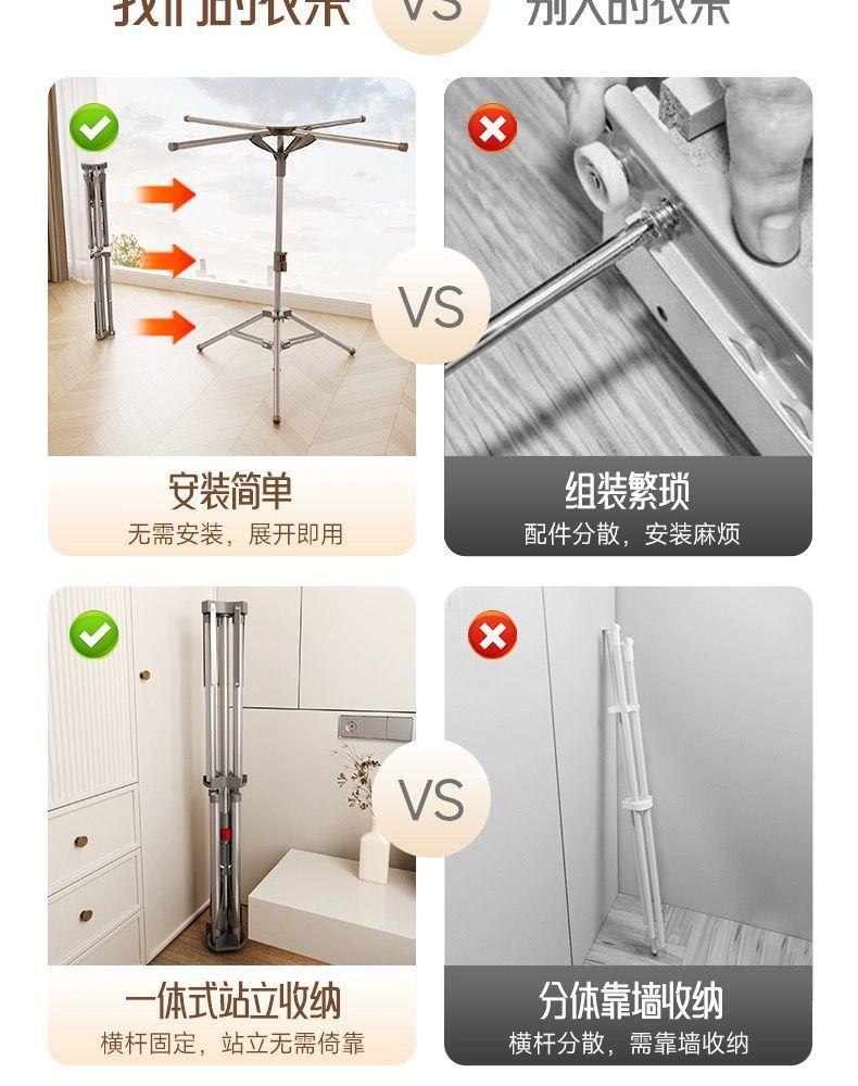 Nuevo Tendedero Plegable de Pie para Balcón/Habitación de Doble Barra Engrosada Interior Telescópico Multifuncional para el Hogar Interior y Exterior