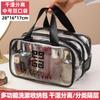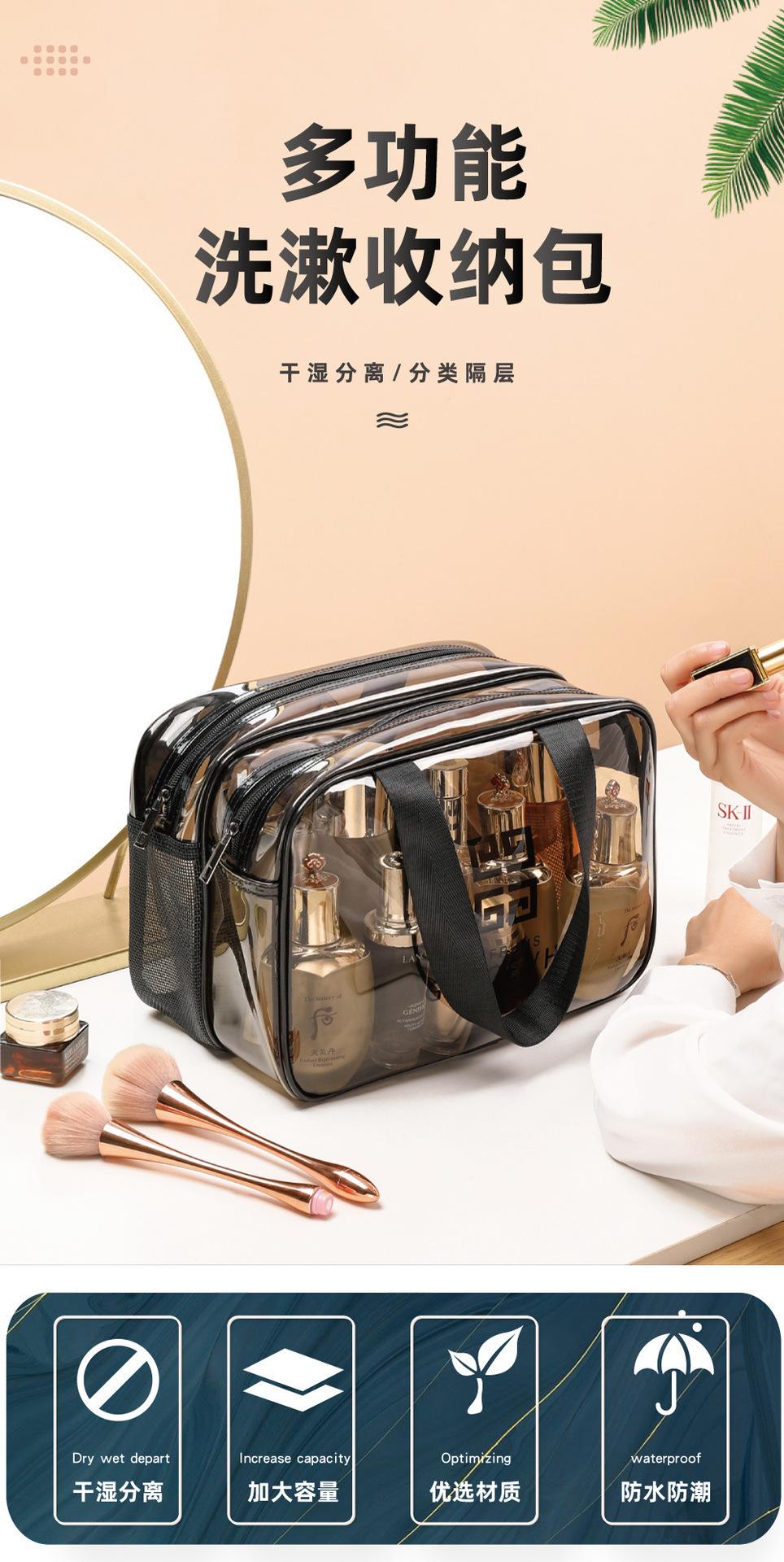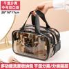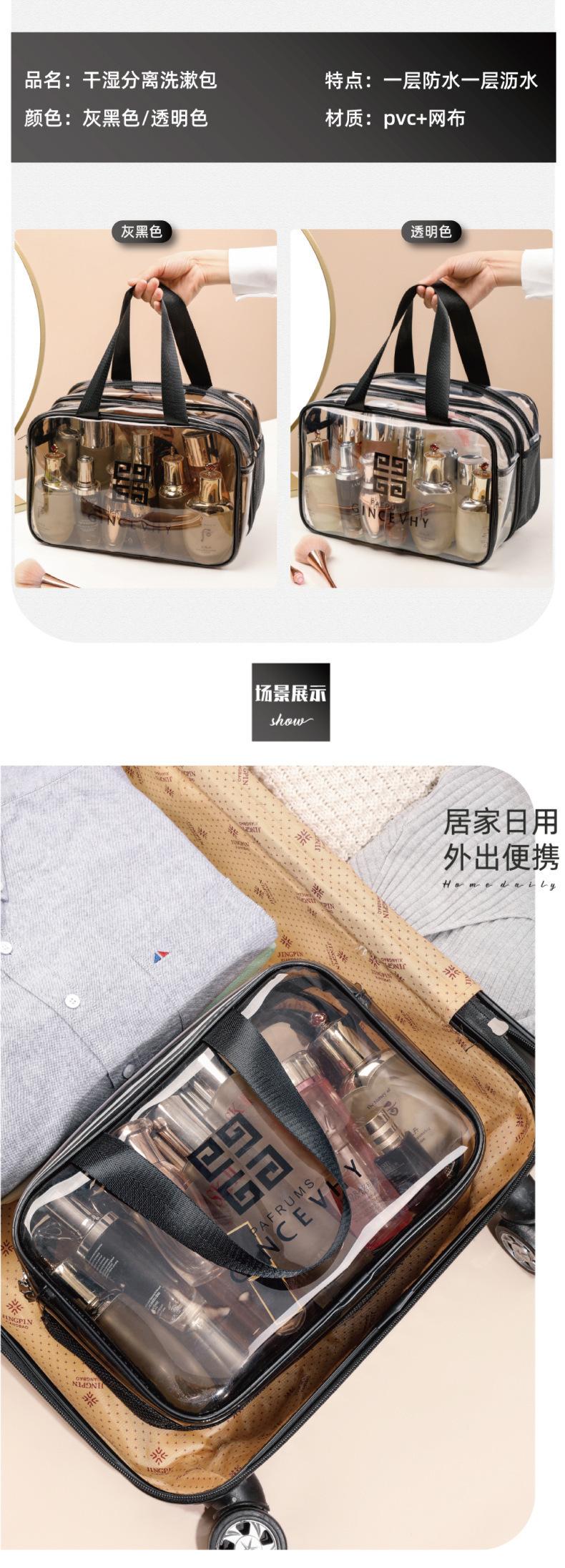 Bolsa de Aseo Nueva Separada para Seco y Húmedo Bolsa de Natación Transparente Impermeable Bolsa de Cosméticos Doble Capa Gran Capacidad Bolsa de Almacenamiento con Red
