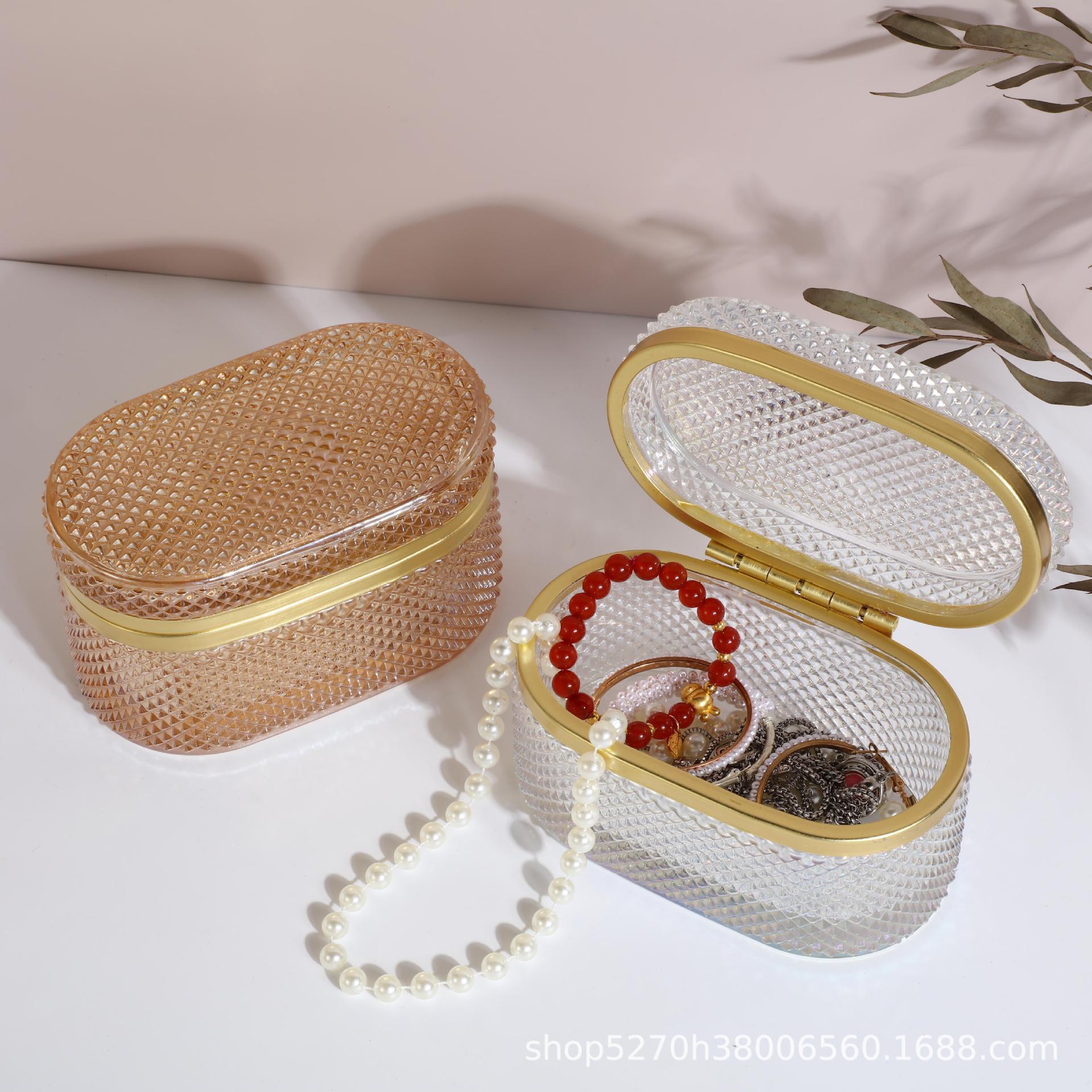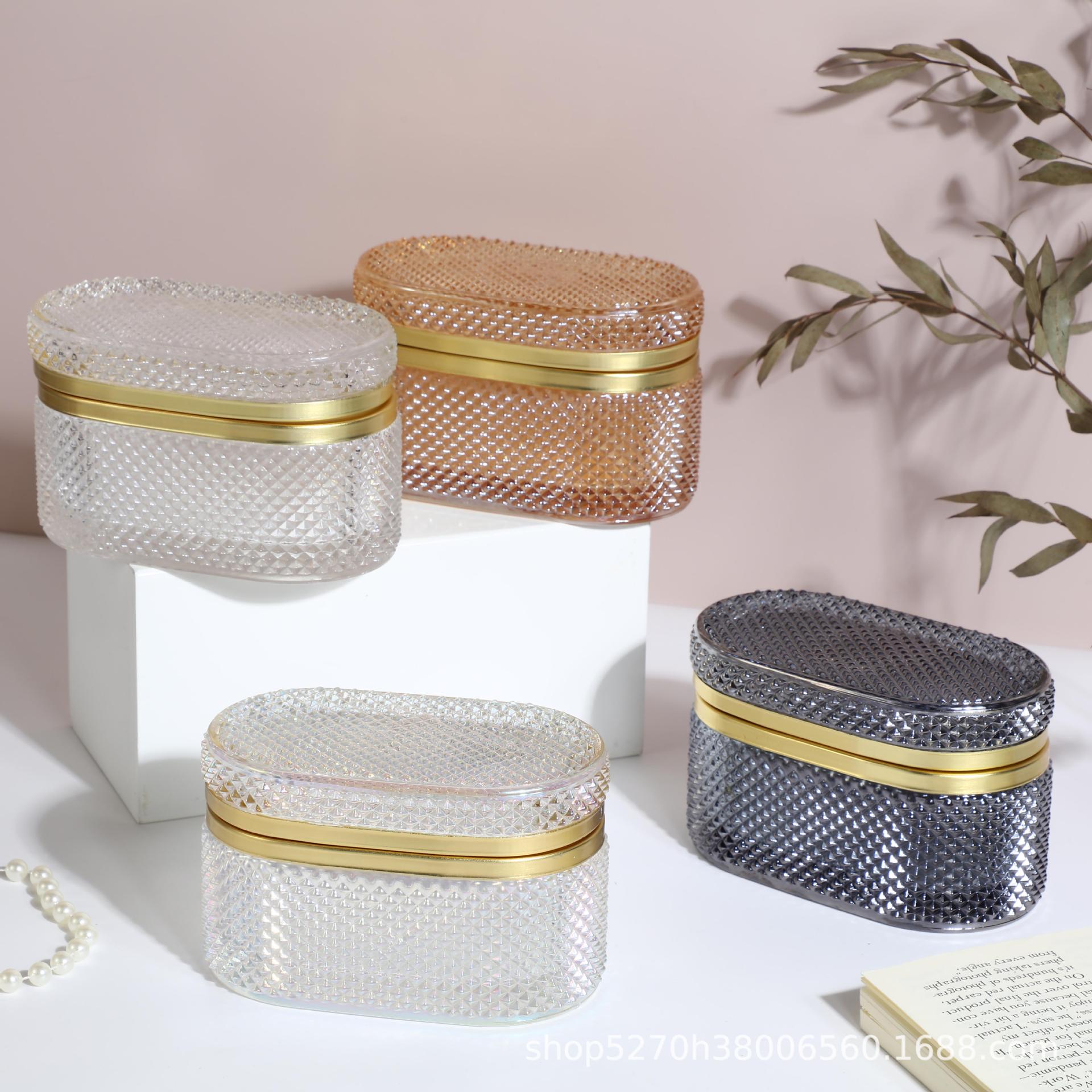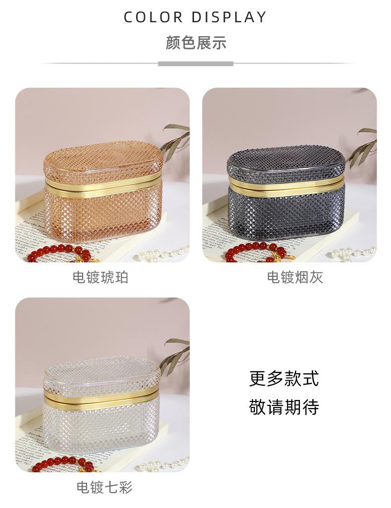 Caja de Almacenamiento de Joyas de Vidrio Transparente con Relieve Moderno Simple Transfronteriza Caja para el Hogar a Prueba de Polvo con Tapa Almacenamiento Exhibición de Joyas