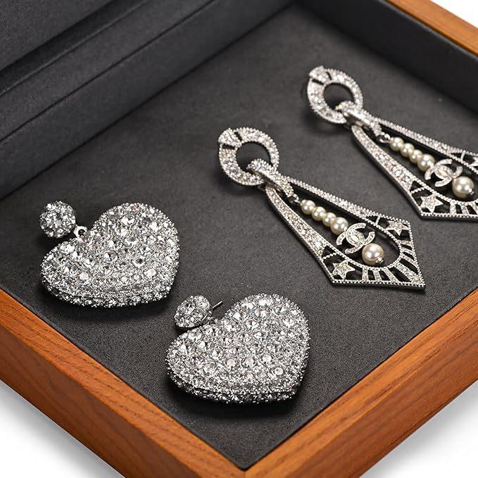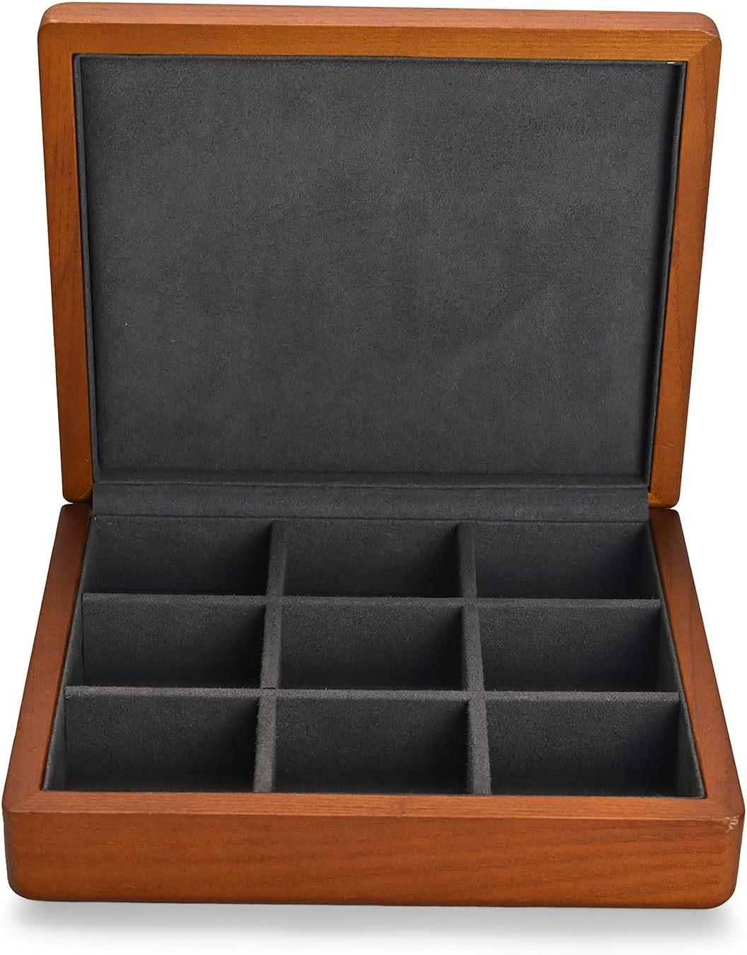 Caja de Joyería de Anillo de Madera Maciza Personalizada Almacenamiento de Aretes Joyería Bandeja de Almacenamiento con Cajón Tapa Almacenamiento de Nueve Compartimentos