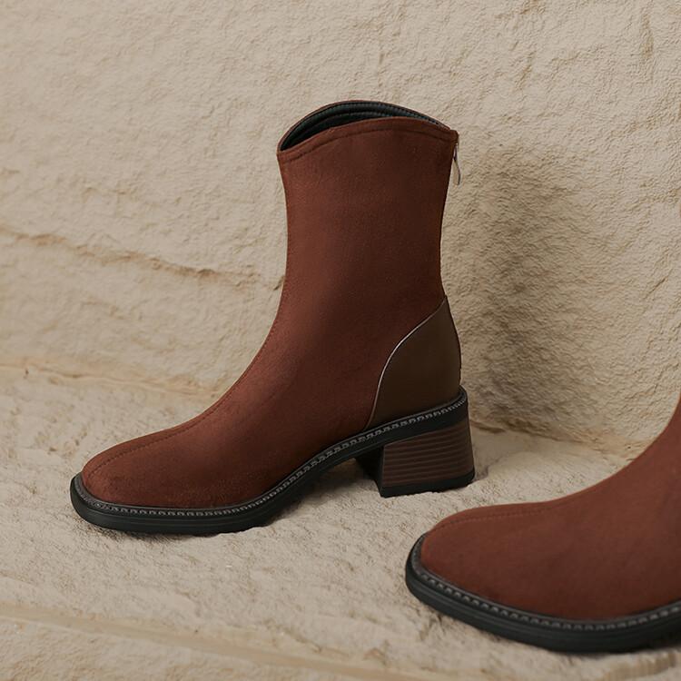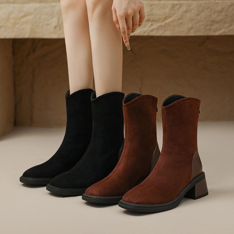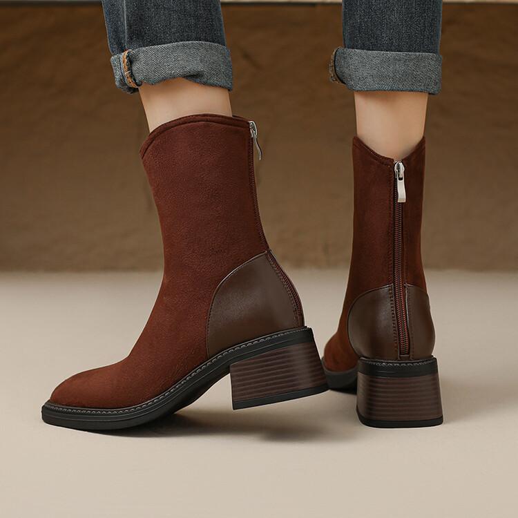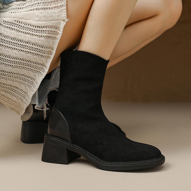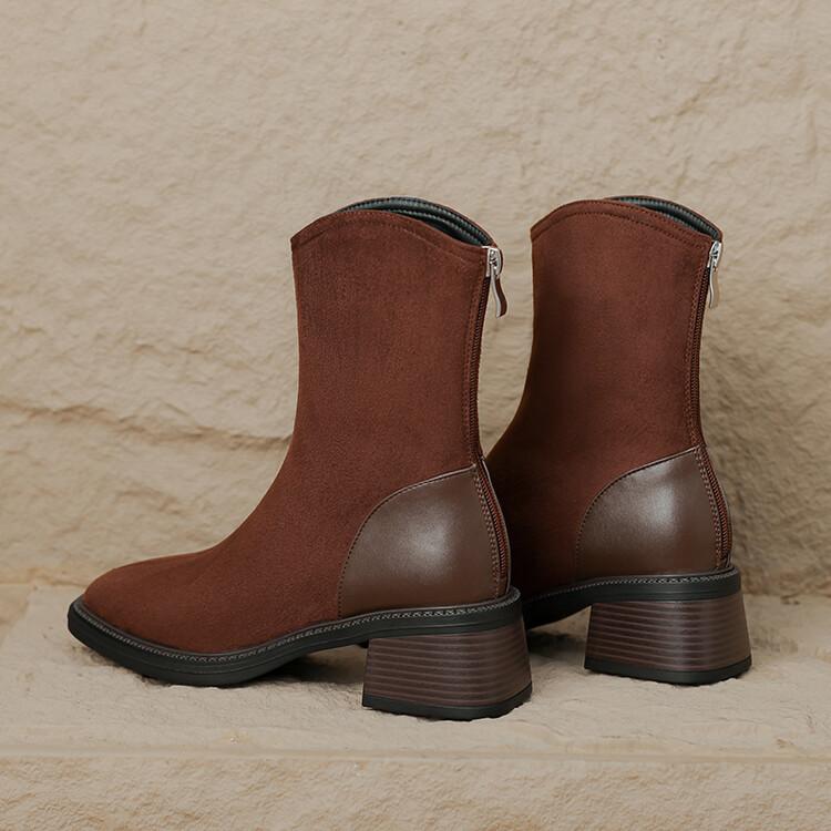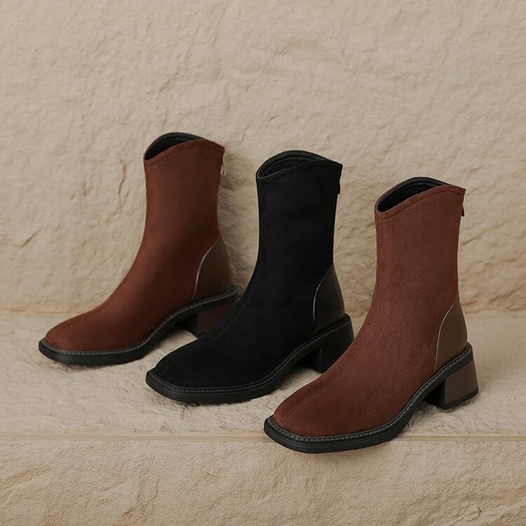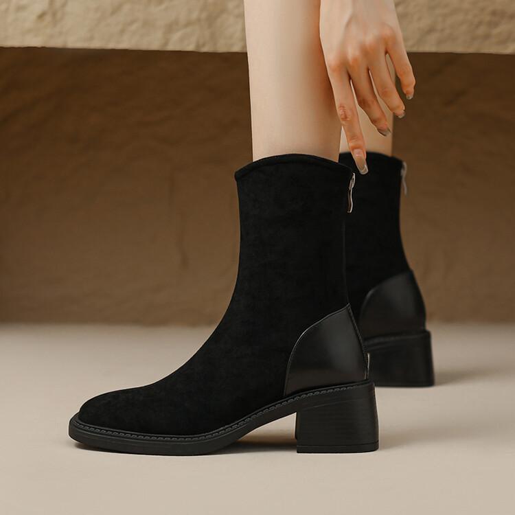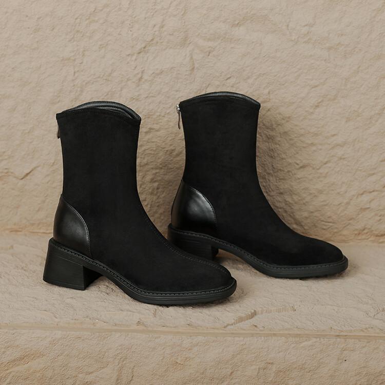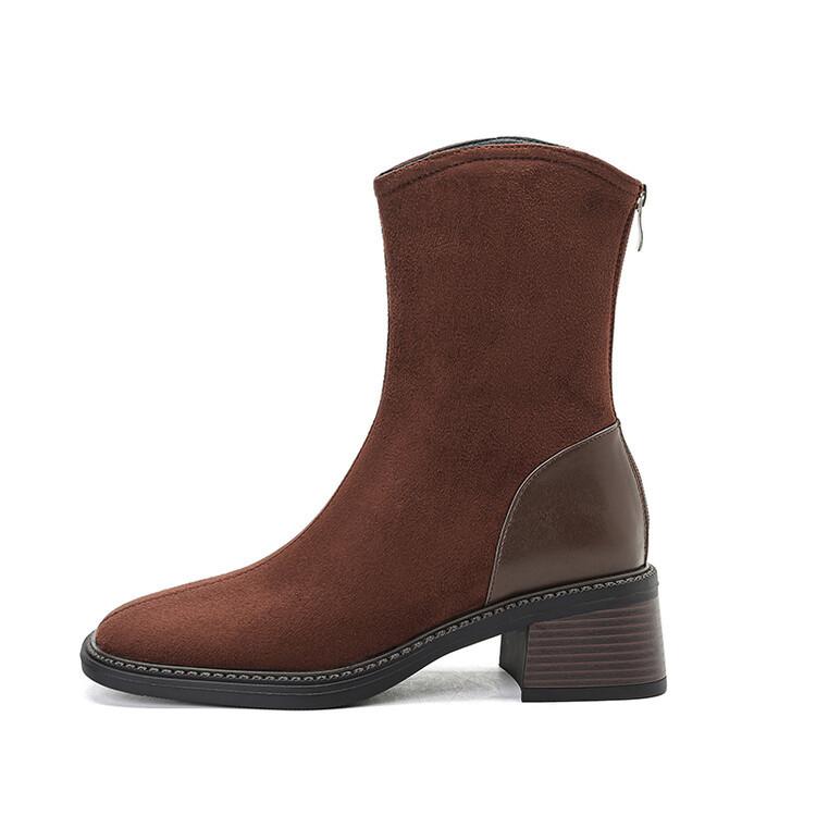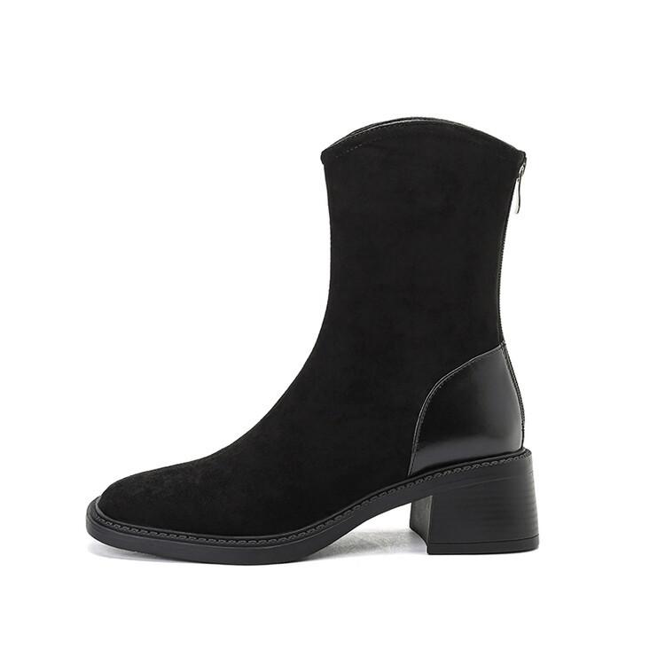 Compra Botas Nuevas de Otoño e Invierno de Gamuza hasta Media Pantorrilla Talla Grande Botas de Mujer Suela Gruesa Antideslizante Cierre Trasero Botas de Cuero Estilo Coreano Tacón Medio Botas Martin al por mayor en Joom.pro