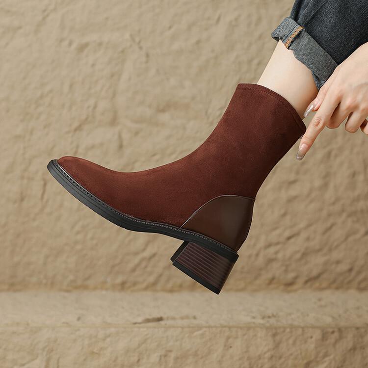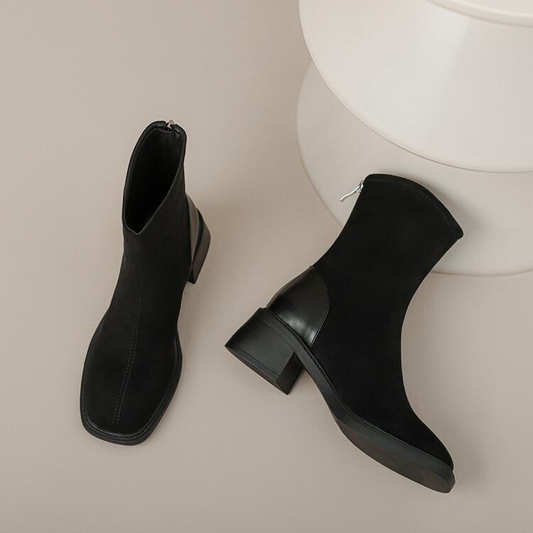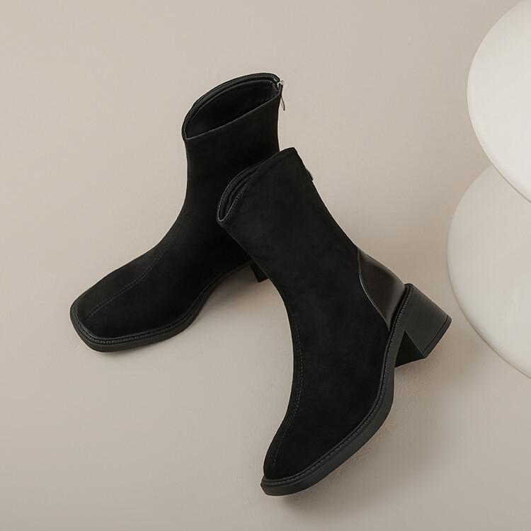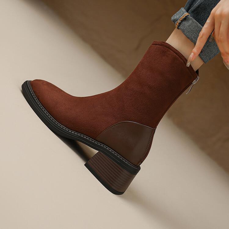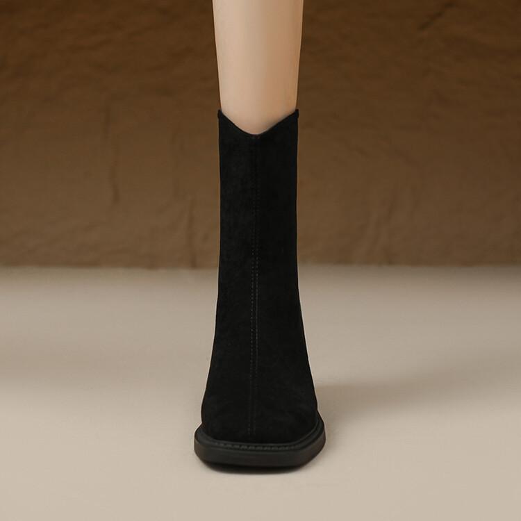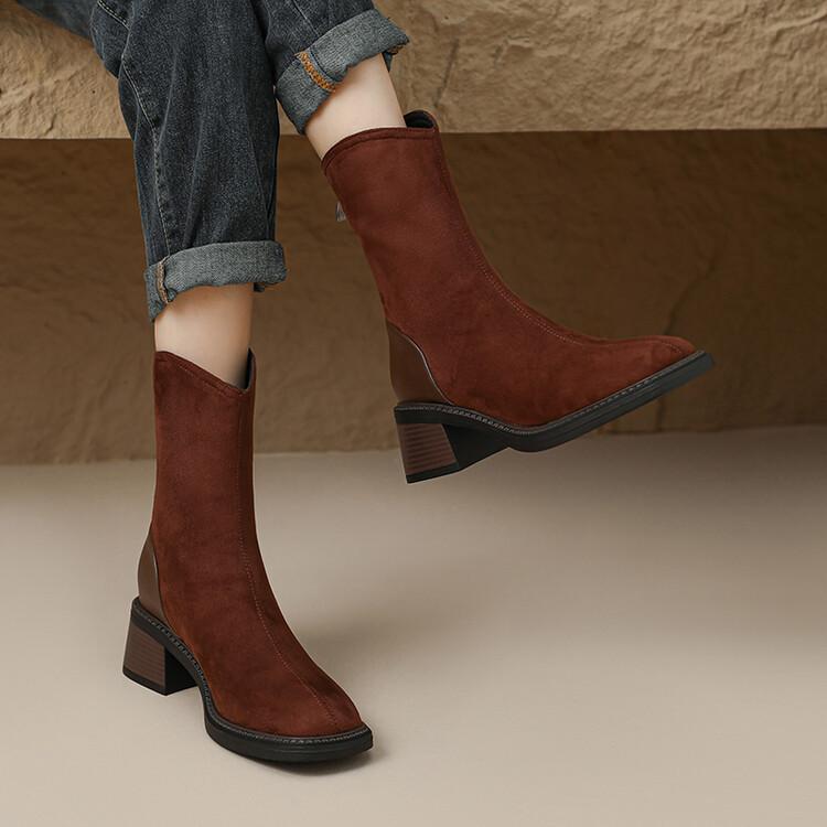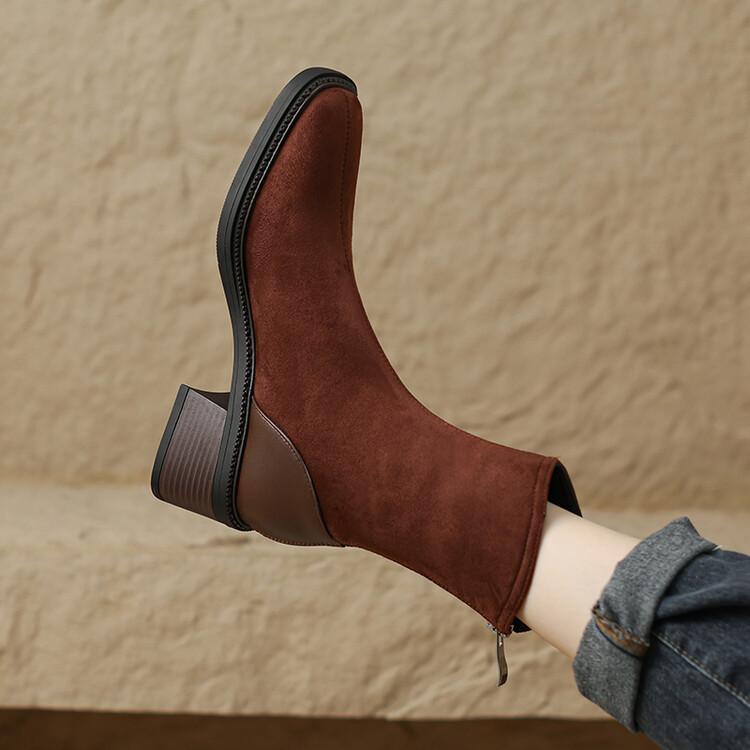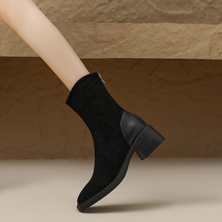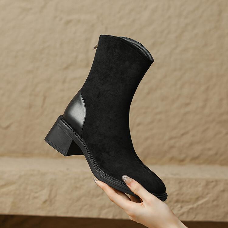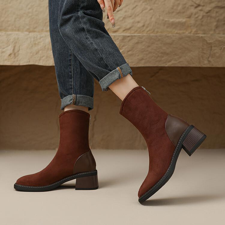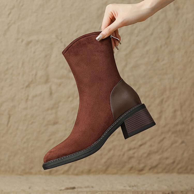 Compra Botas Nuevas de Otoño e Invierno de Gamuza hasta Media Pantorrilla Talla Grande Botas de Mujer Suela Gruesa Antideslizante Cierre Trasero Botas de Cuero Estilo Coreano Tacón Medio Botas Martin al por mayor en Joom.pro