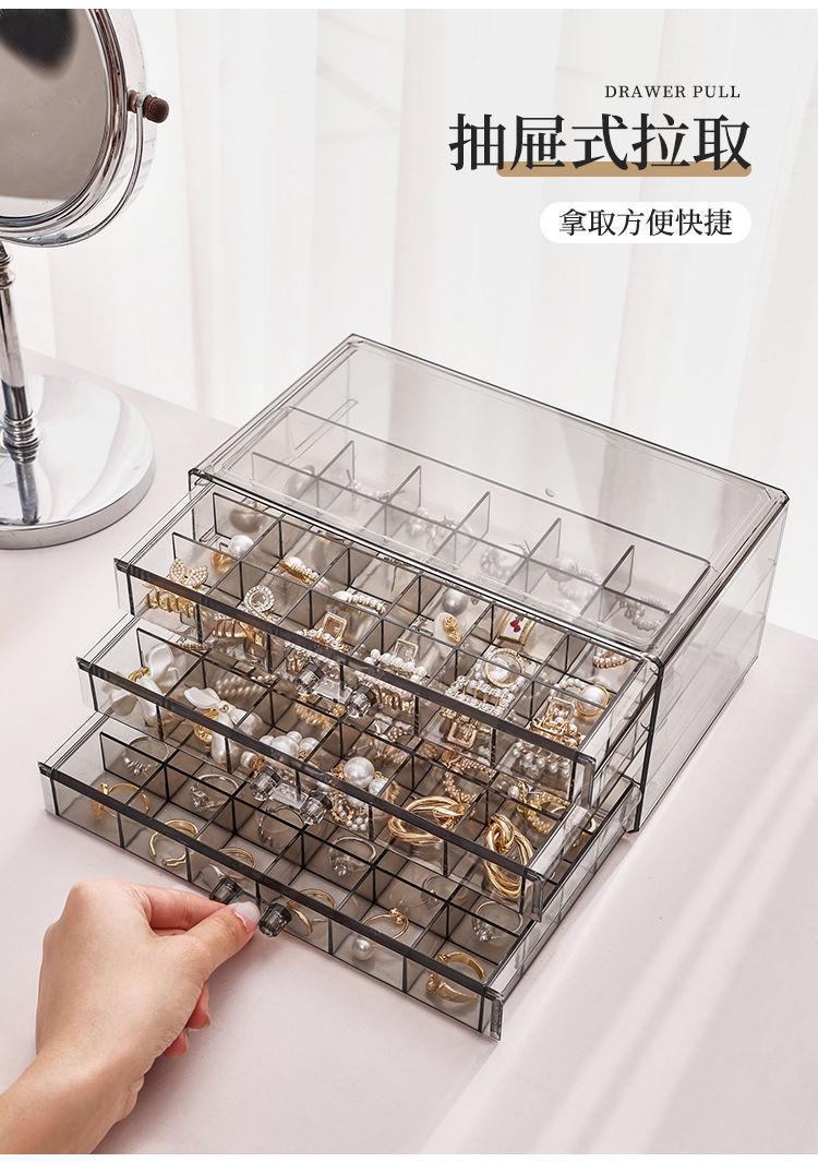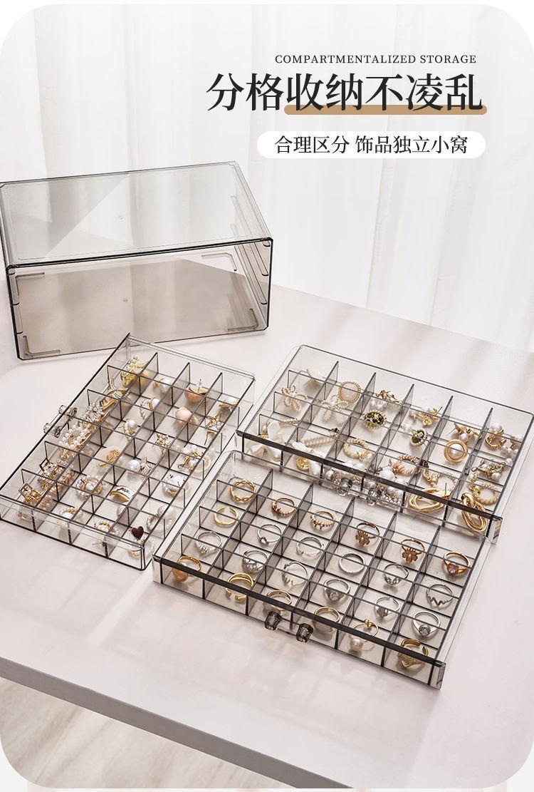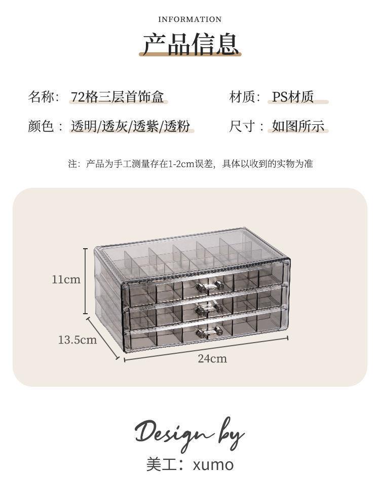 72-compartment jewelry box~transparent color, 72-compartment jewelry box~translucent gray