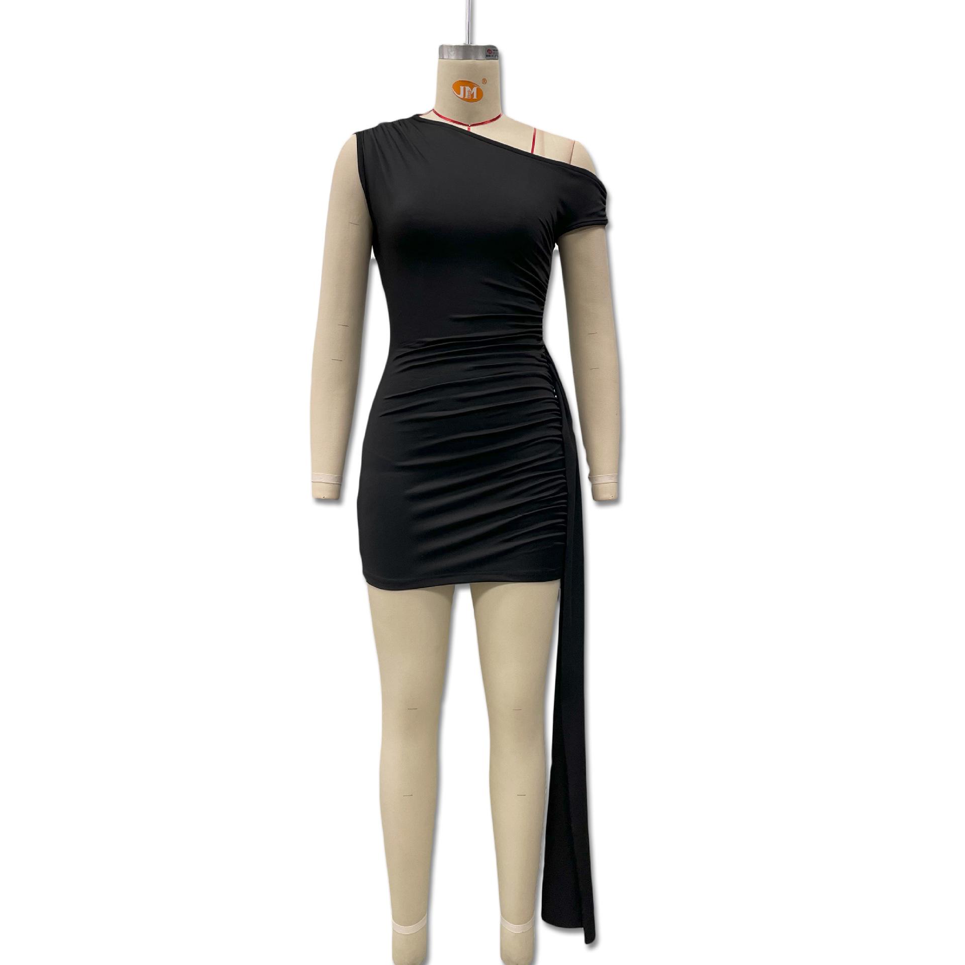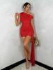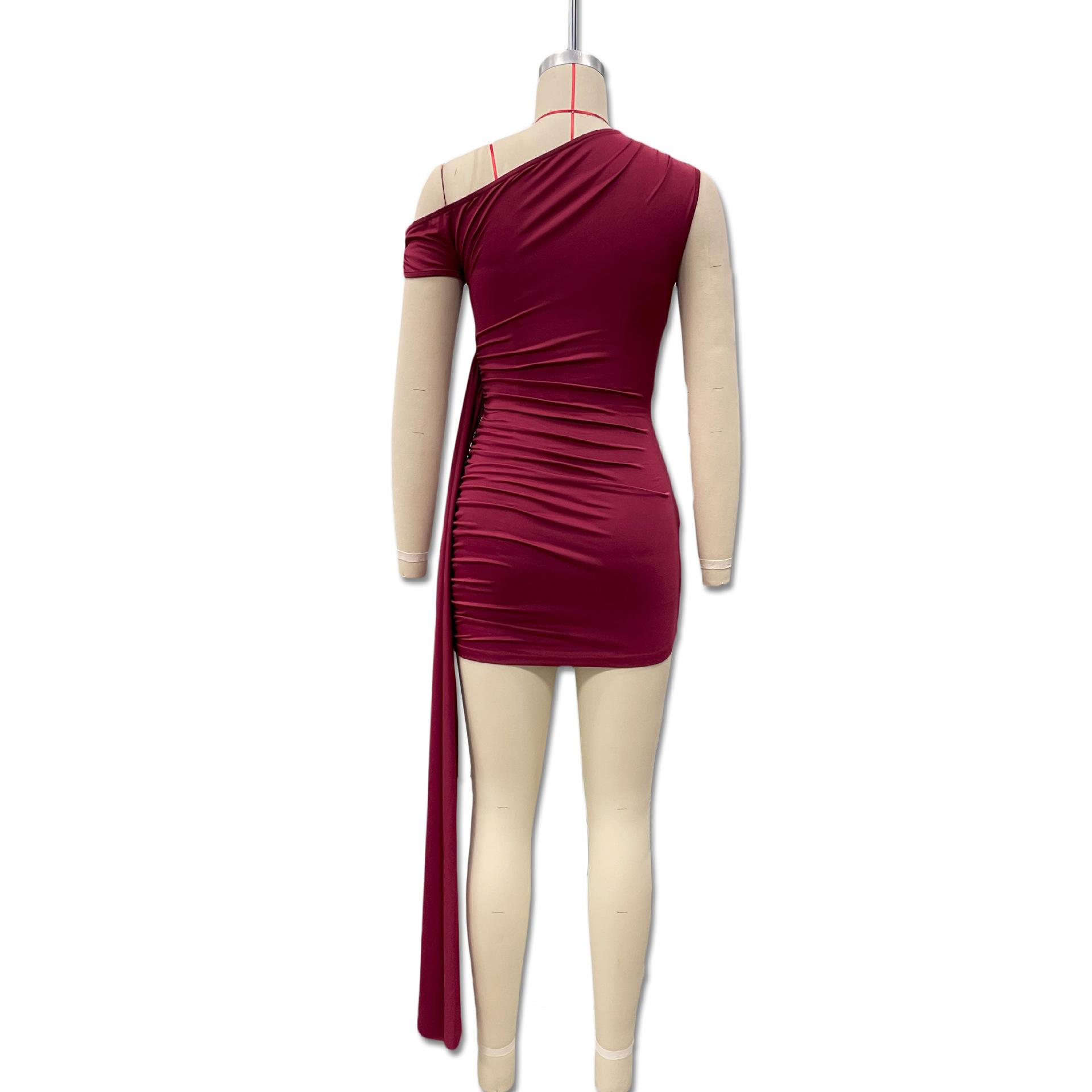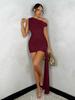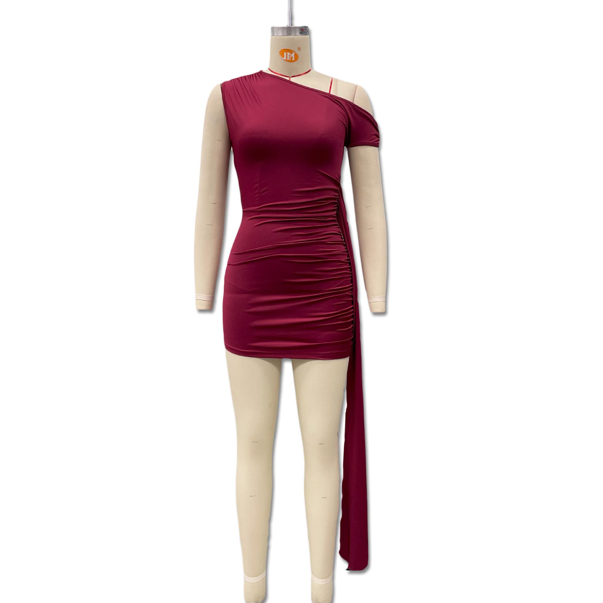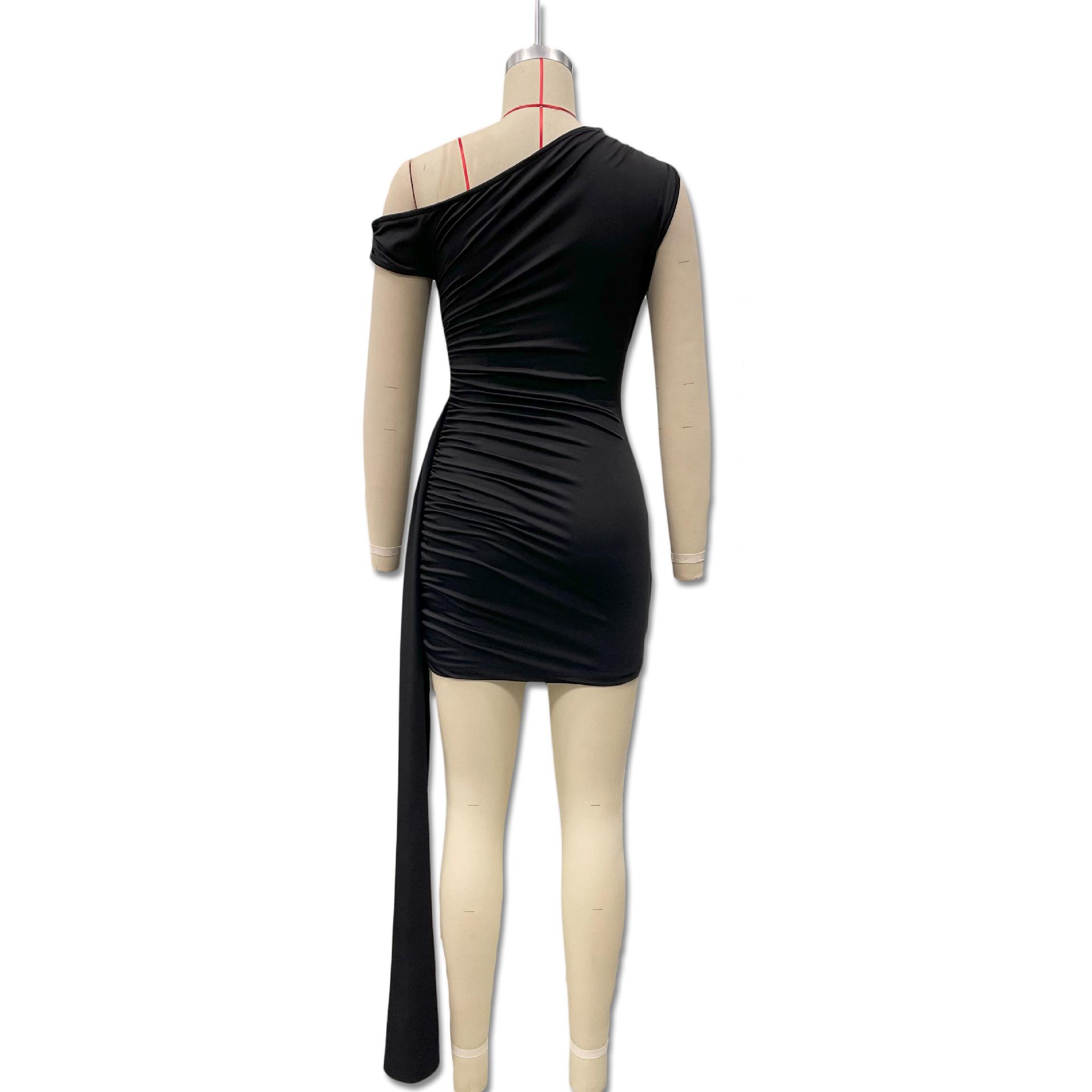 2025 Verano Transfronterizo Nuevo Color Sólido Un Hombro Cinta Vestido Ajustado Europeo y Americano Estilo Volante Vendaje Vestido Ajustado