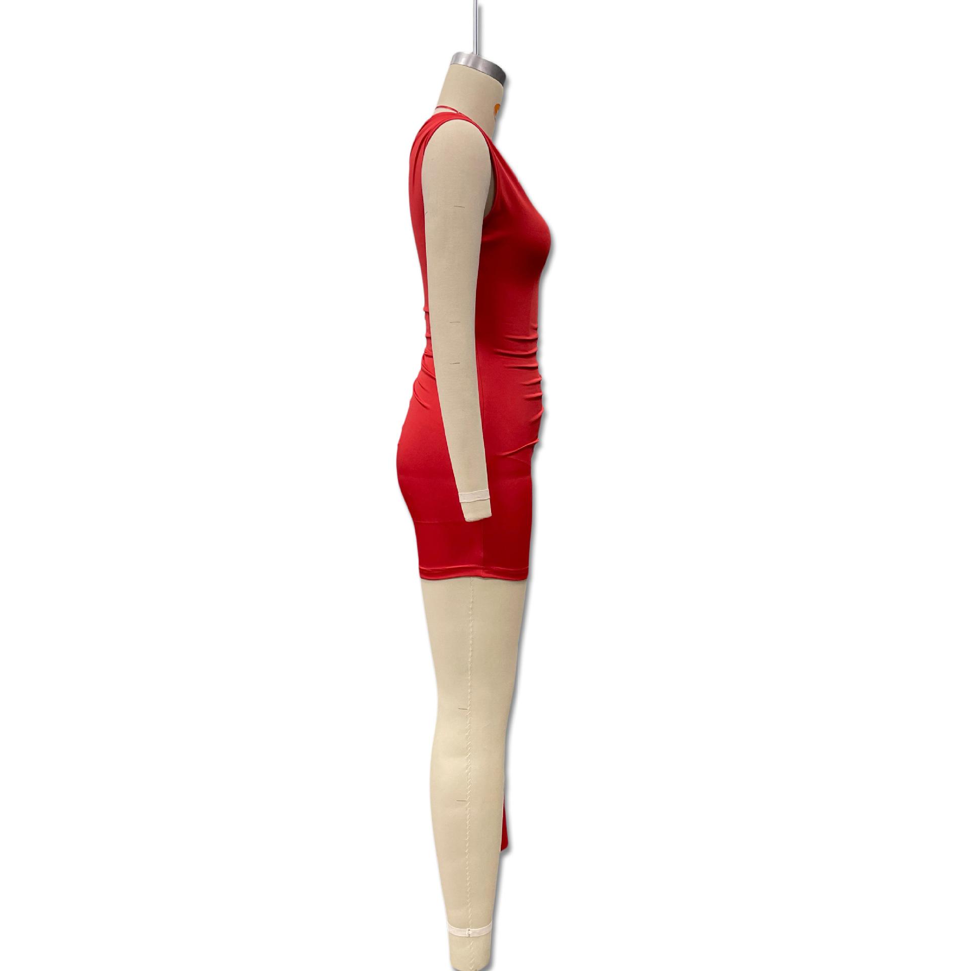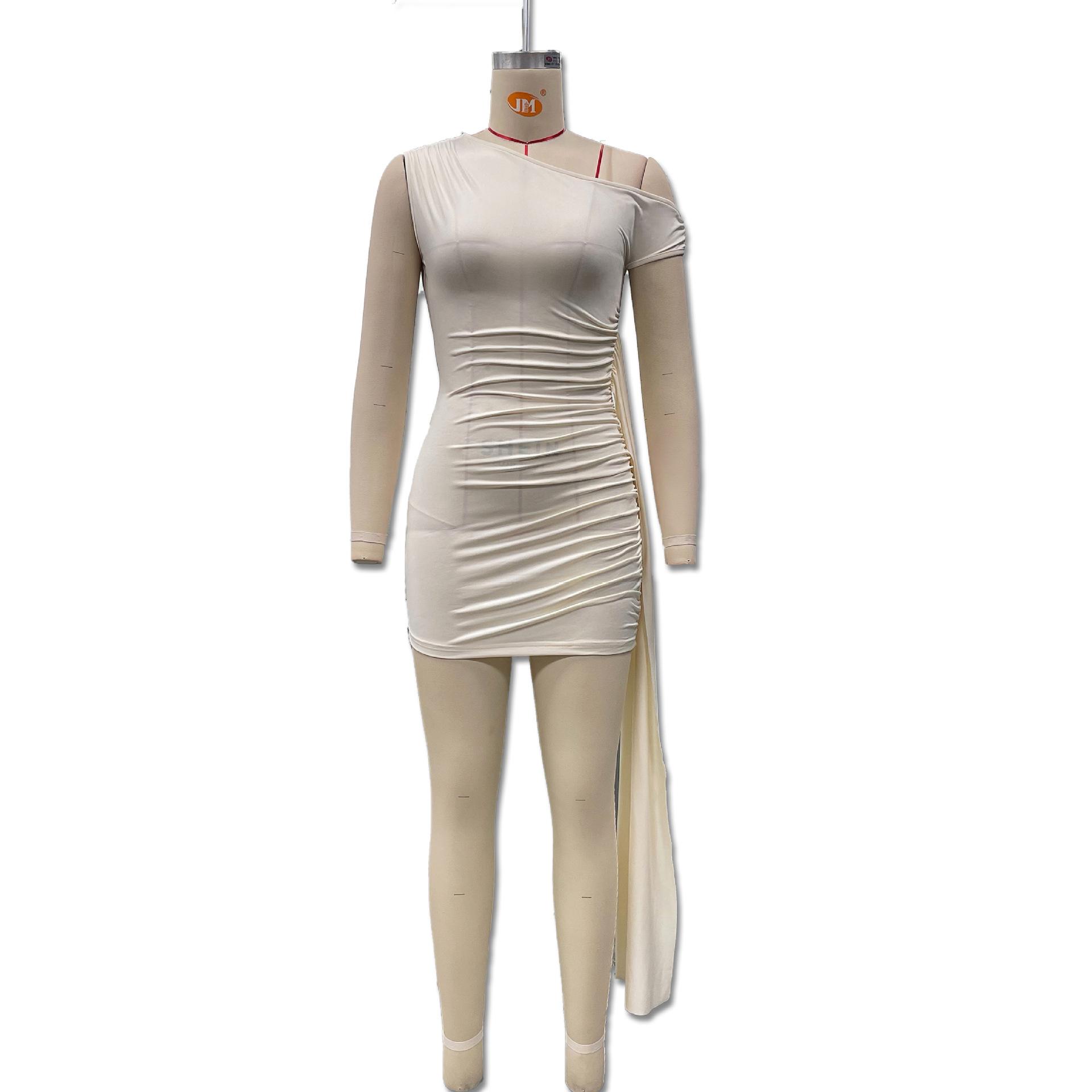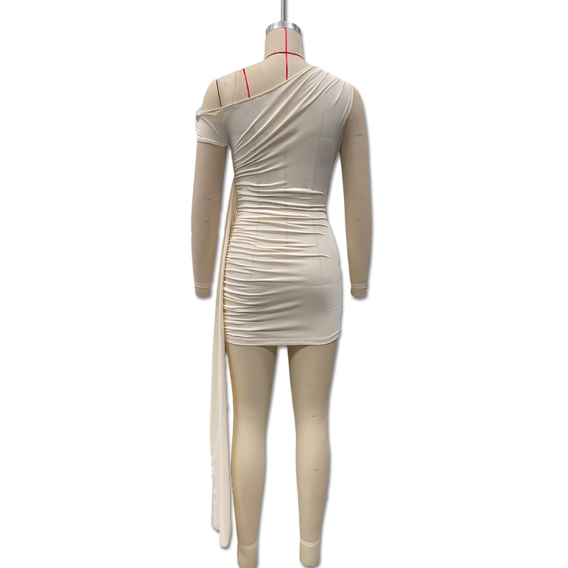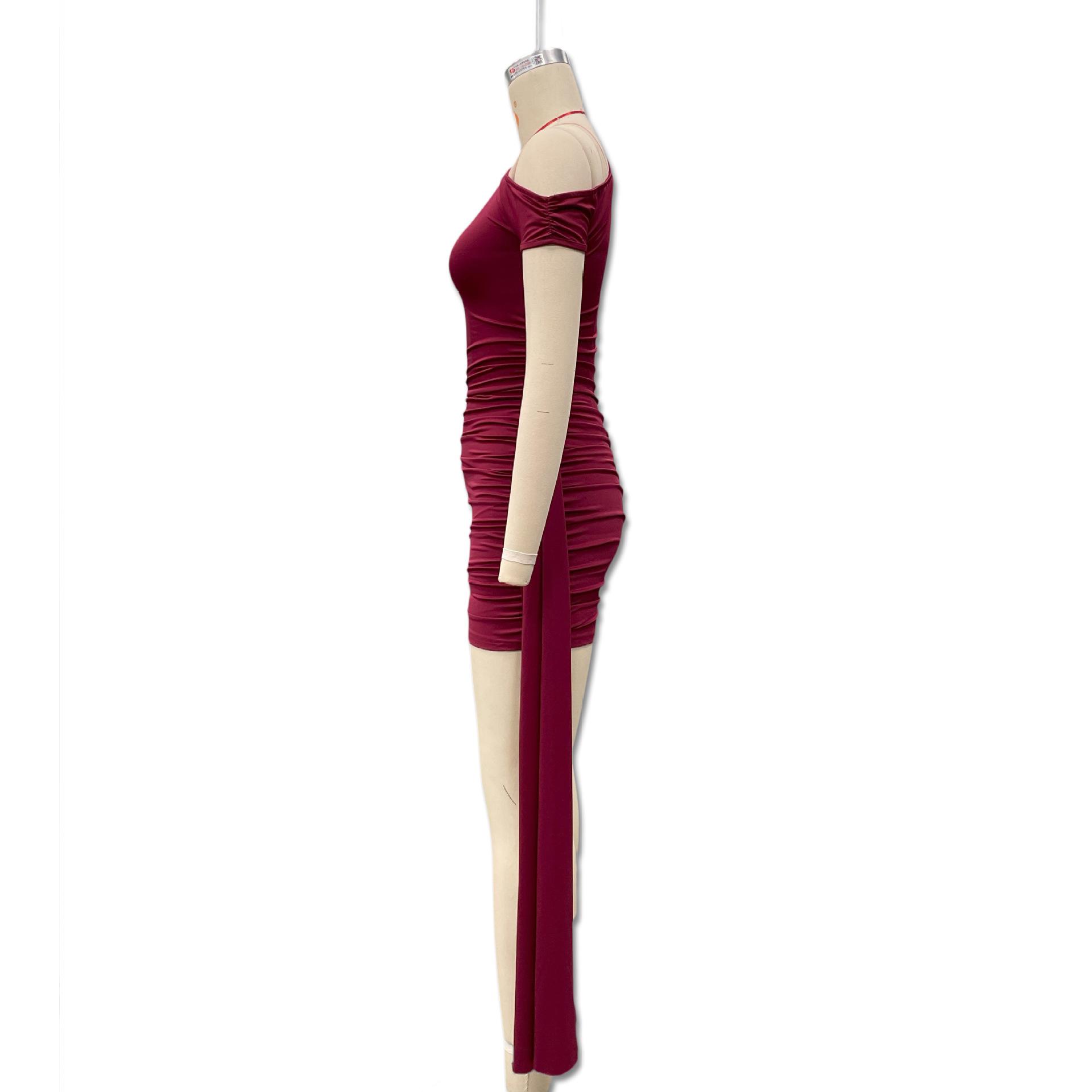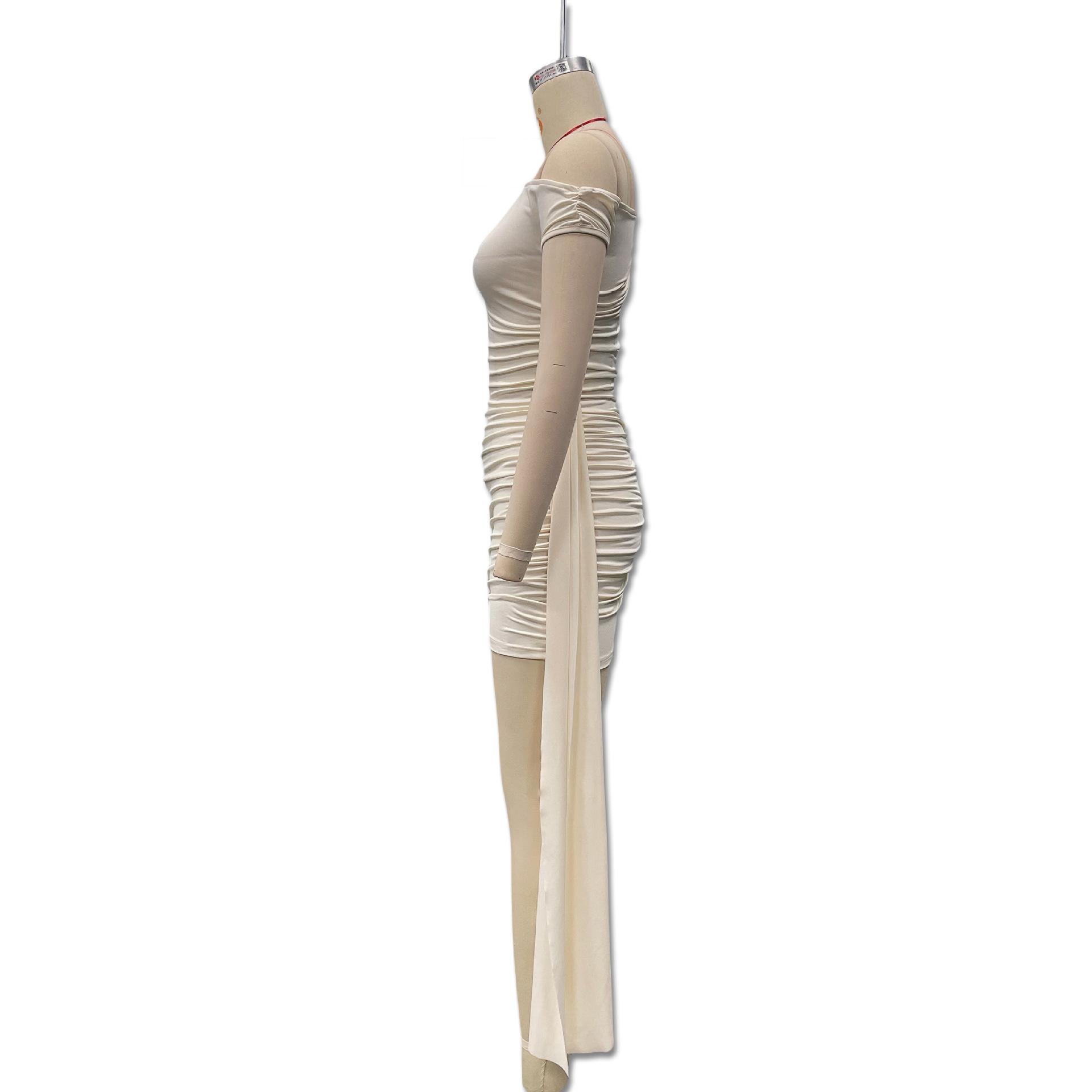 2025 Verano Transfronterizo Nuevo Color Sólido Un Hombro Cinta Vestido Ajustado Europeo y Americano Estilo Volante Vendaje Vestido Ajustado