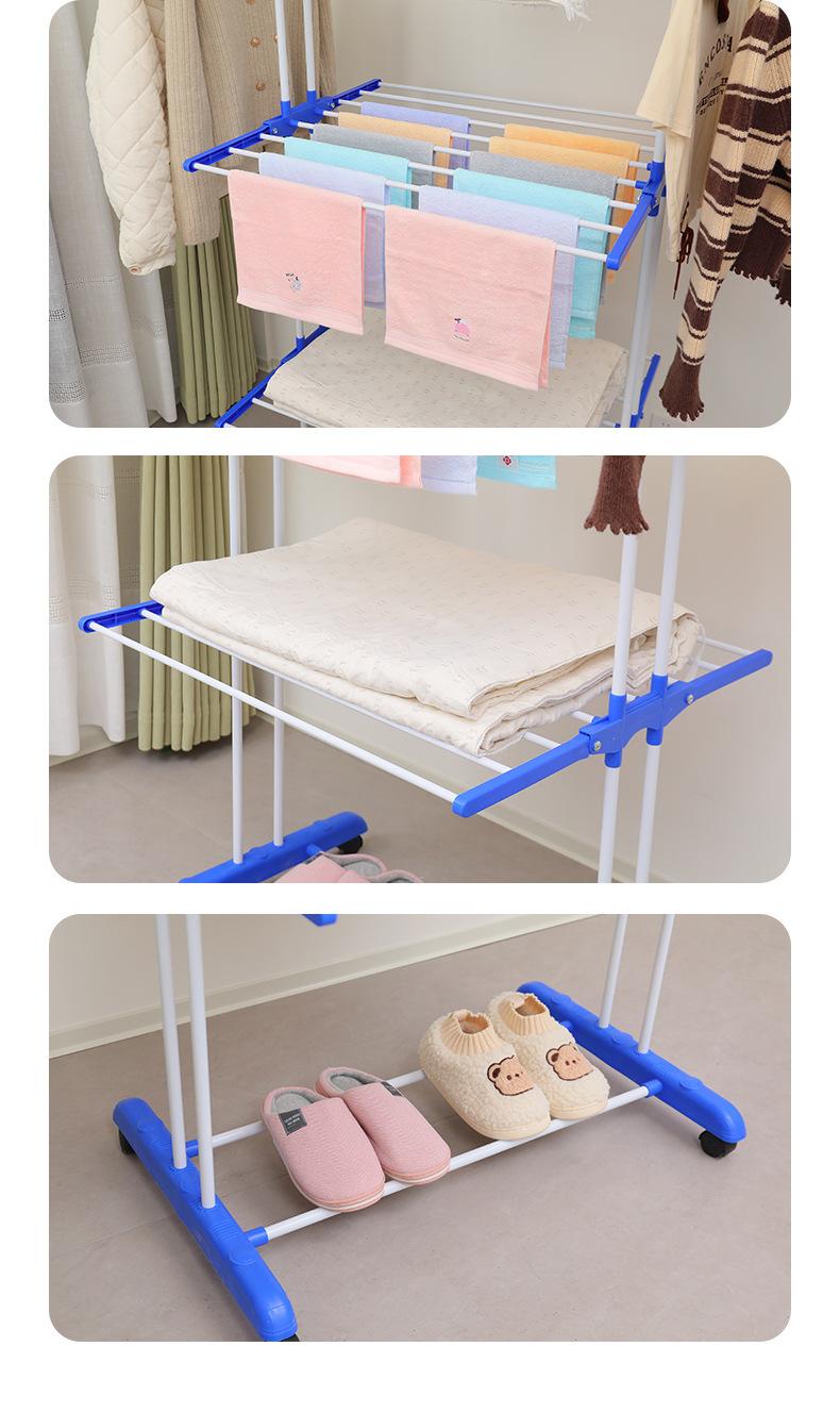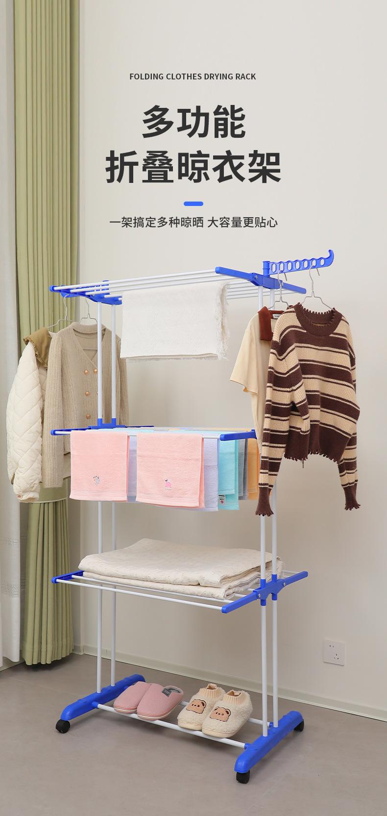 Tendedero móvil multicapa Tendedero de toallas Tendedero doméstico de pie plegable de doble barra Perchero