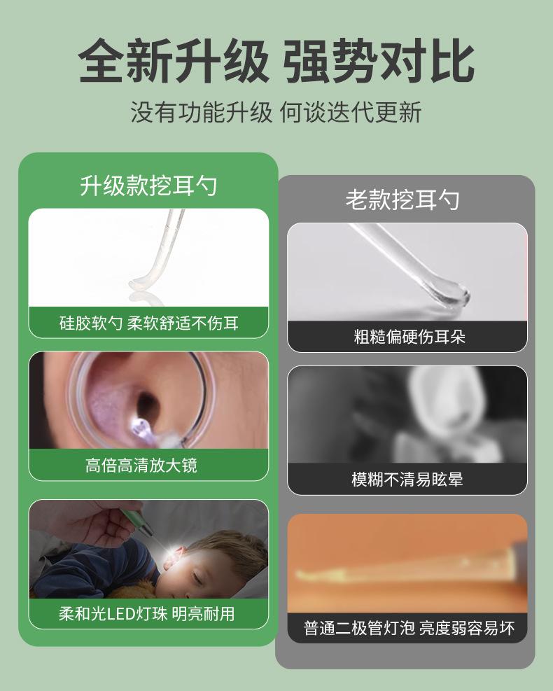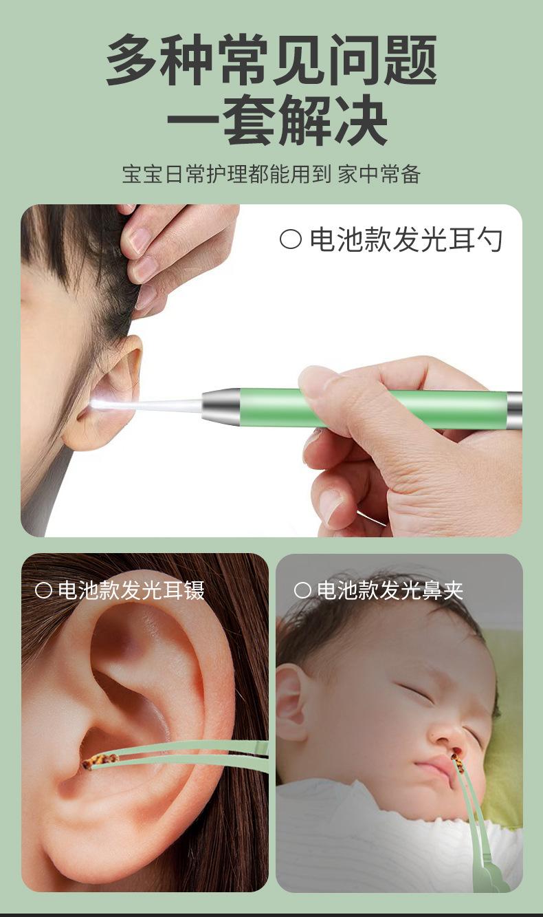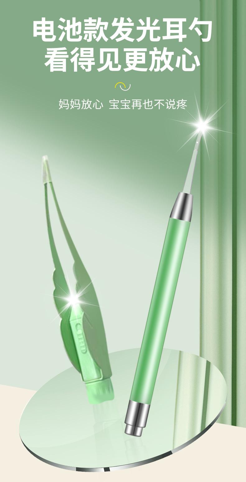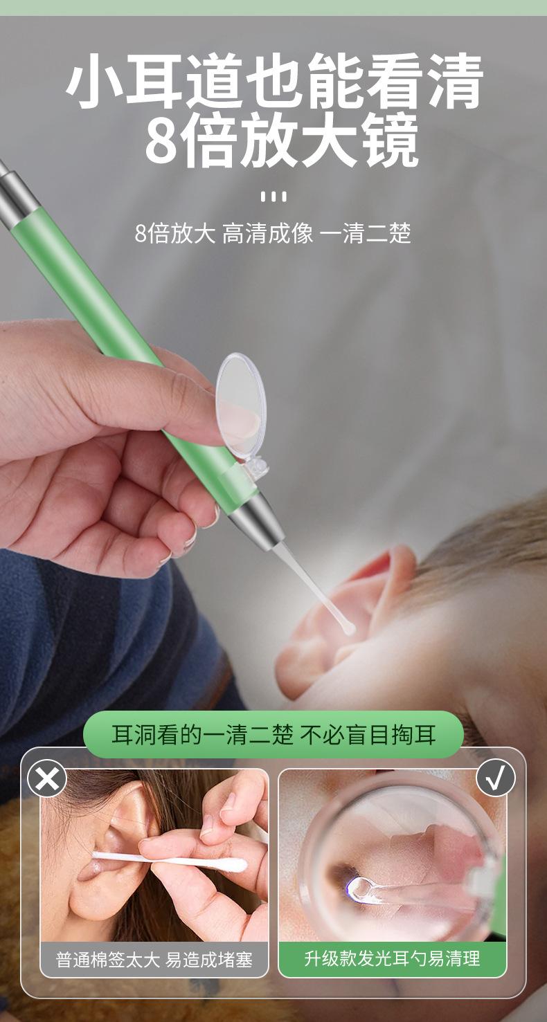Cuchara para Oídos Brillante para Niños, Set de Herramientas para Limpiar Oídos de Bebé con Luz