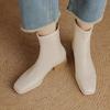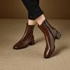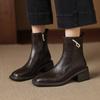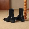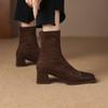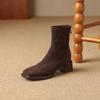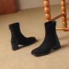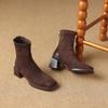 Botas de moda de gamuza para otoño e invierno para mujer, suela de goma, talla grande, botas para mujer, tacón medio, punta cuadrada, cremallera trasera, botas de cuero, tacón cuadrado, botas de media caña