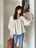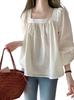 Camisa corta de gasa con cuello cuadrado blanco francés y mangas abullonadas para mujer, diseño holgado de primavera y verano, top de nicho.