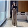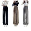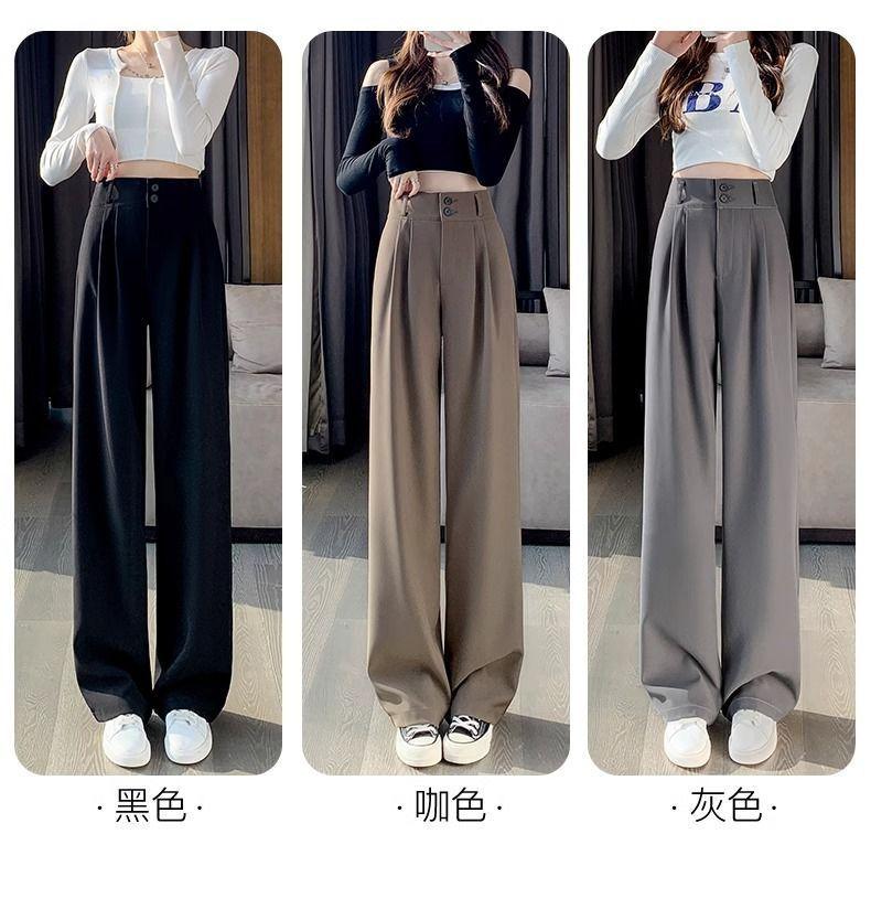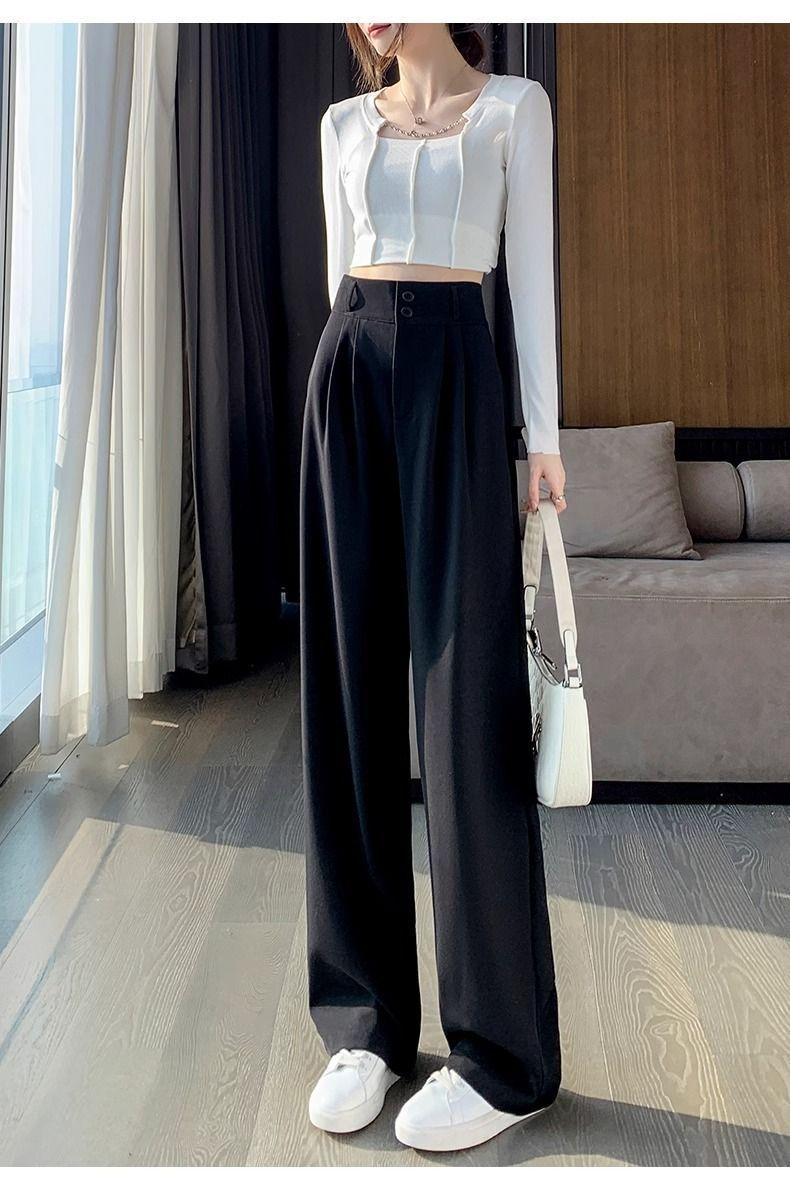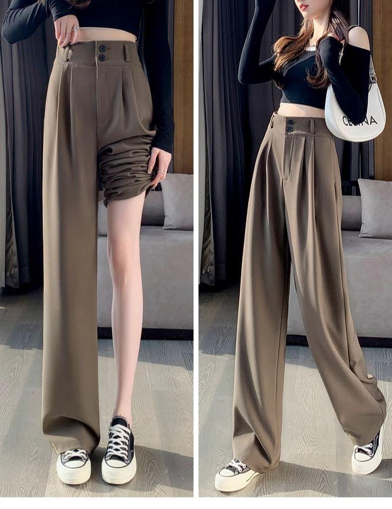 Pantalones de Traje de Verano Delgados de Cintura Alta Adelgazantes de Pierna Recta para Mujer Casuales Largos Hasta el Piso de Pierna Ancha Nuevo Estilo 2025