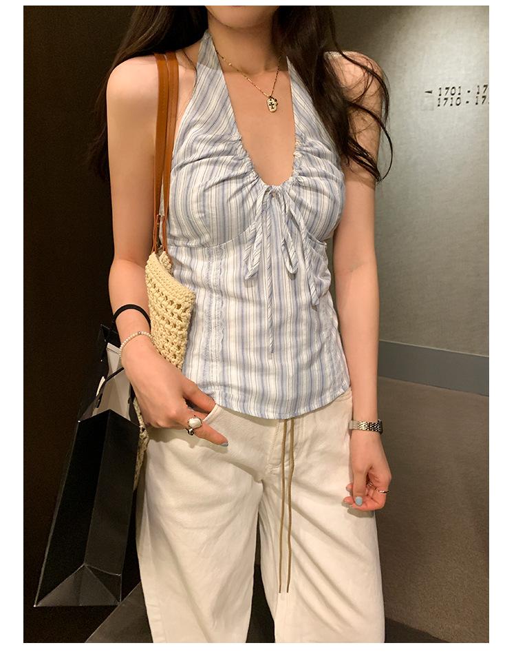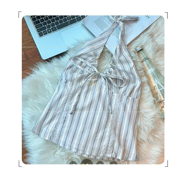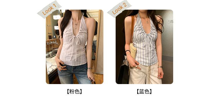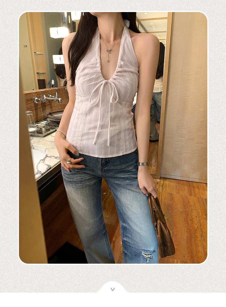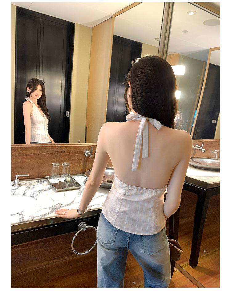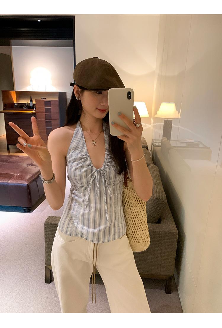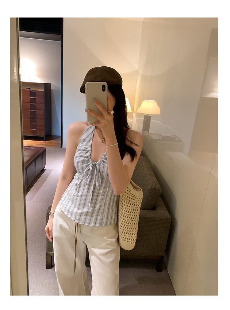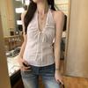 Chaleco ajustado con lazo al cuello halter estilo francés Verano 2025 Nuevo diseño de prenda exterior versión coreana Top camisola sin mangas sin espalda