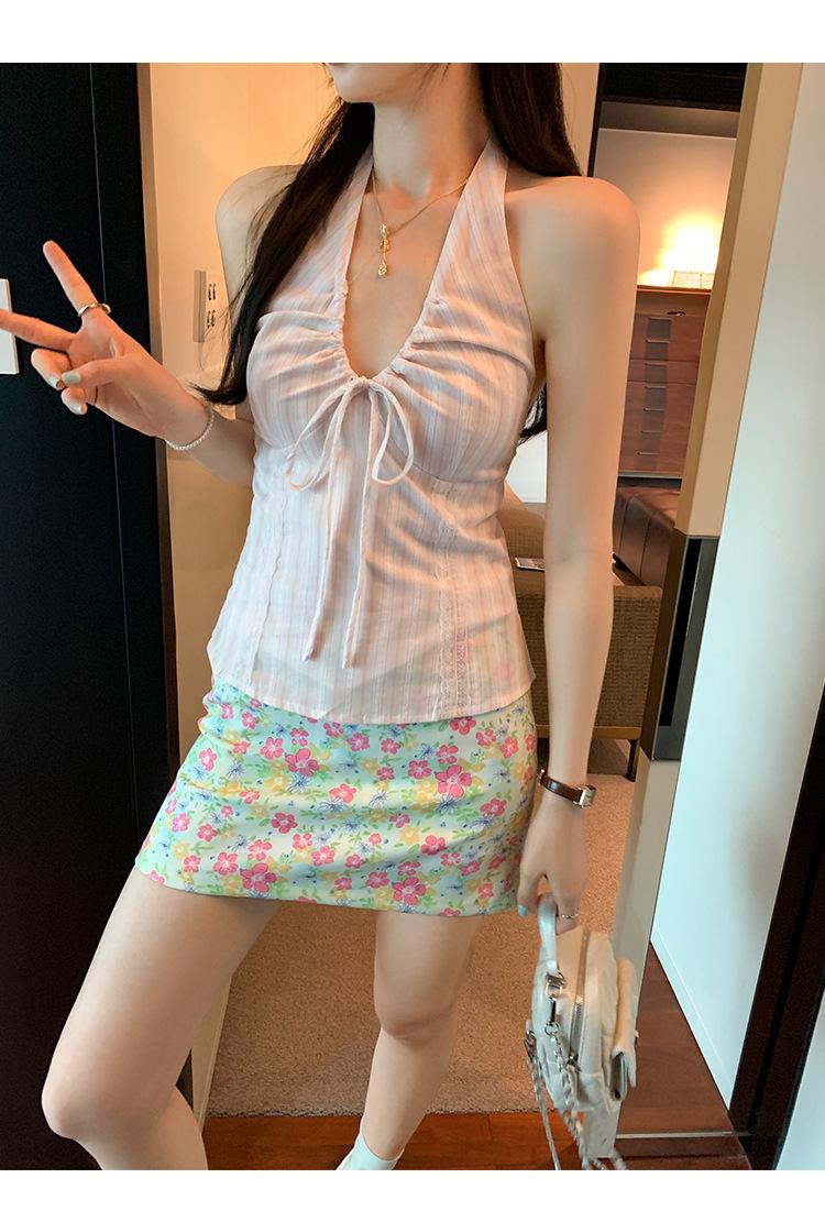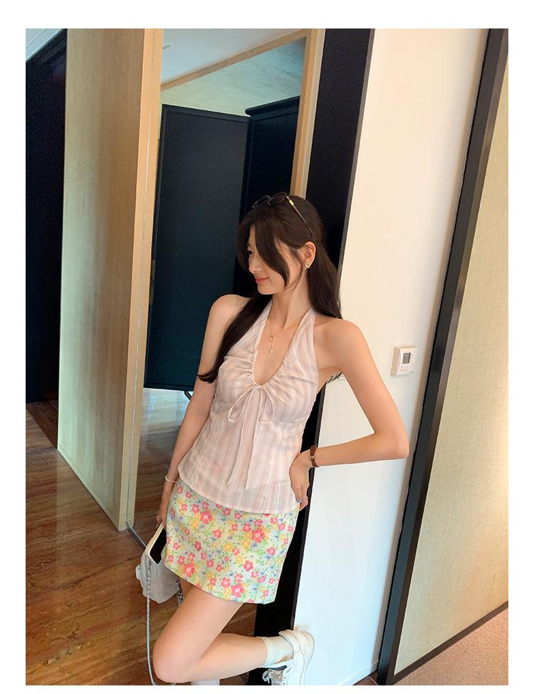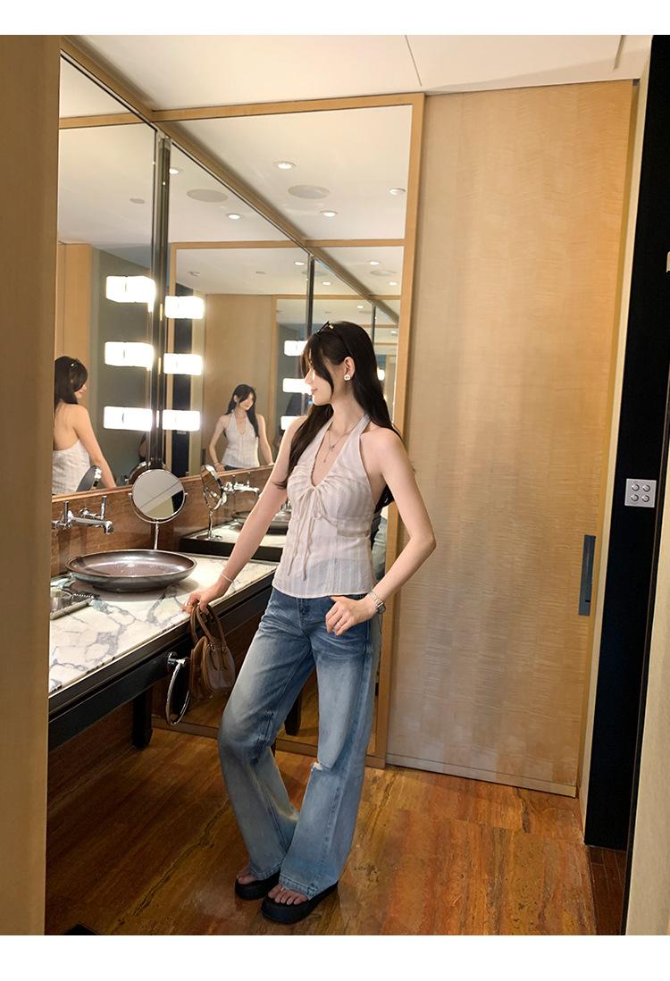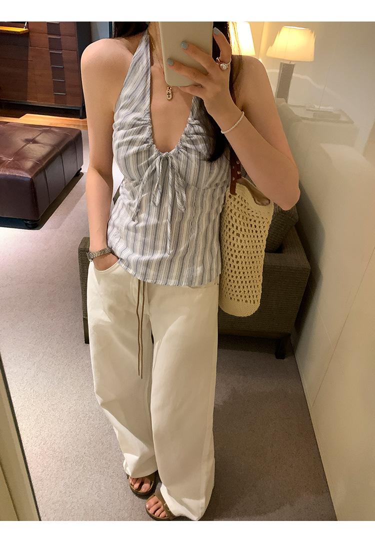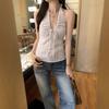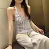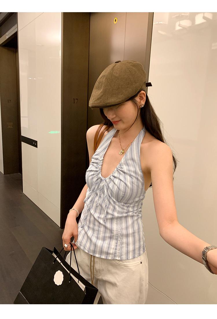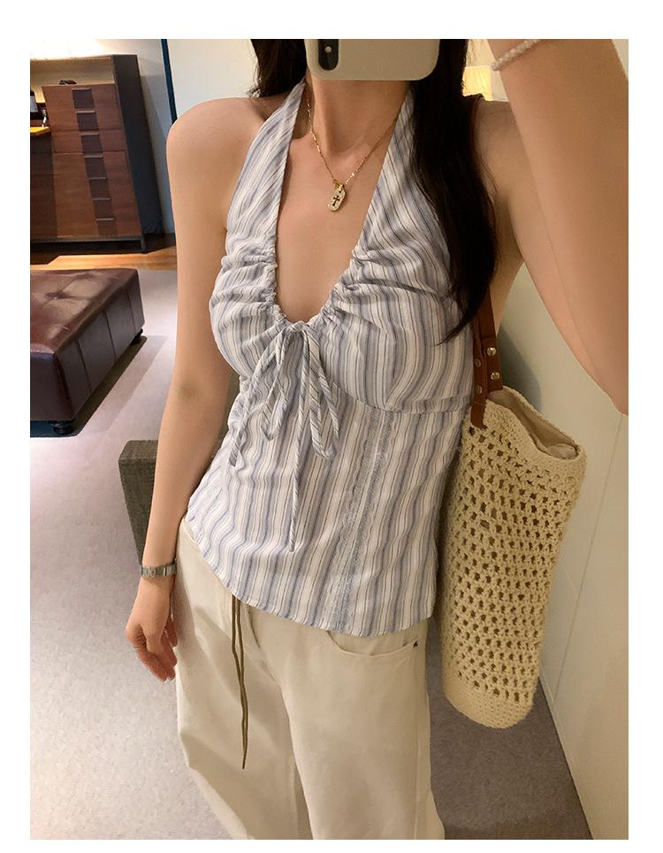 Chaleco ajustado con lazo al cuello halter estilo francés Verano 2025 Nuevo diseño de prenda exterior versión coreana Top camisola sin mangas sin espalda