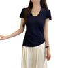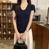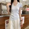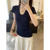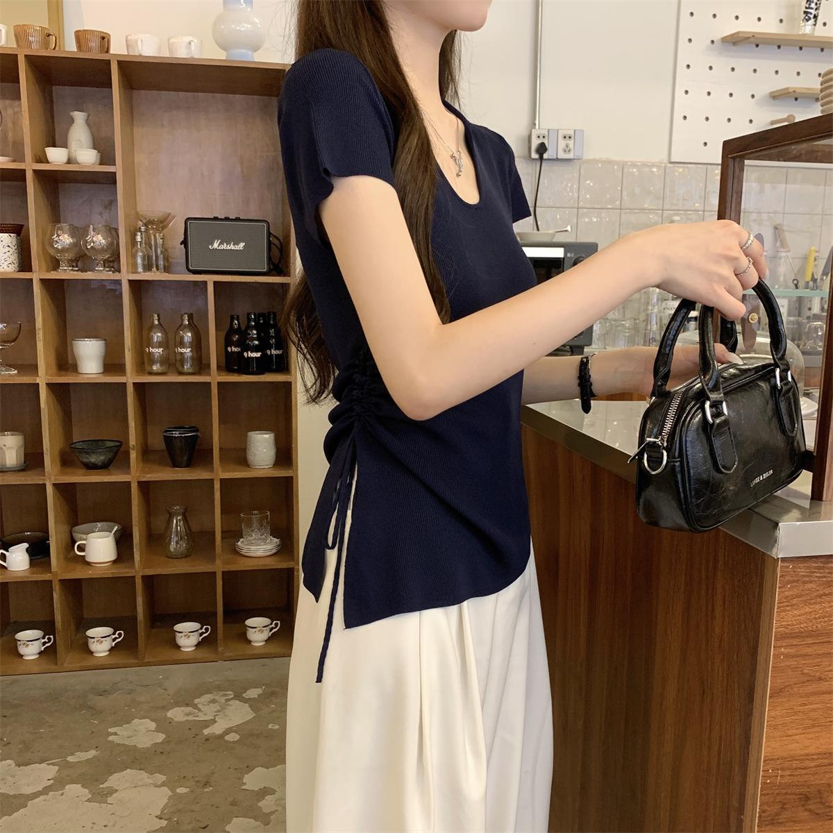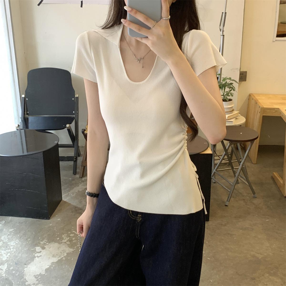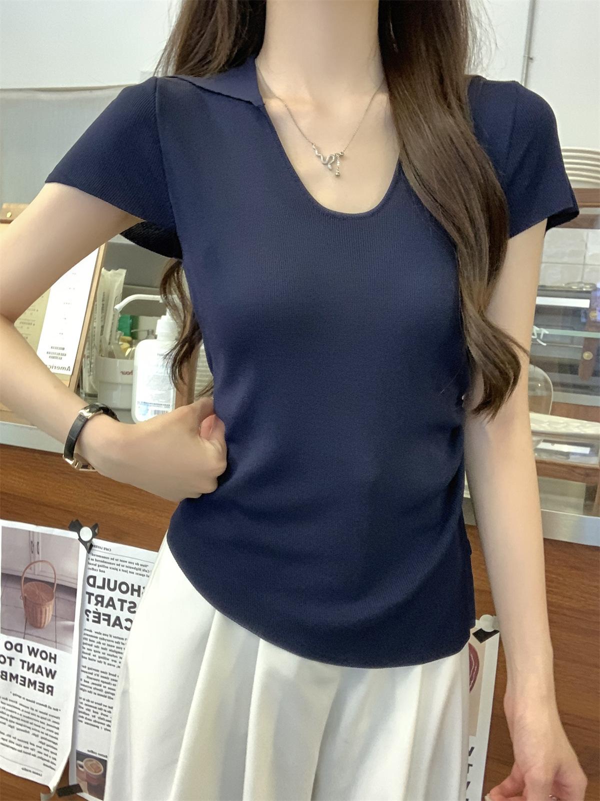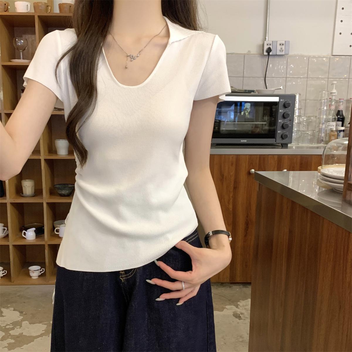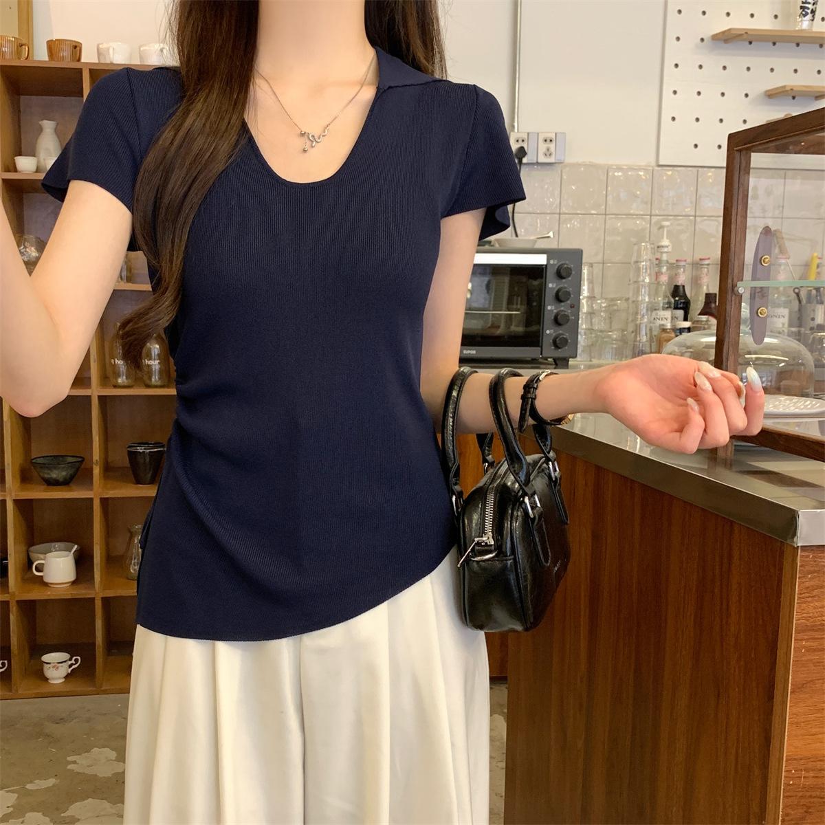 Verano Francés 2025 Estilo Coreano Elegante Cuello Polo Diseño de Abertura con Cordón Aspecto Adelgazante Punto Top de Manga Corta para Mujer