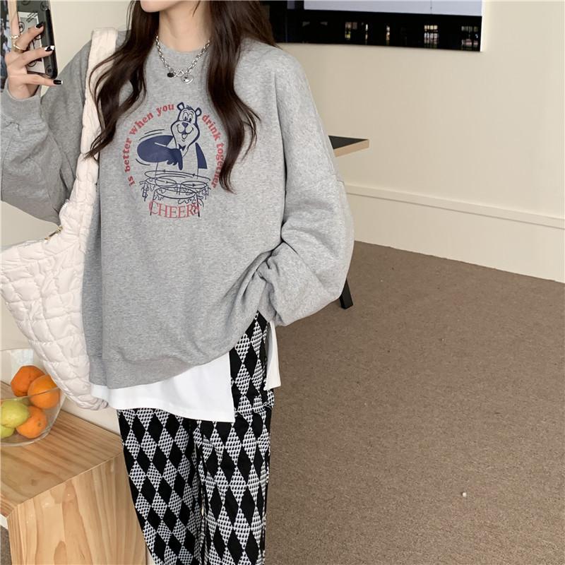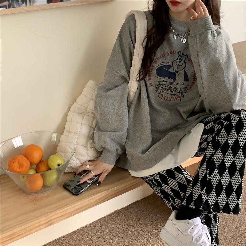 Top de Manga Larga para Mujer Otoño 2025 Nuevo Chaqueta Delgada Versátil Estampado Manga Larga Moda Sudadera de Moda Tendencia Ins