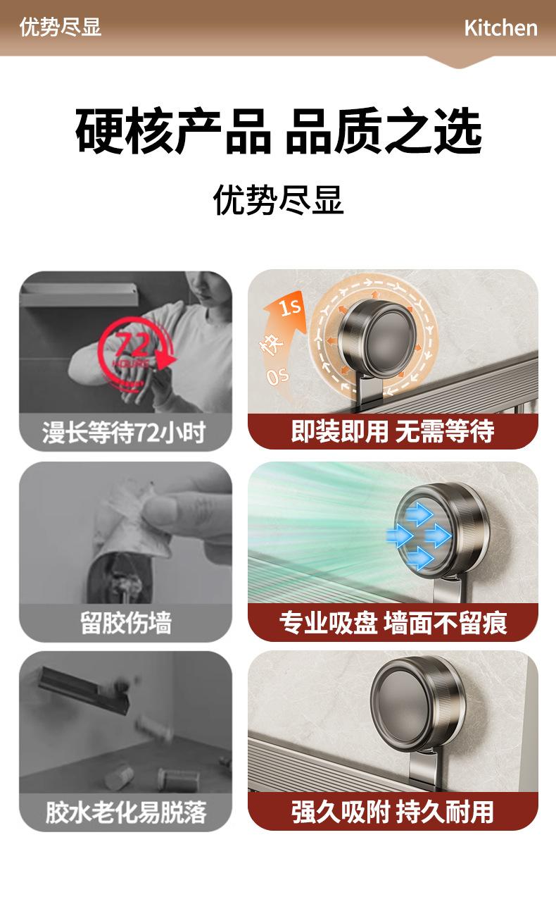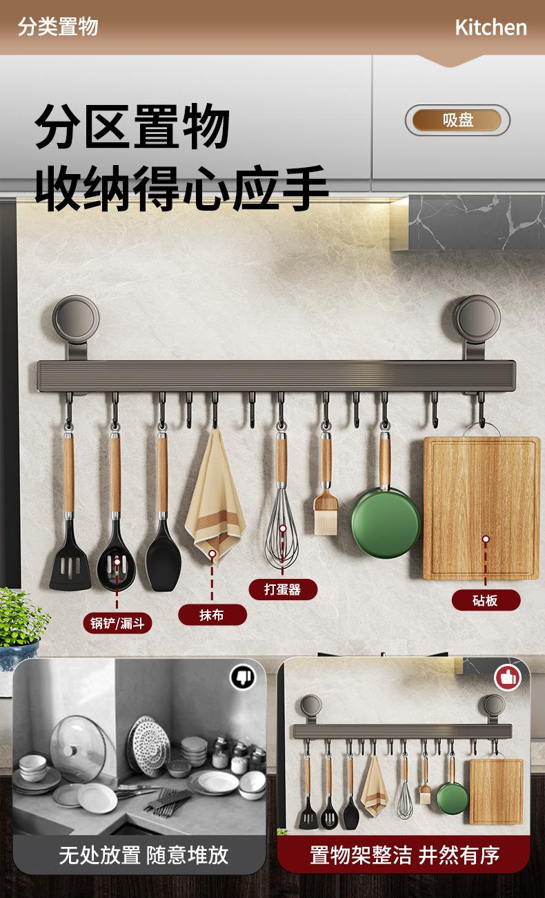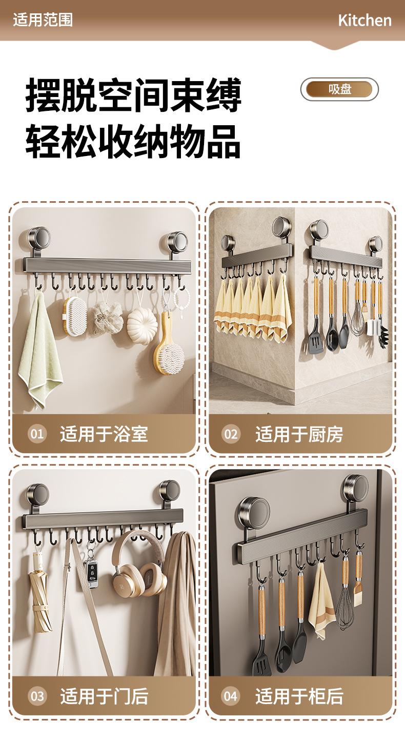 Gancho de Baño de Aluminio Espacial sin Perforaciones para Pared Gancho Activo Multifuncional Montado en la Pared Almacenamiento para Cocina y Baño Gancho con Ventosa