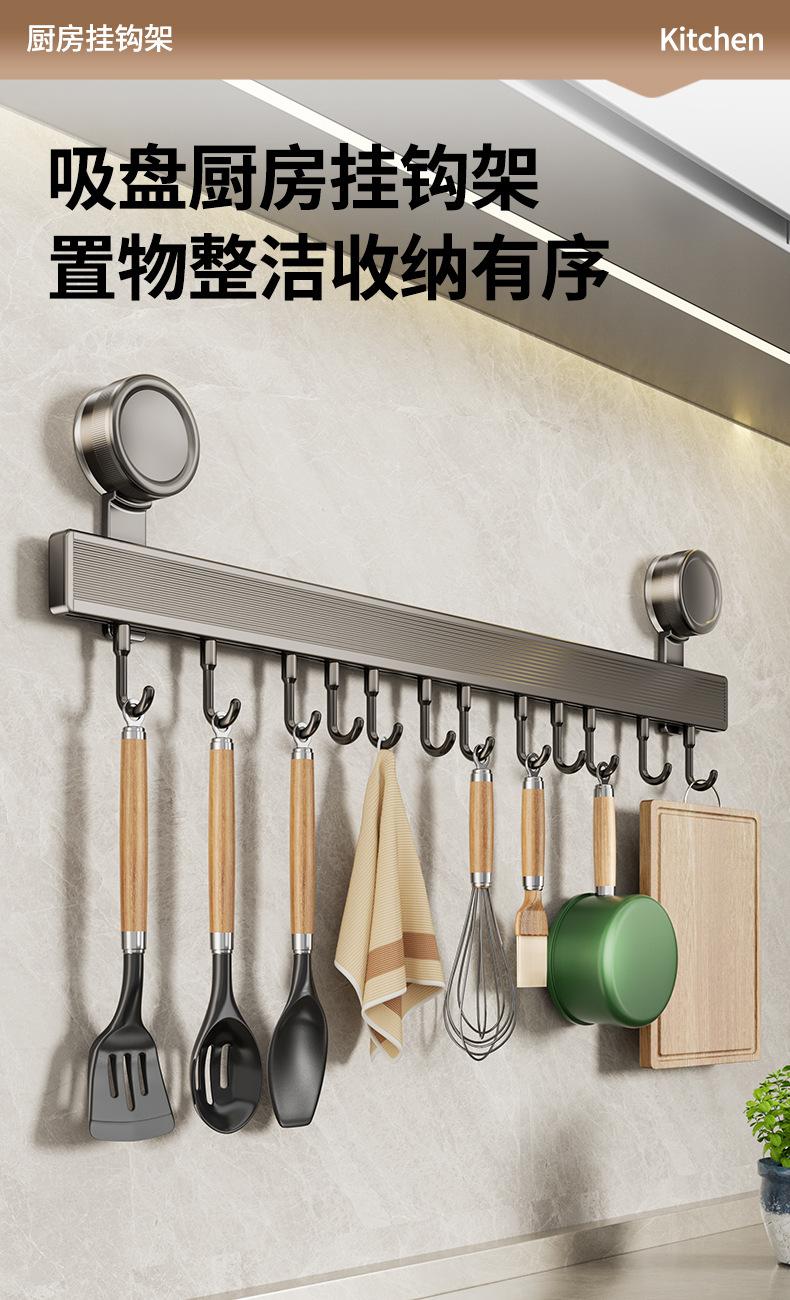 Gun ash 30cm suction cup style movable hook 6 hooks
