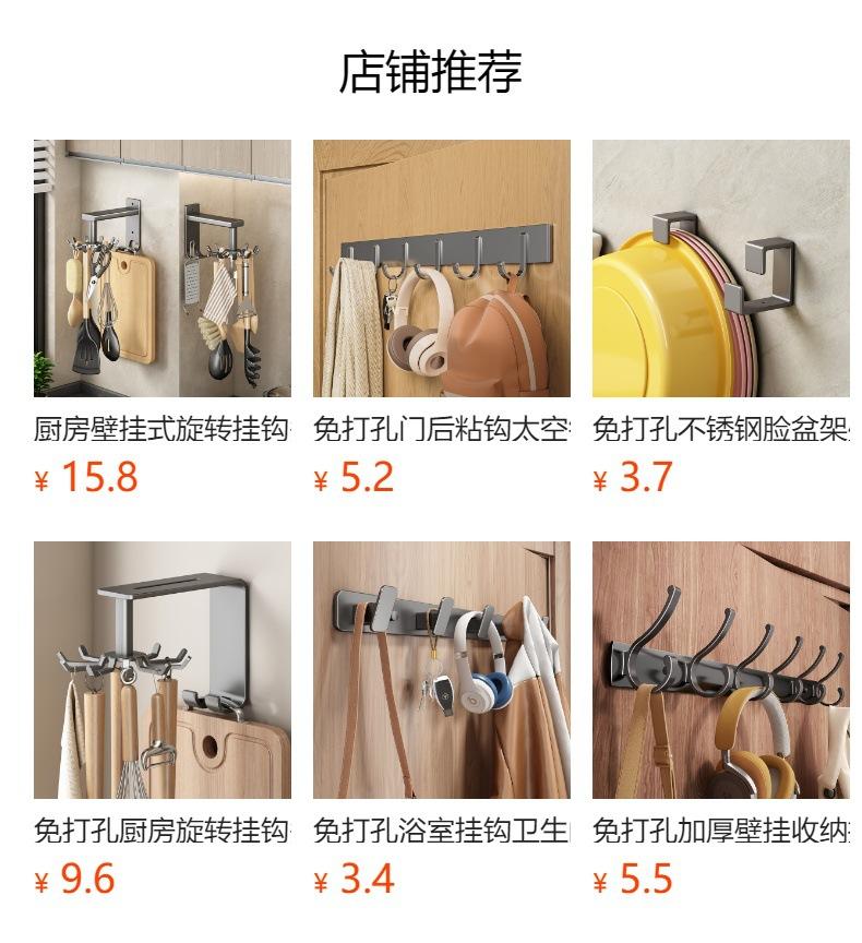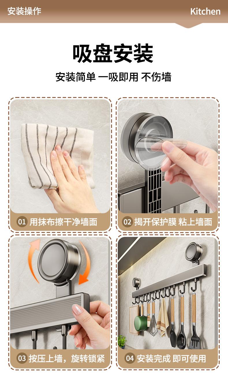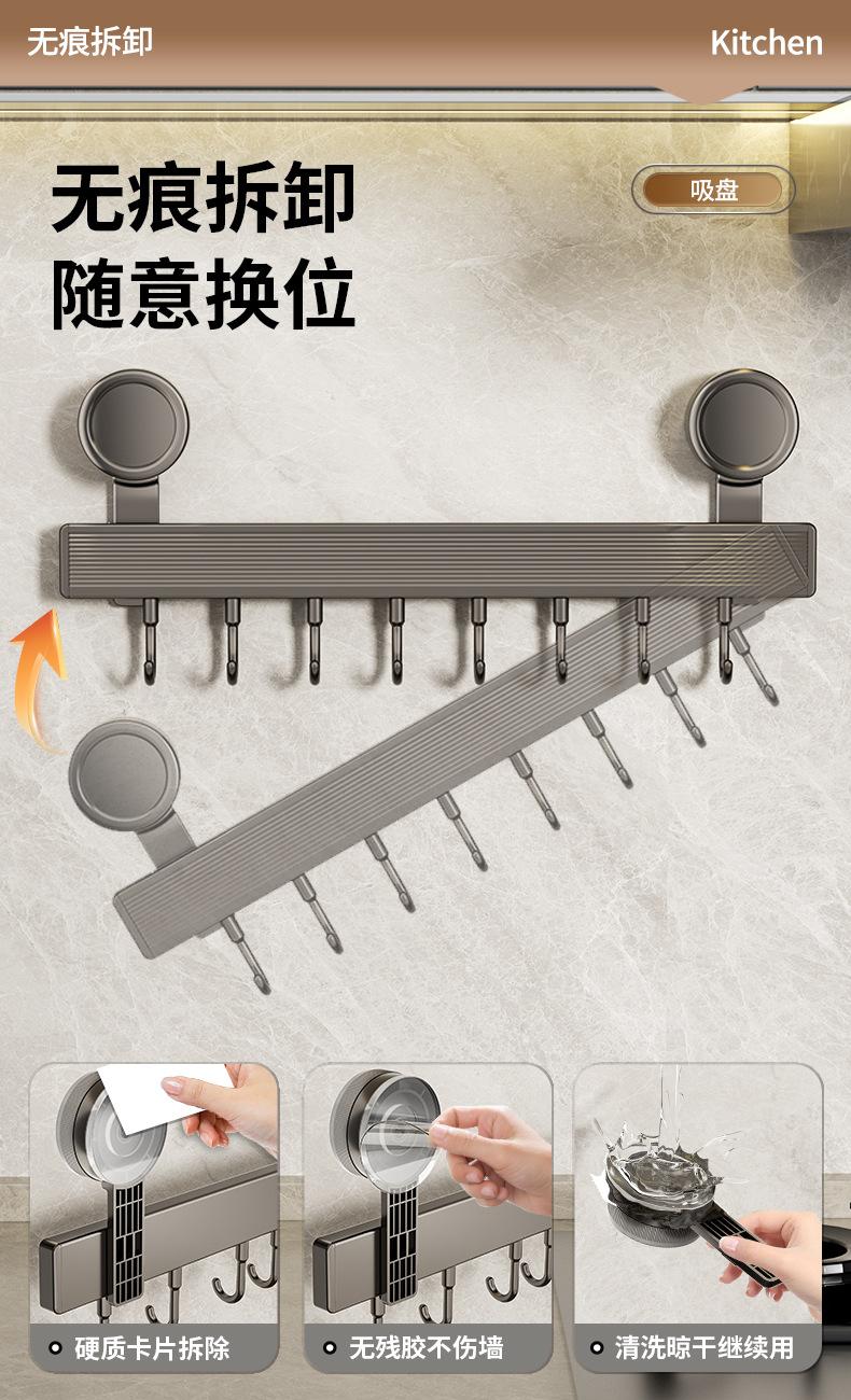 Gun ash 20cm nail-free adhesive style movable hook 4 hooks, Gun ash 30cm nail-free glue style movable hook 6 h...