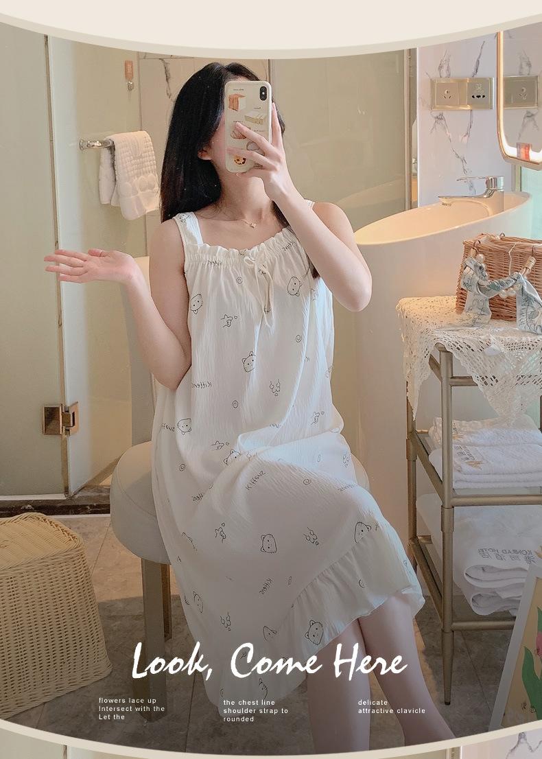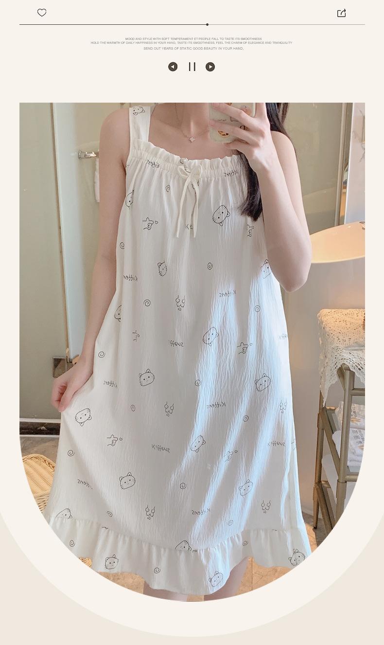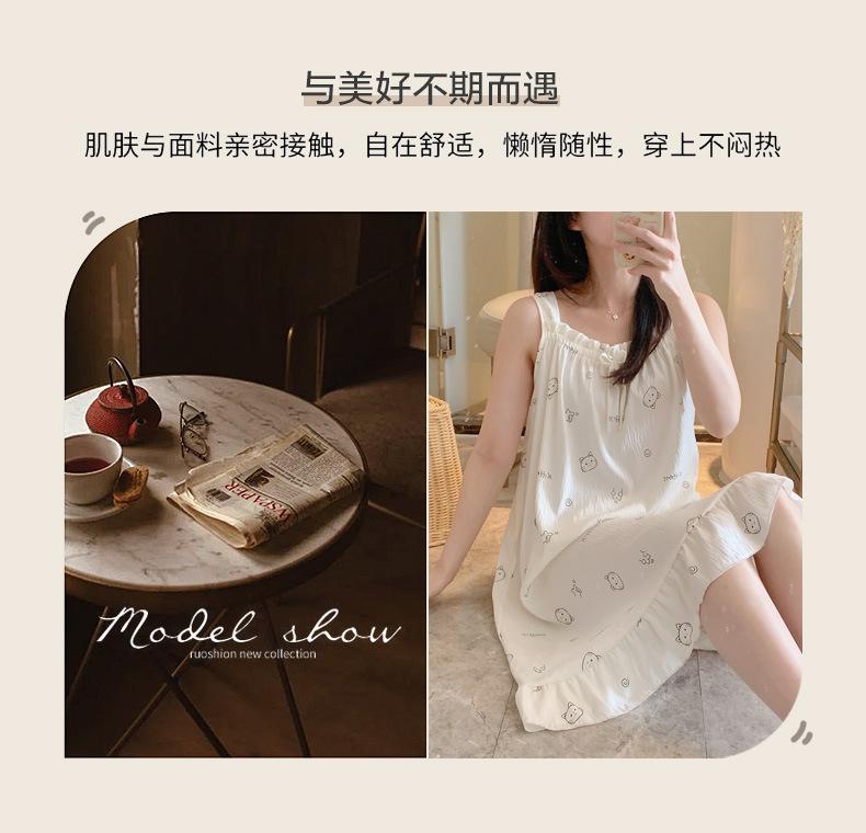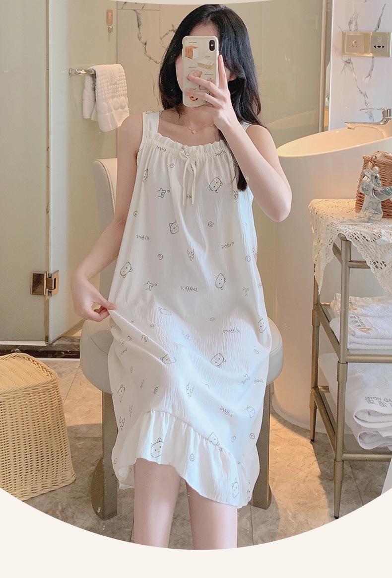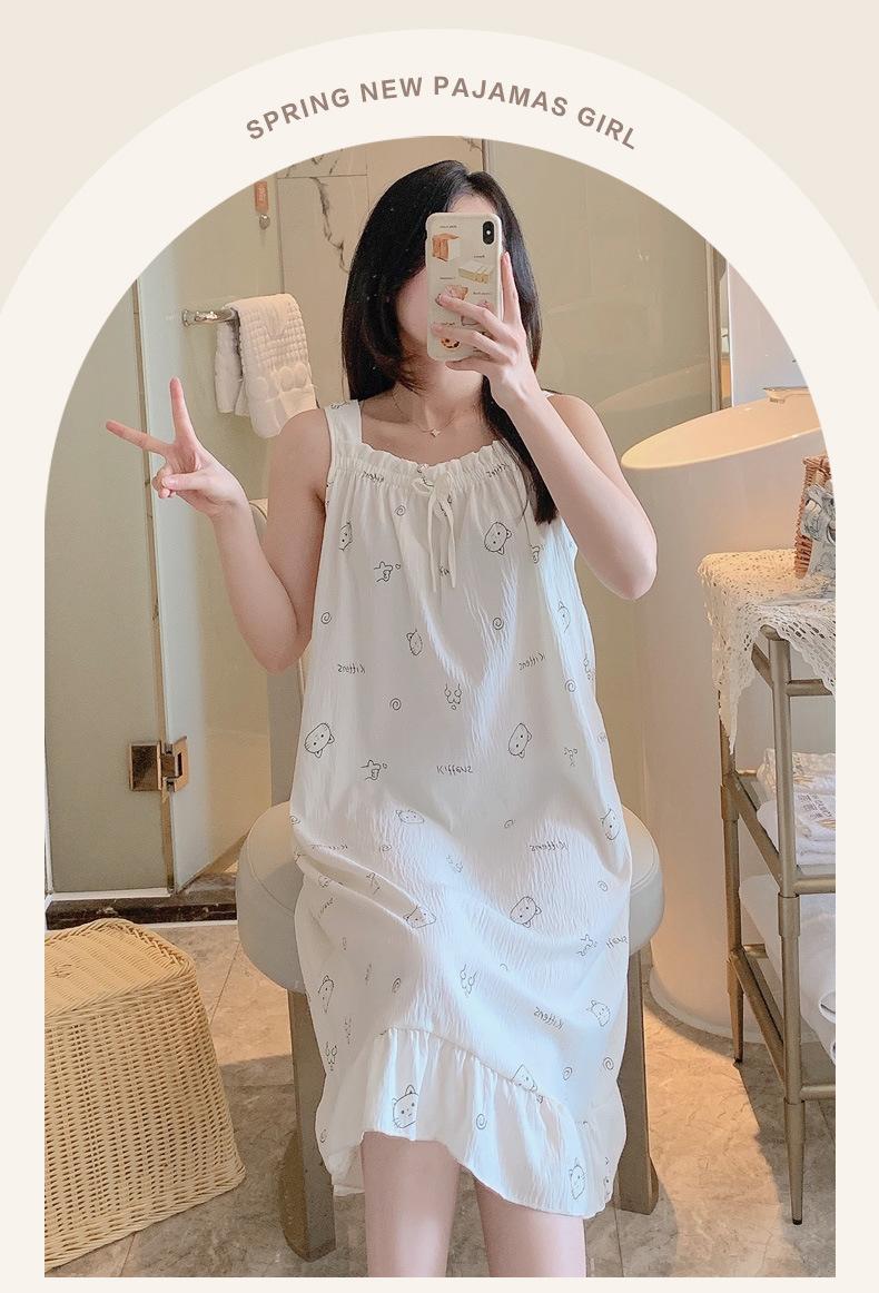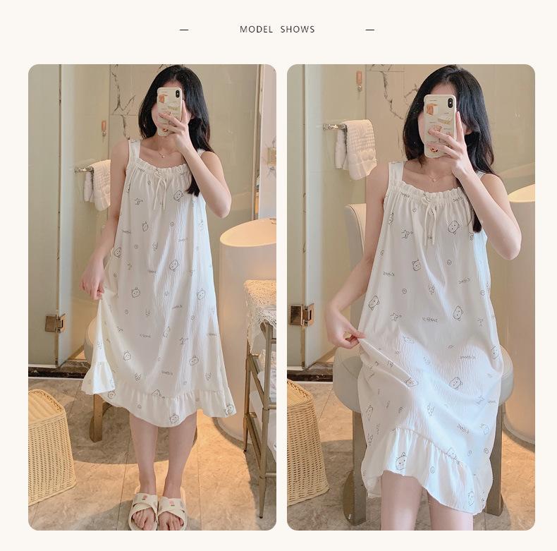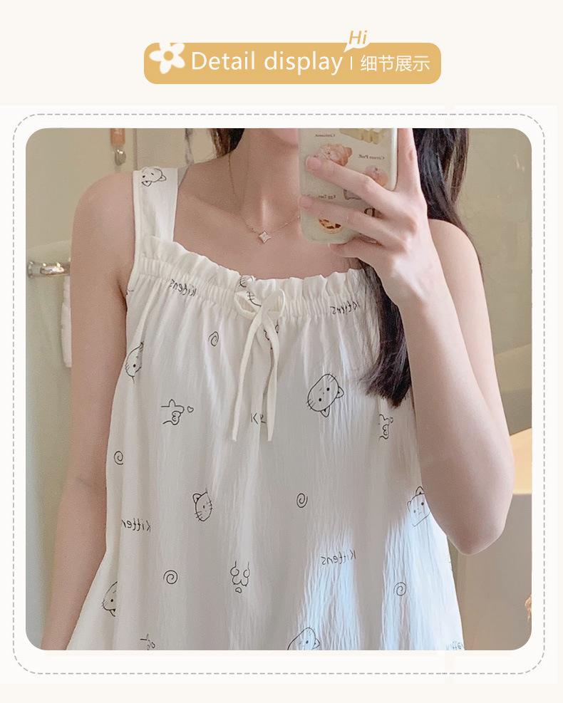 Camisón de Verano para Niña Algodón Nube Delgado Sin Mangas Tirantes Pijama Femenino Estilo Princesa Ropa para el Hogar Dulce y Lindo Verano