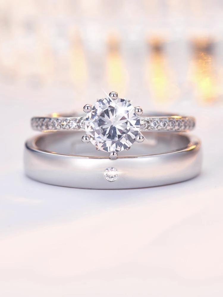 Anillo de Pareja de Diamante Simulado para Mujer, Versión Coreana, Anillo de Compromiso de Circonita que no se Desvanece, Joyería de Circonita de Moda de Seis Garras