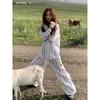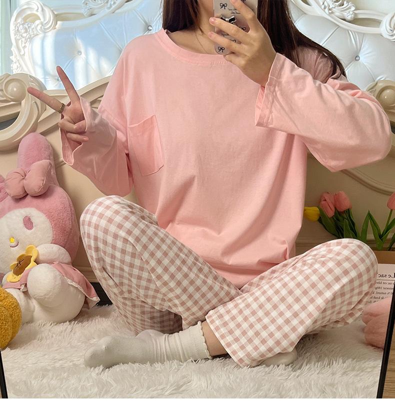 Pijama para Mujer Primavera y Otoño Verano Nuevo Perezoso Algodón Puro Suelto Traje Casual de Alta Gama Manga Larga Ropa de Exterior Ropa para el Hogar