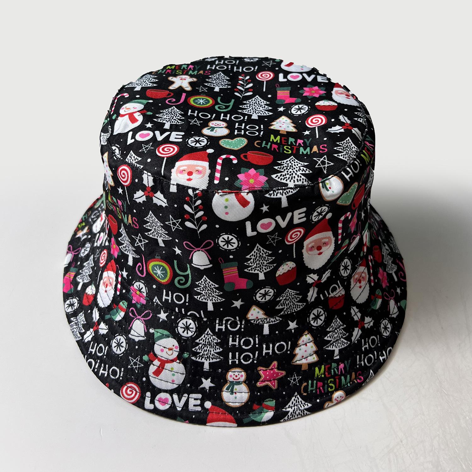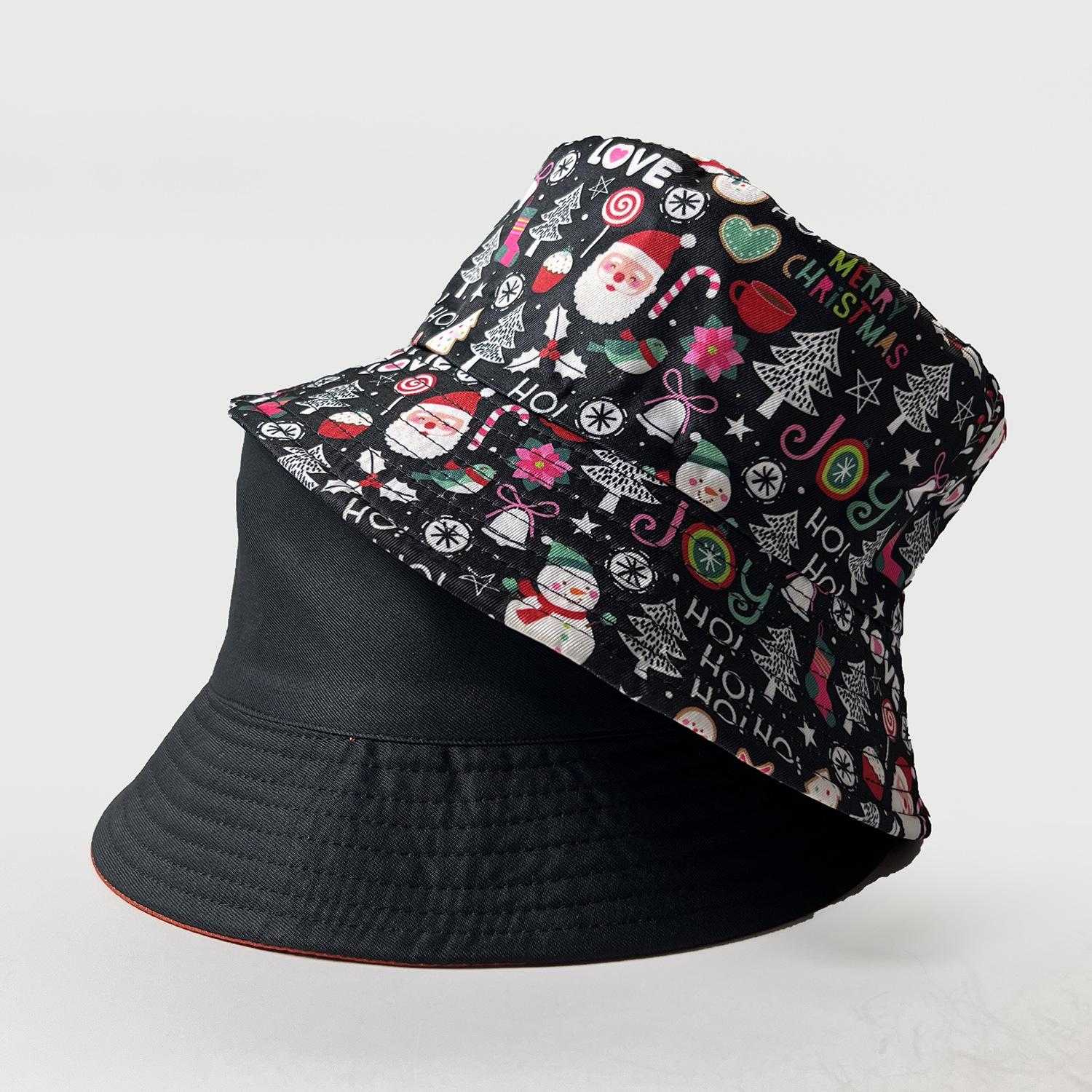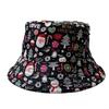 Sombrero de Pescador Retro Nostálgico Transfronterizo para Mujer Patrón Navideño Estampado de Letras Sombrero de Cubo Primavera Verano Reversible Sombrero para el Sol para Hombre