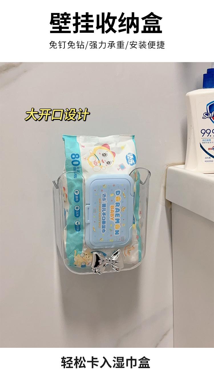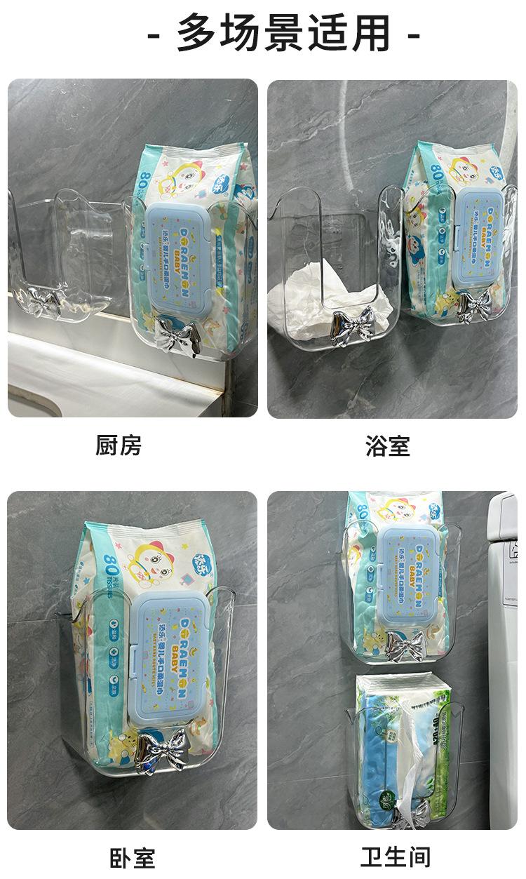 Caja de Toallitas Húmedas Caja de Pañuelos Montada en la Pared Cajón de Papel Caja de Almacenamiento de Toallas Faciales Sin Perforaciones Inodoro Baño Baño Cocina
