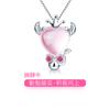 Colgante de Cristal Rosa Amor Zodiacal Colgante de 12 Signos del Zodíaco de Cristal Rosa Piedra Creativa de Hibisco Collar Zodiacal de Cristal Rosa