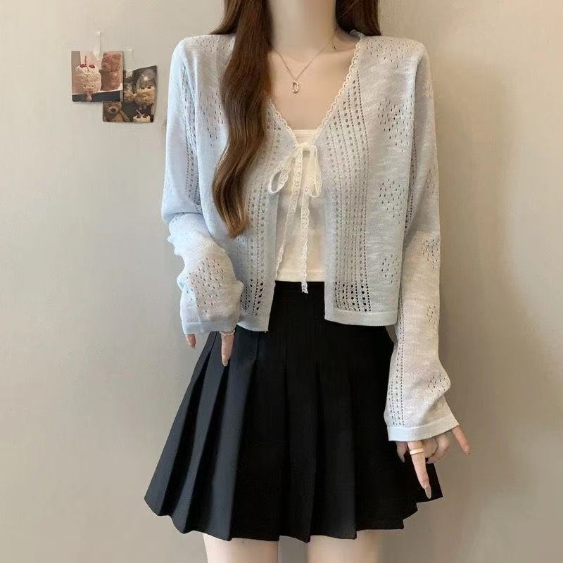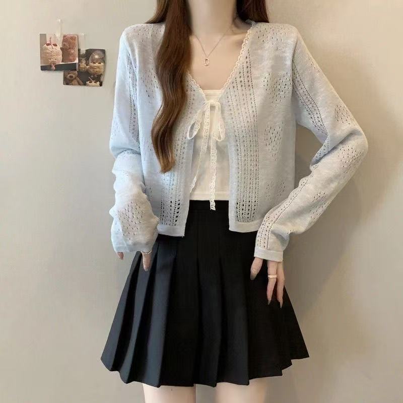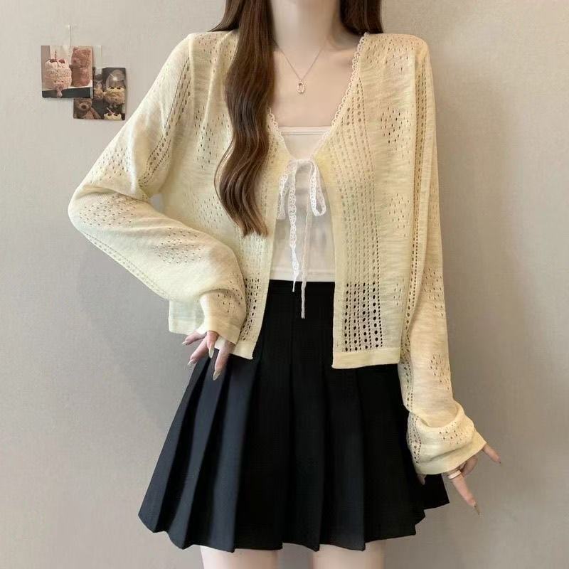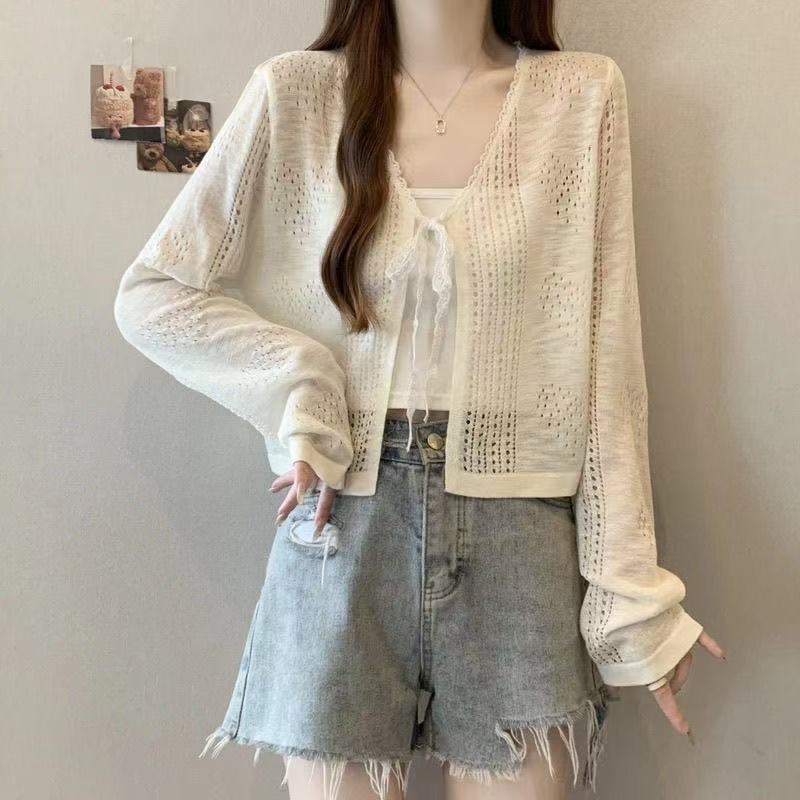 Nuevo cárdigan de punto corto con protección solar de verano, cárdigan chal para vestido de tirantes fino, top de punto para aire acondicionado, marea para mujer