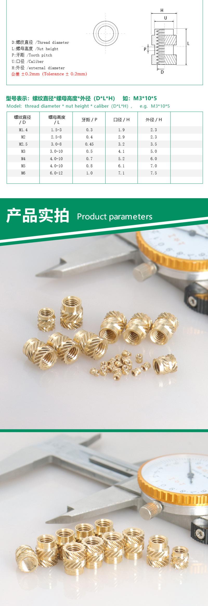 M1-M8 Tuerca de cobre ocho tierra inyección de fusión en caliente tuerca de cobre inserto de cobre moleteado trenzado tuerca de latón