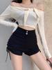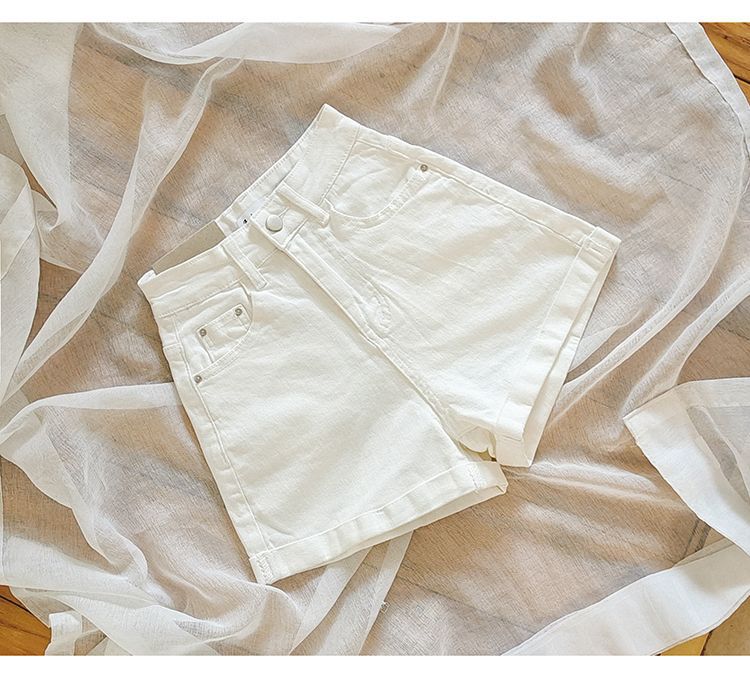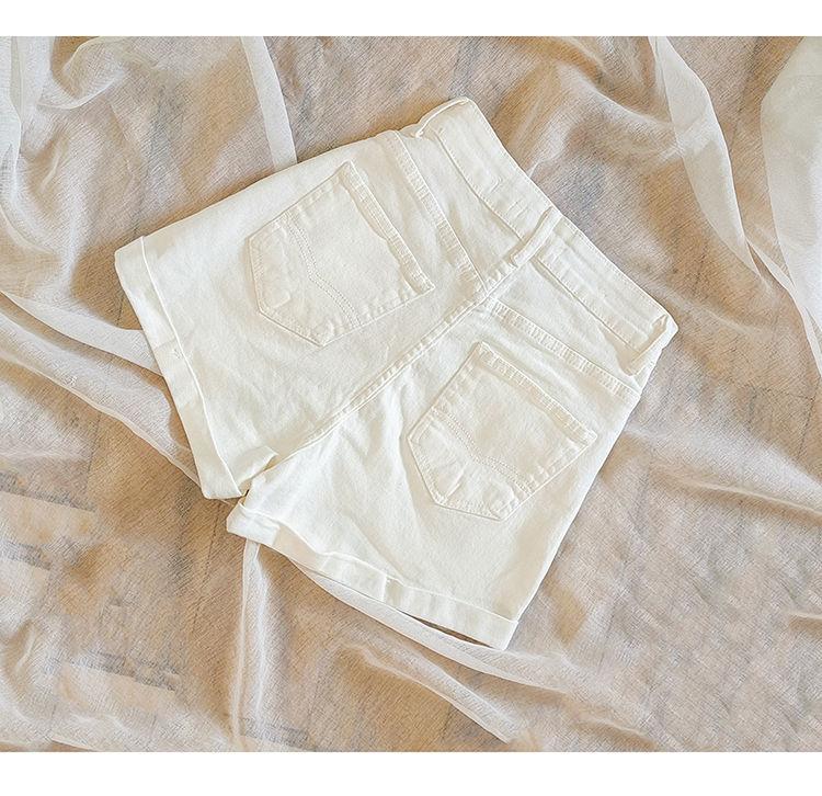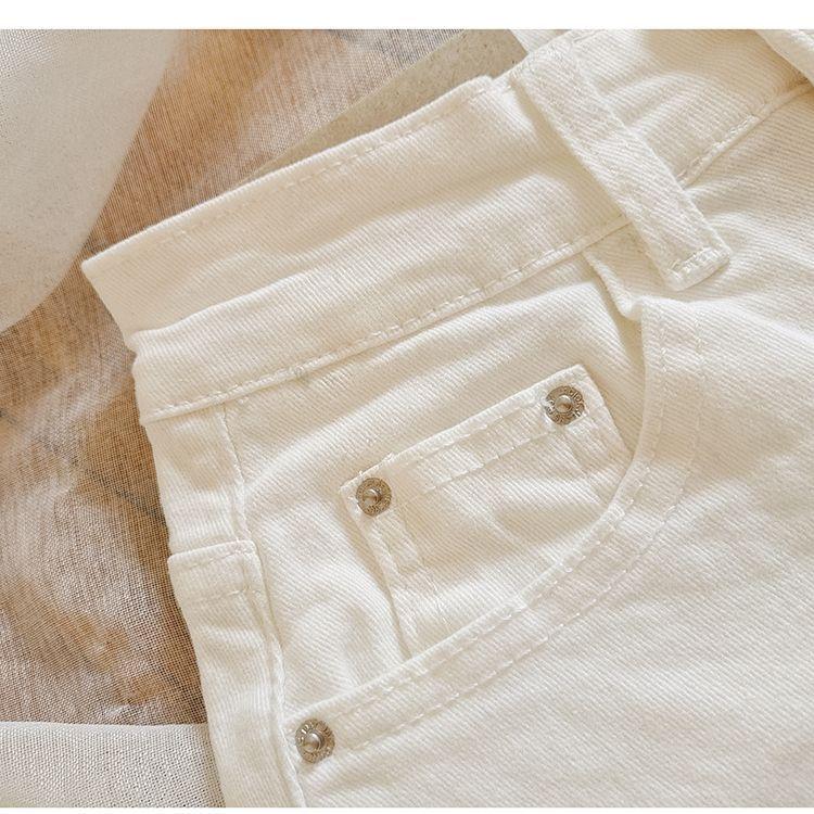 Nuevos Shorts de Mezclilla Blanca de Verano 2022 para Niñas Look Adelgazante Ins Estilo K Cintura Alta Longitud de Pierna Blanco Huang Shihai