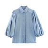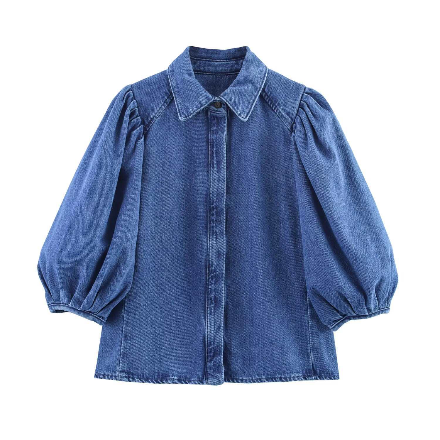 Solapa Mujer Nuevo Jeans de Cintura Alta Camisas Europeas y Americanas Transfronterizo Primavera