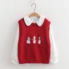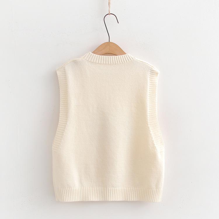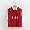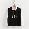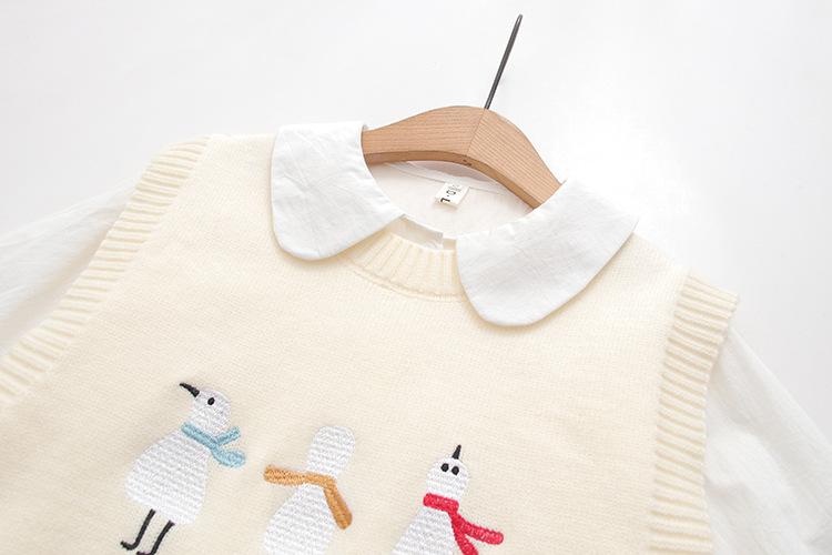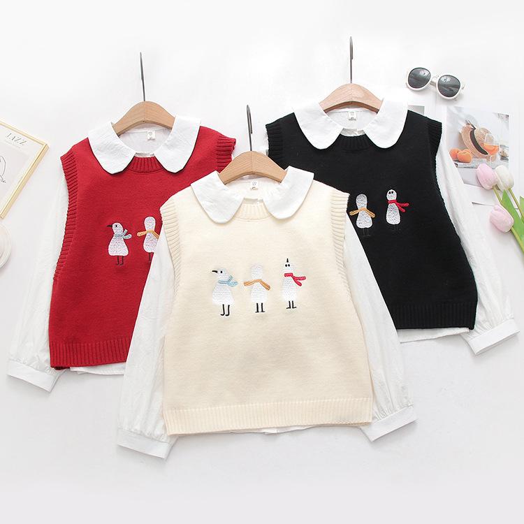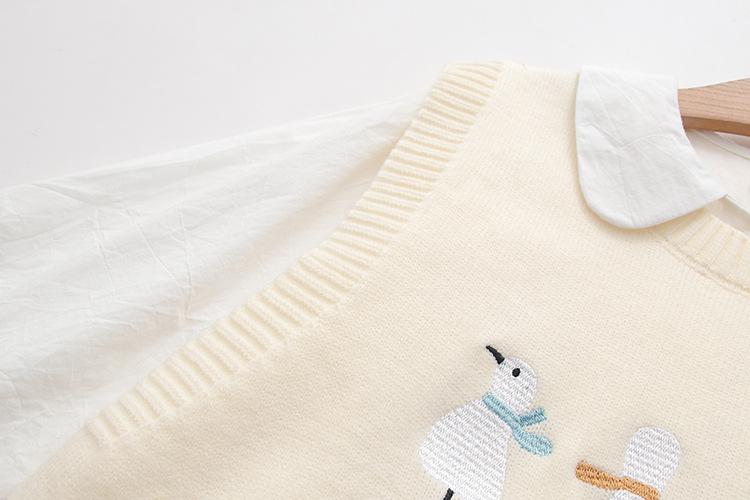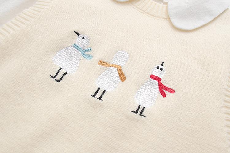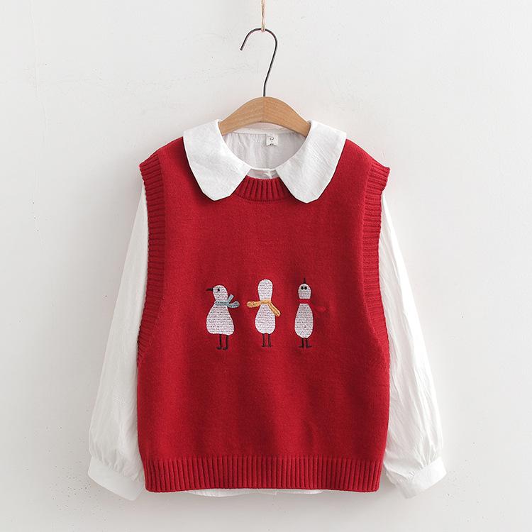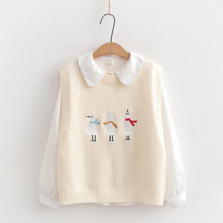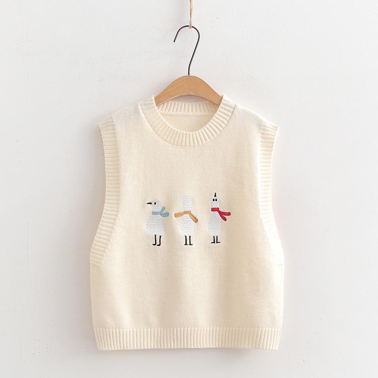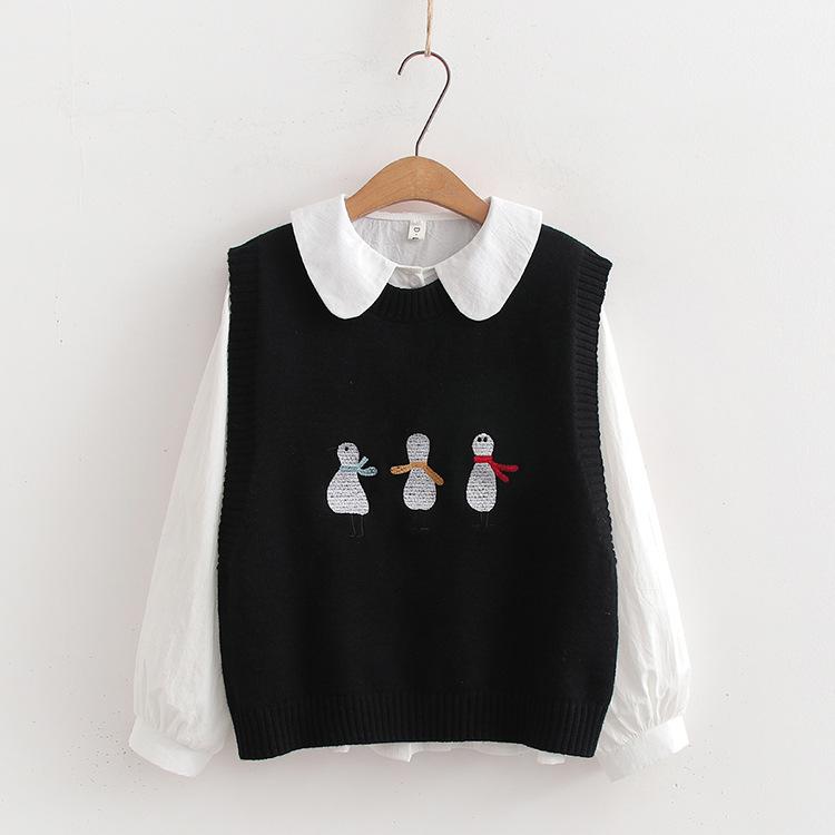 Chaleco suéter bordado de pingüino lindo de dibujos animados dulces japoneses para mujer, traje de dos piezas para primavera 2024, chaleco para mujer
