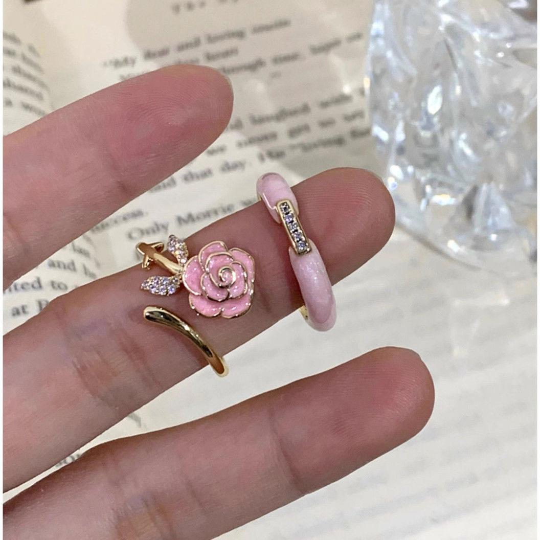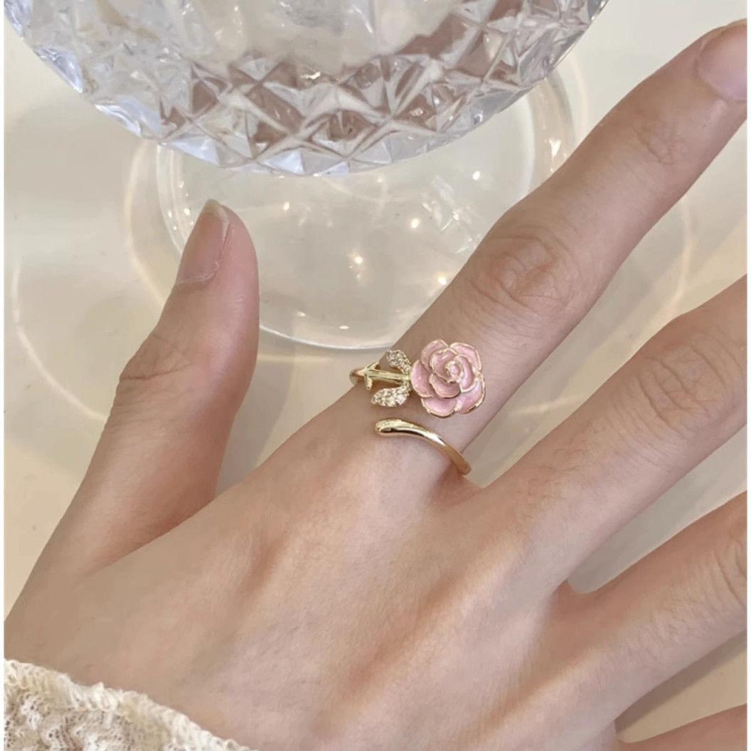 Anillo Abierto Camelia Estilo Ins para Mujer Diseño Nicho Exagerado Anillo para Dedo Índice Anillo Esmaltado Anillo Abierto