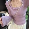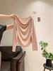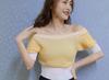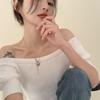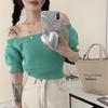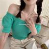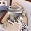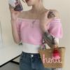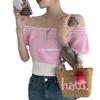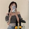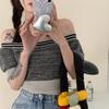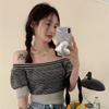 Suéter de Verano 2024 de Un Hombro a Rayas Delgado Retro Cintura Temperamento Diseño Slim Nicho Manga Corta Mujer