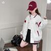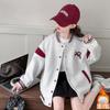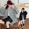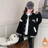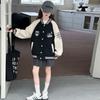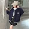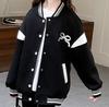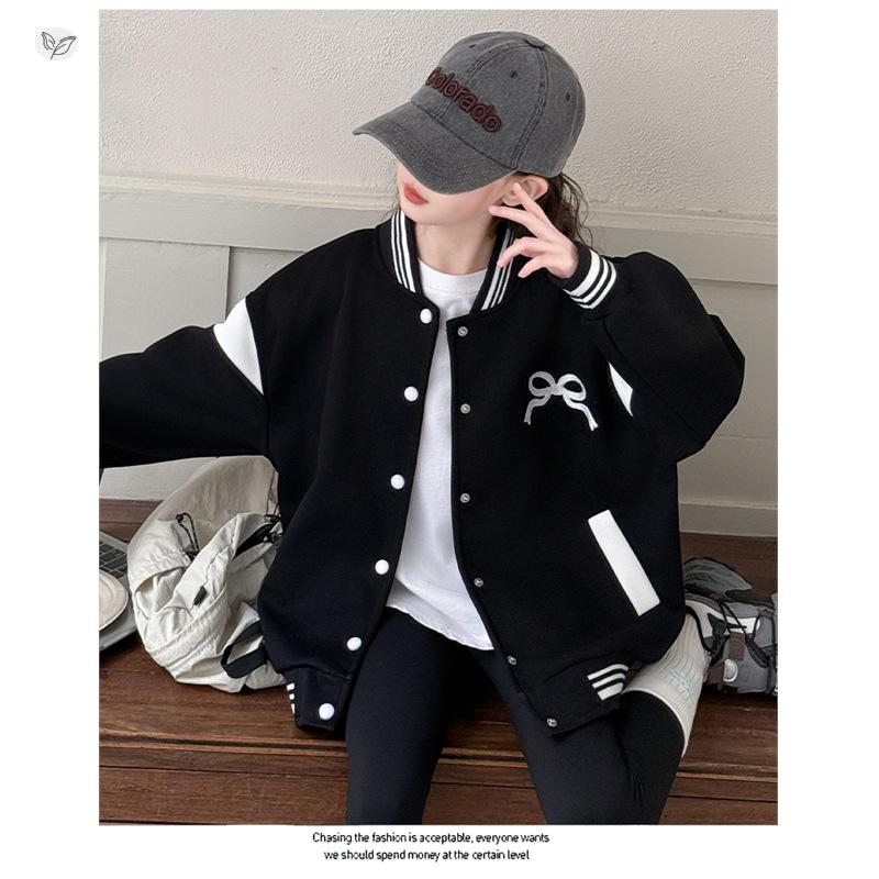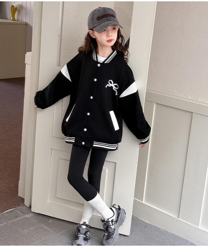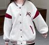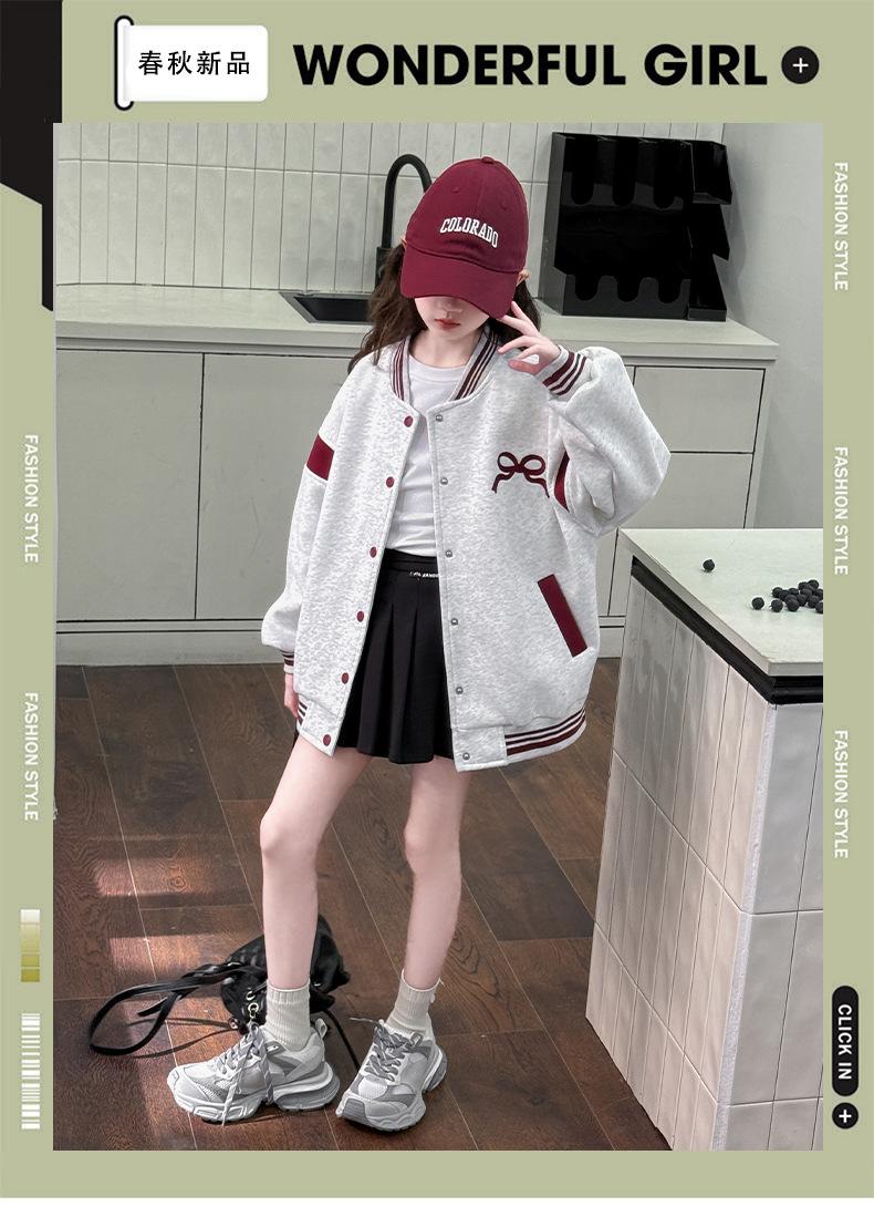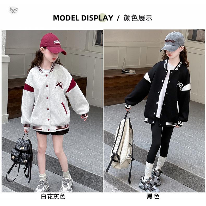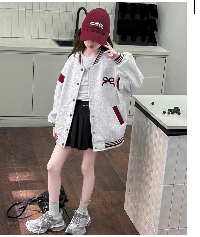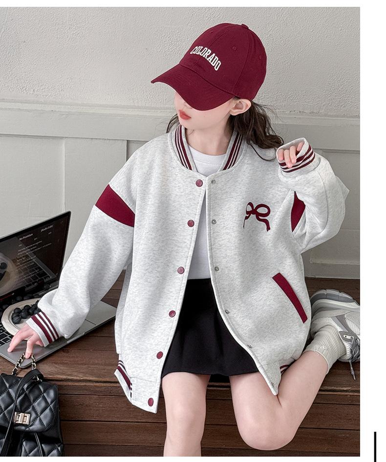 Chaqueta de Béisbol de Forro Polar para Niñas 2025 Otoño/Invierno Nuevo Estilo Niños Grandes Estilo Universitario Chaqueta Bordada con Lazo