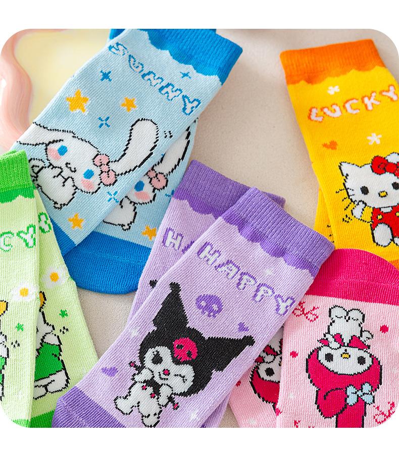 Calcetines Sanrio para Niños Primavera y Otoño Media Caña Algodón Calcetines de Otoño e Invierno para Niñas Lindo Dibujo Animado Niños Bebé Niña Calcetines Venta al por Mayor