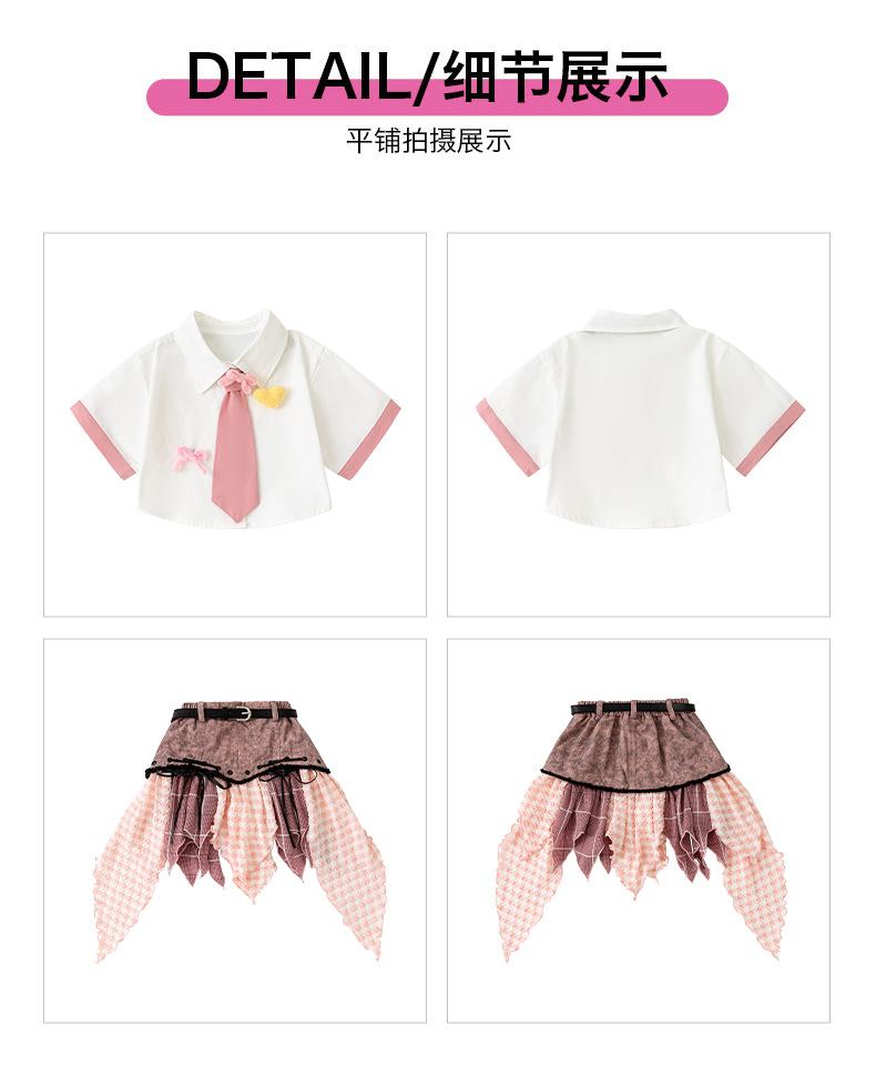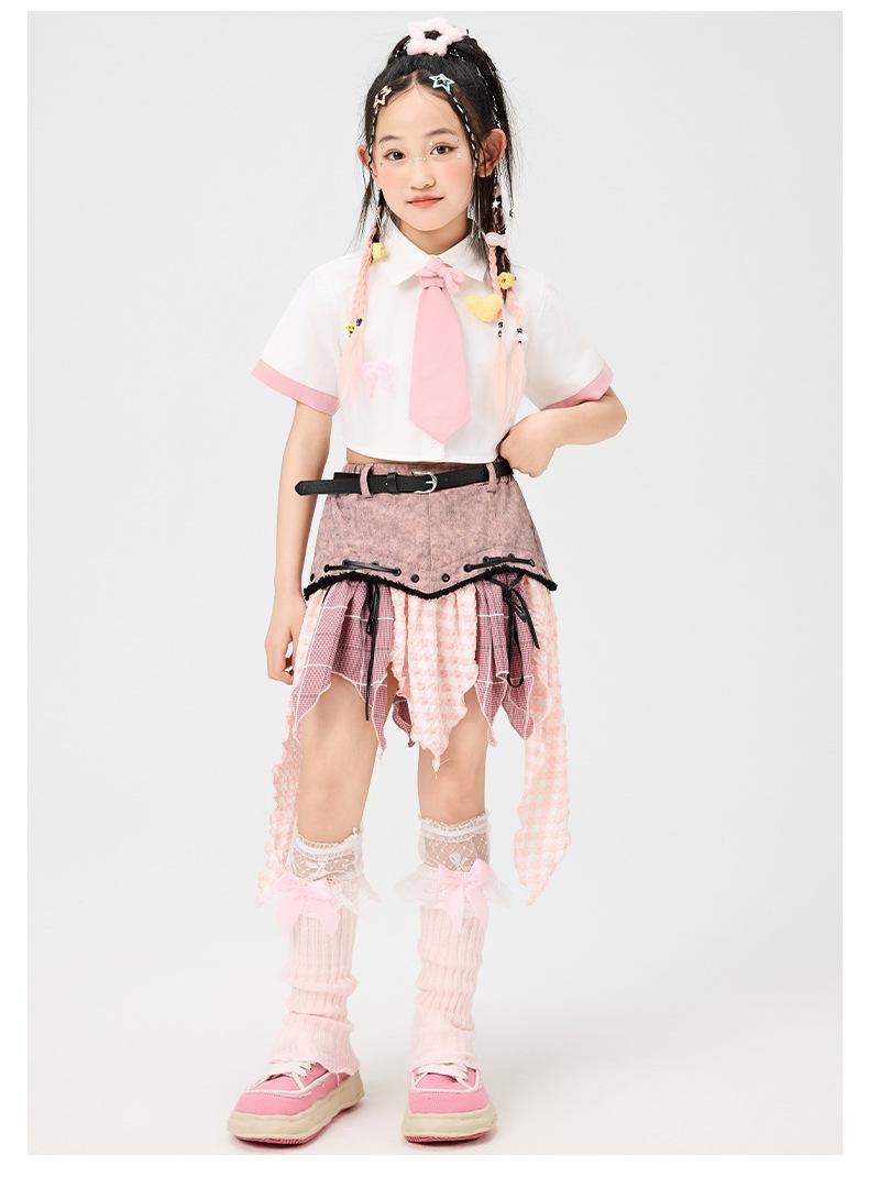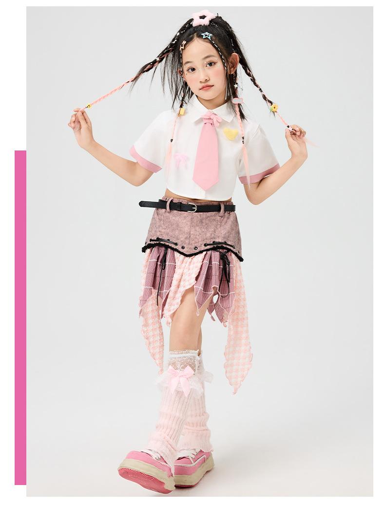 D15 white pink color matching shirt + k13 pink irregular skirt + pink bow tie