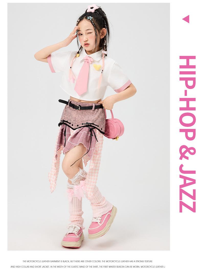 Ropa de Actuación Hip-Hop para Niños, Ropa Hip-Hop de Baile Jazz para Niñas, Ropa de Actuación Hip-Hop de Pasarela Rosa para Niñas