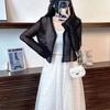 Cárdigan Tejido de Seda de Hielo Hueco de Cintura Pequeña Estilo Francés para Mujer Chal Fino Verano Corto Exterior Protector Solar Blusa para Aire Acondicionado