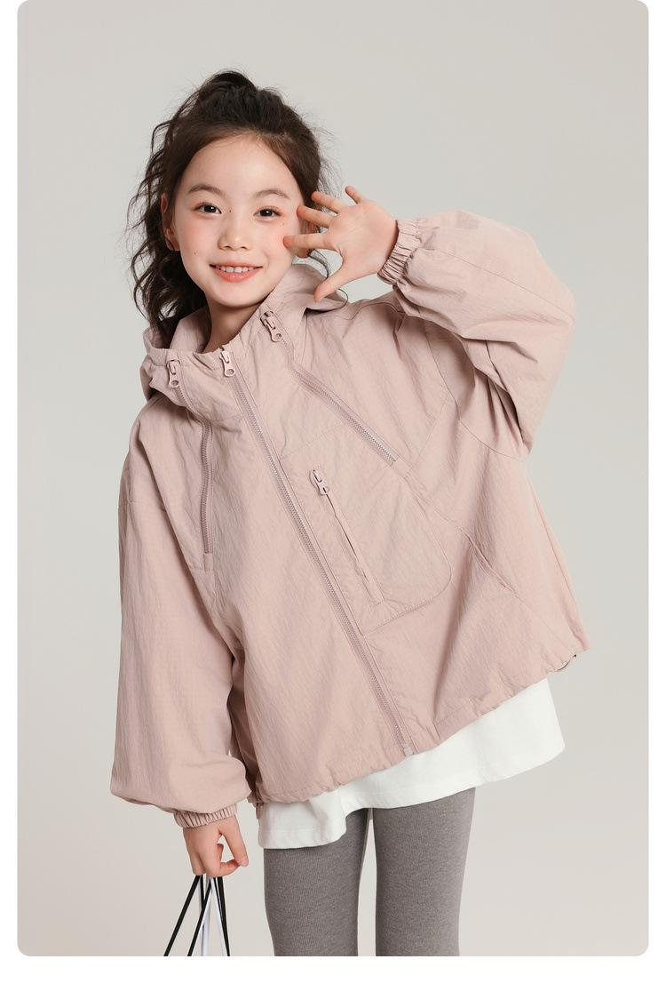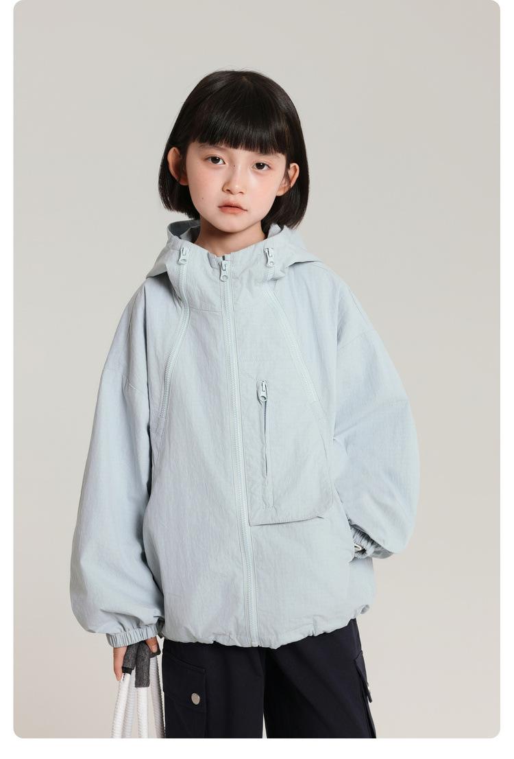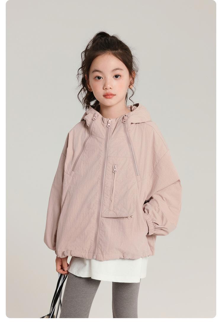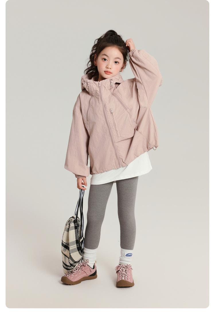 Pudding Haru Ropa Infantil Chaqueta con Capucha 2025 Otoño Nuevo Estilo Chaqueta Cortavientos para Niñas para Exterior Diseño de Cremallera Falsa
