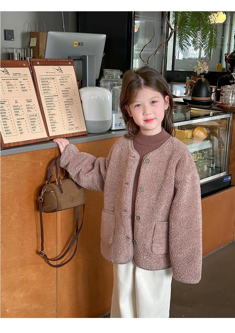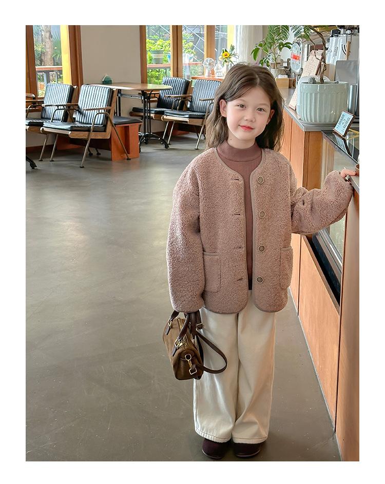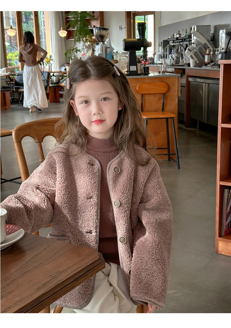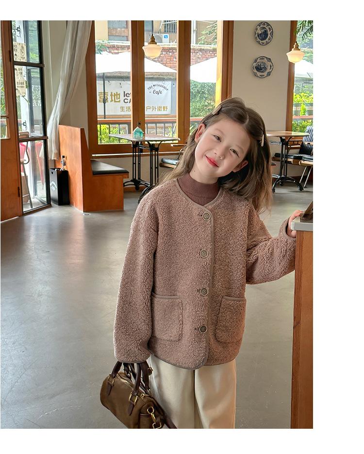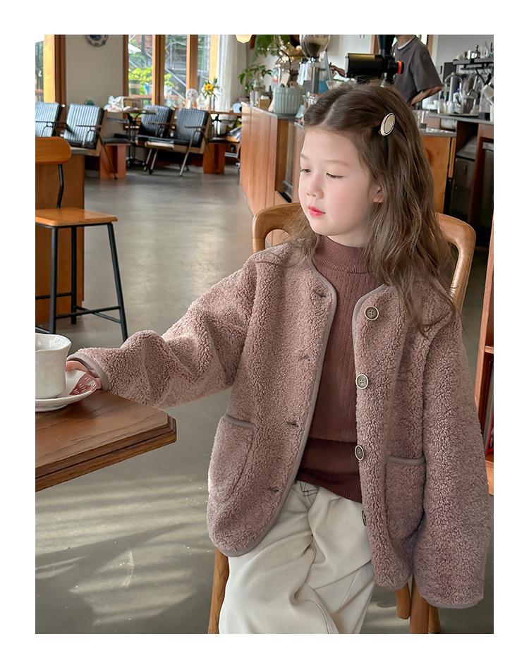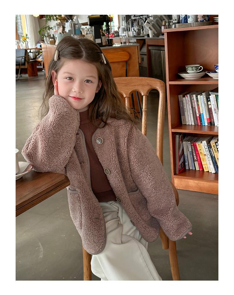 Chaqueta para niña estilo Chanel pequeño 2023 Otoño/Invierno Nueva Chaqueta infantil de lana de cordero Coreana Suelta Top de lana de cordero