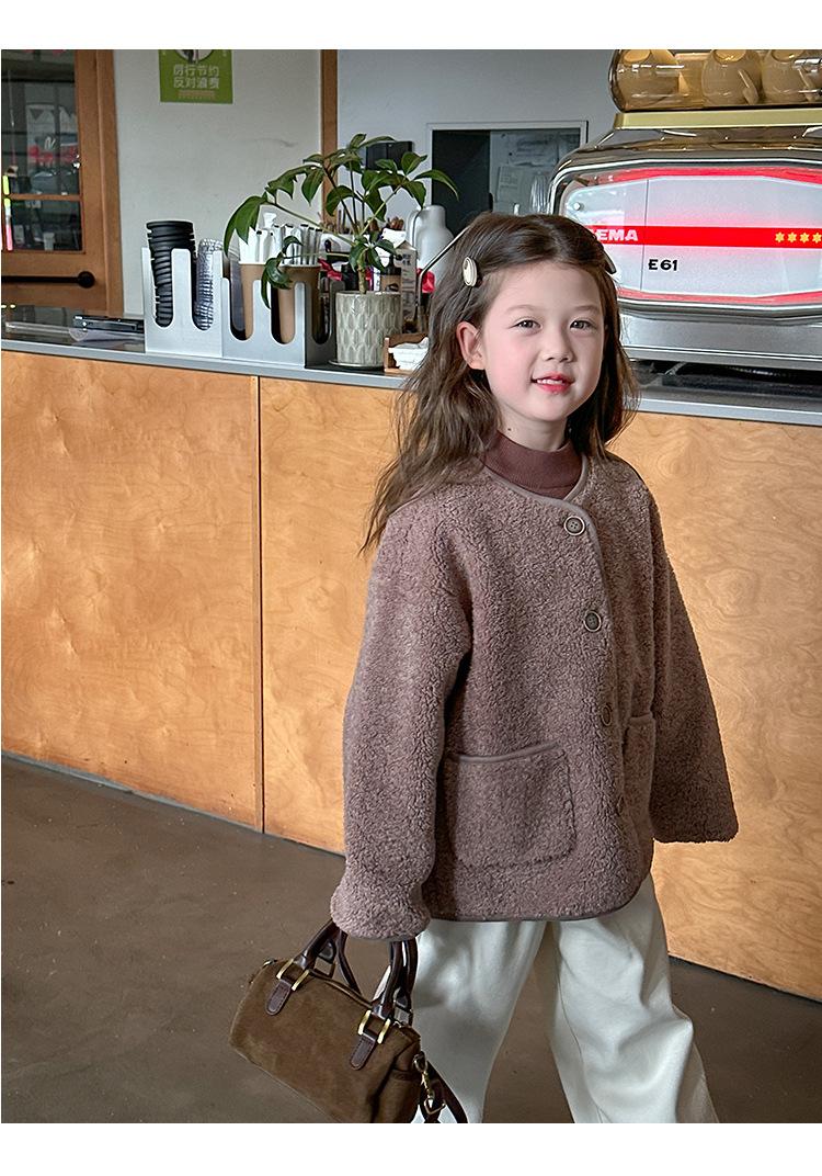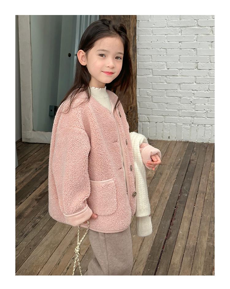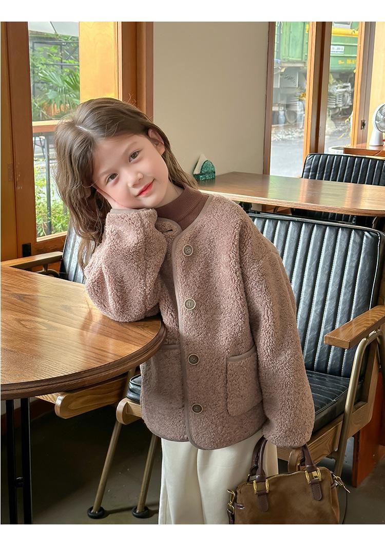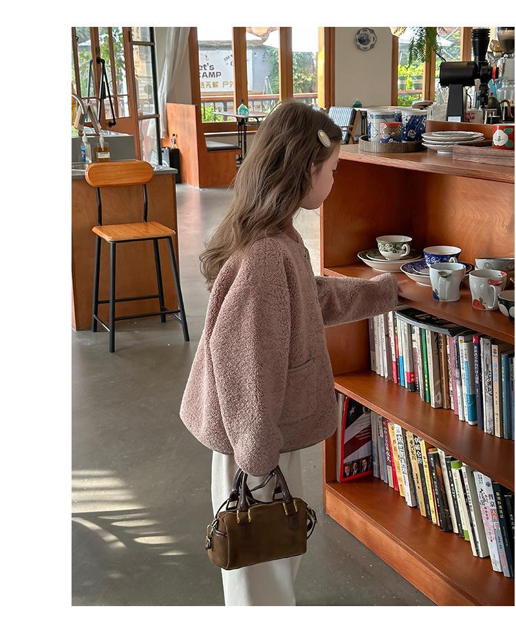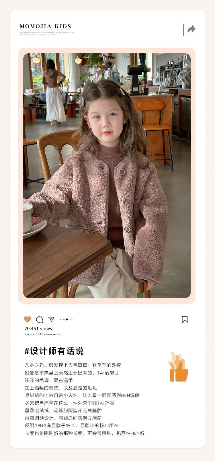 Chaqueta para niña estilo Chanel pequeño 2023 Otoño/Invierno Nueva Chaqueta infantil de lana de cordero Coreana Suelta Top de lana de cordero