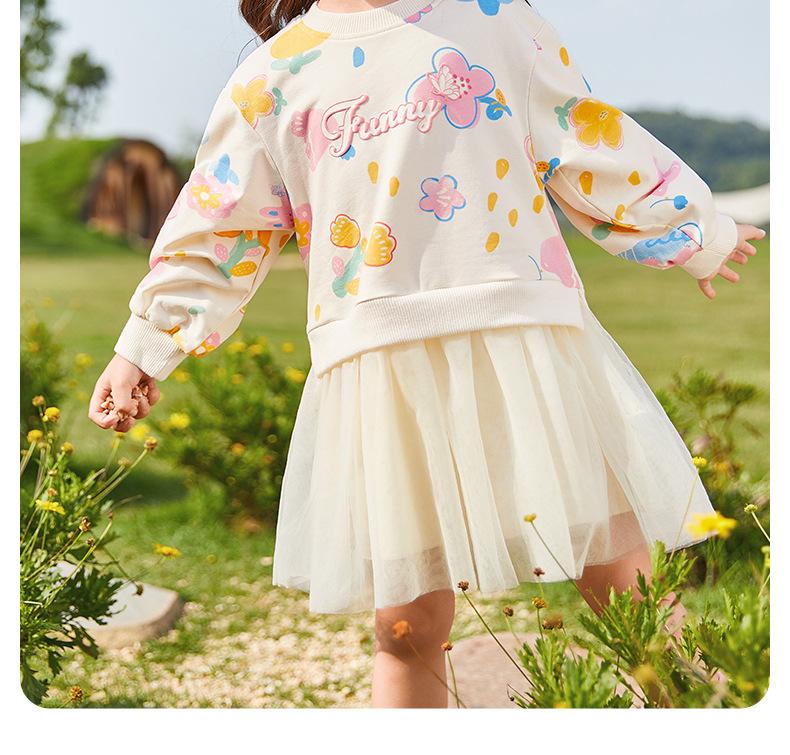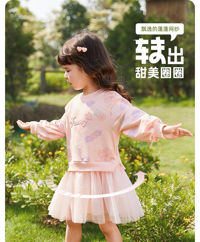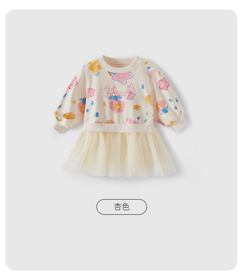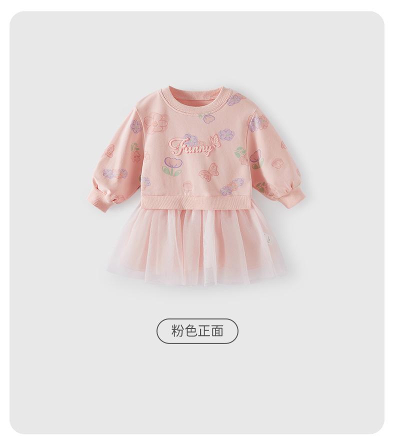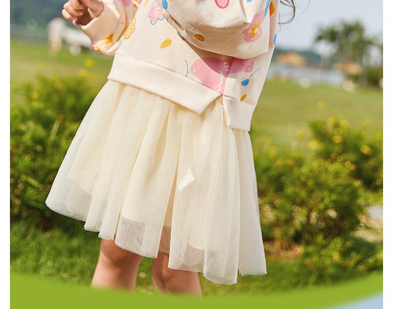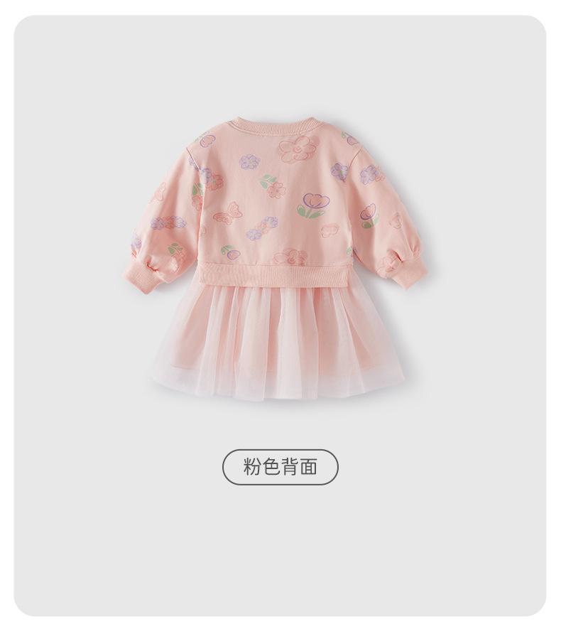 [Antibacterial] Vestido de Niña Vestido Sudadera Dulce para Niños Otoño Nuevo Vestido de Princesa Vestido de Moda de Malla para Bebé