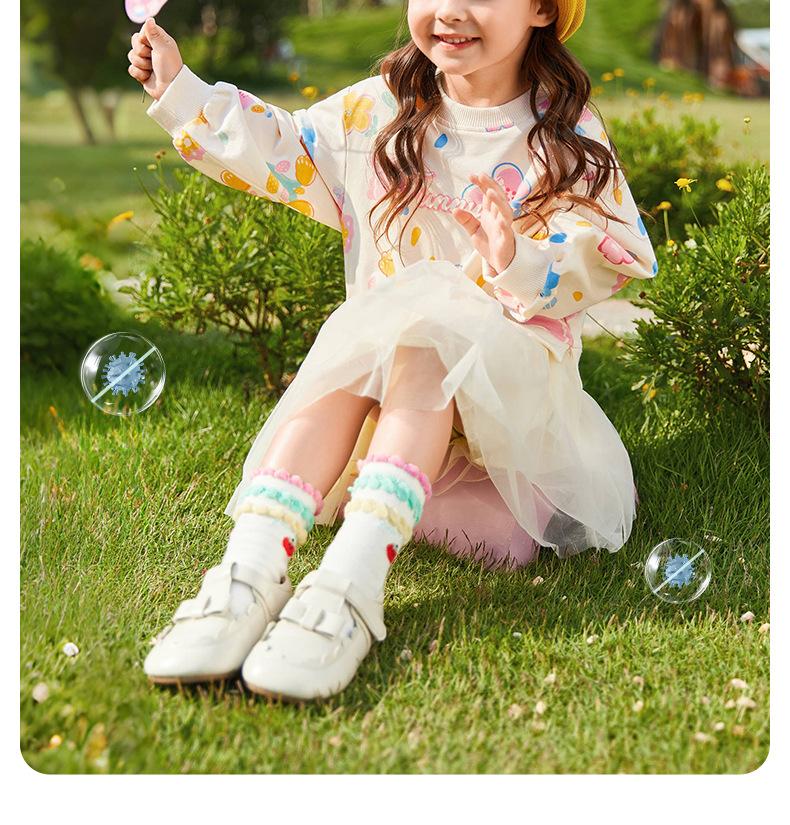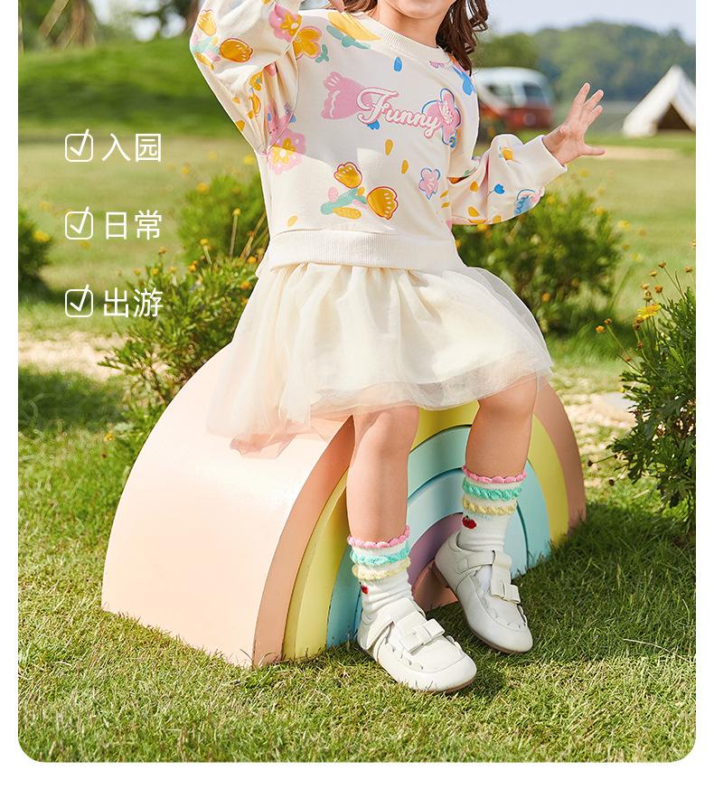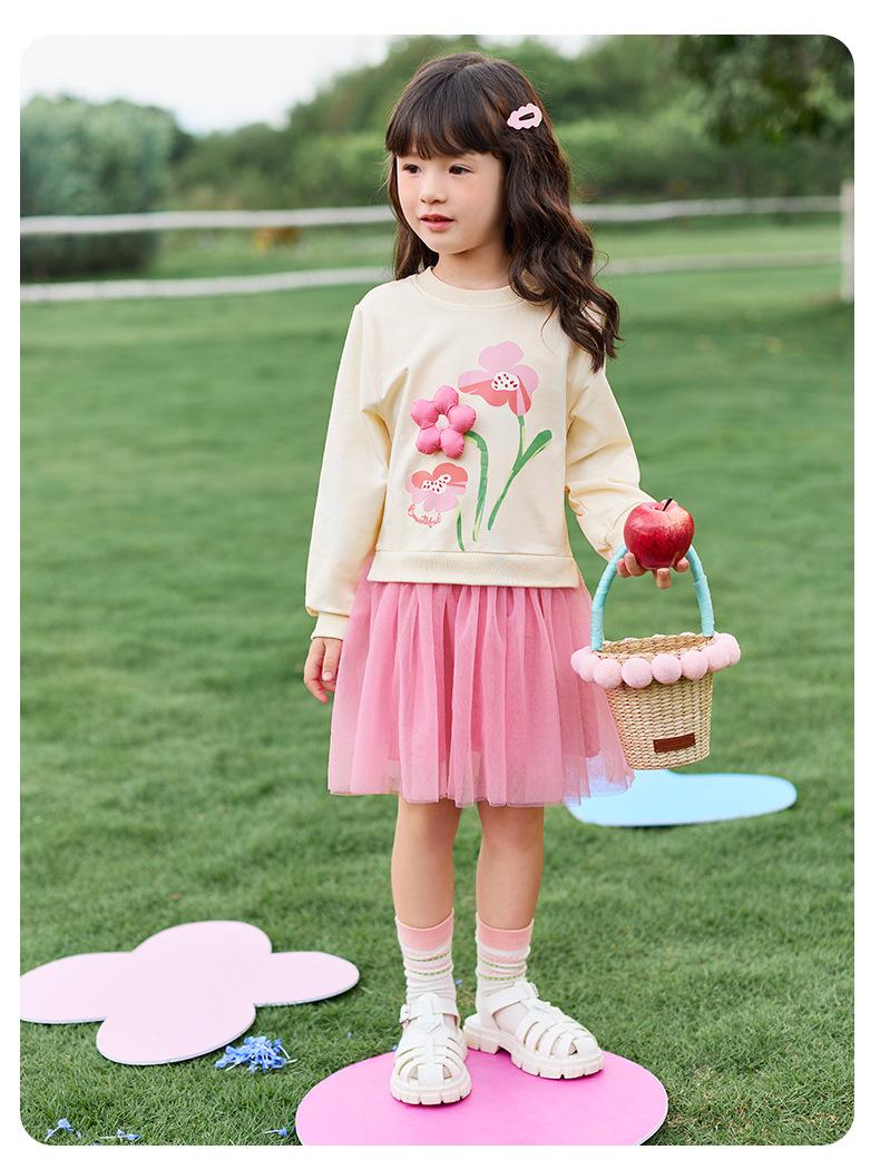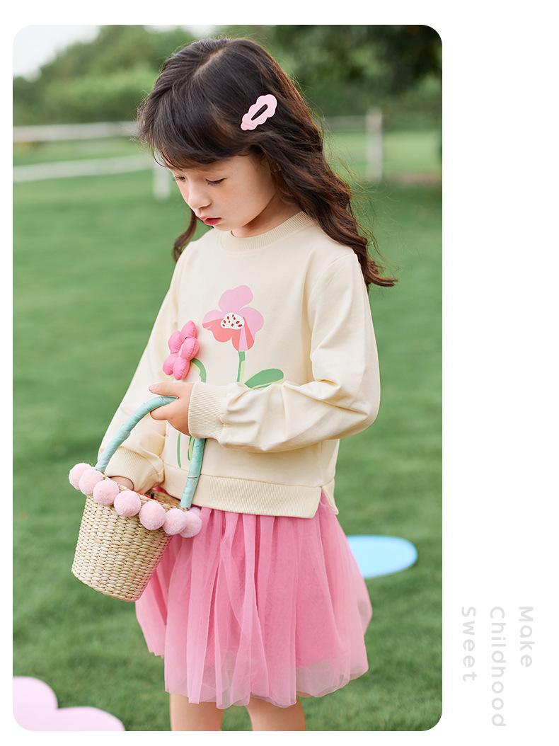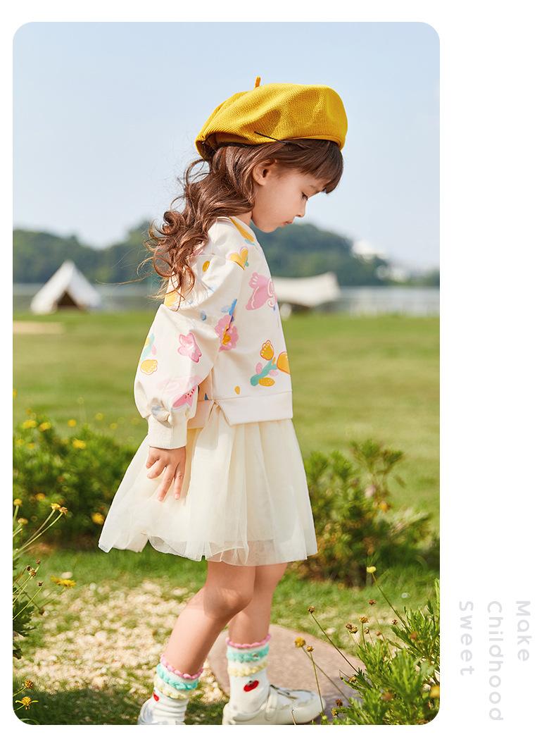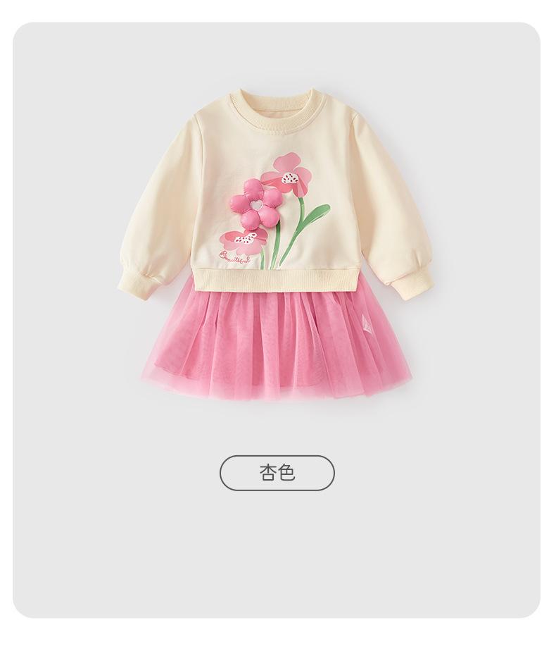 [Antibacterial] Vestido de Niña Vestido Sudadera Dulce para Niños Otoño Nuevo Vestido de Princesa Vestido de Moda de Malla para Bebé