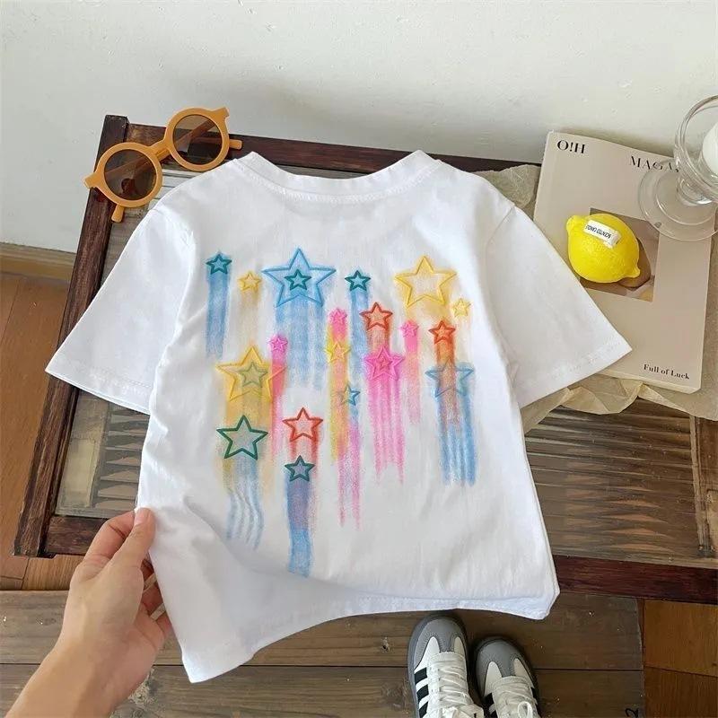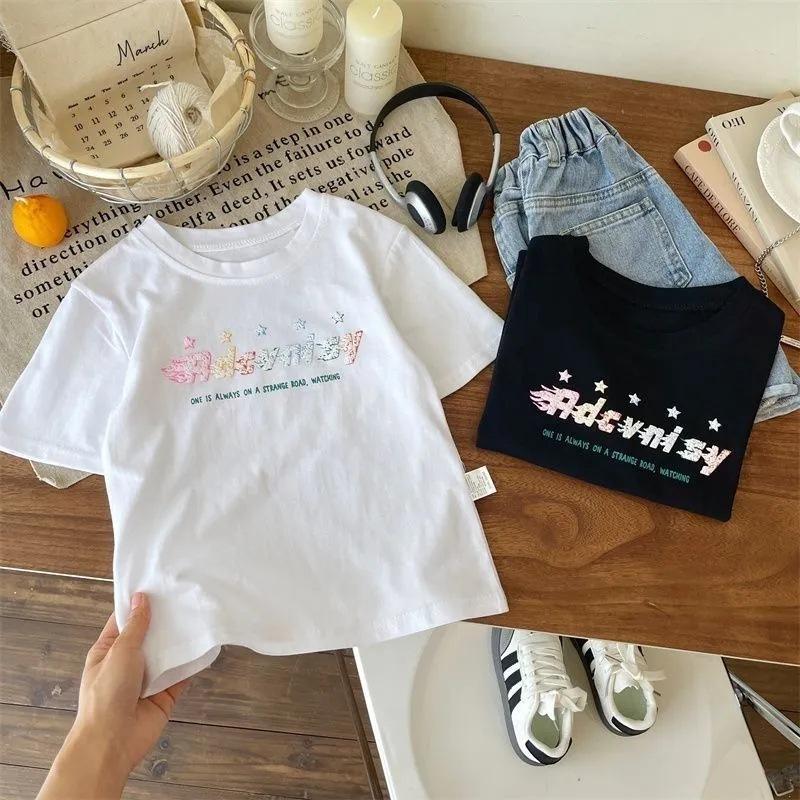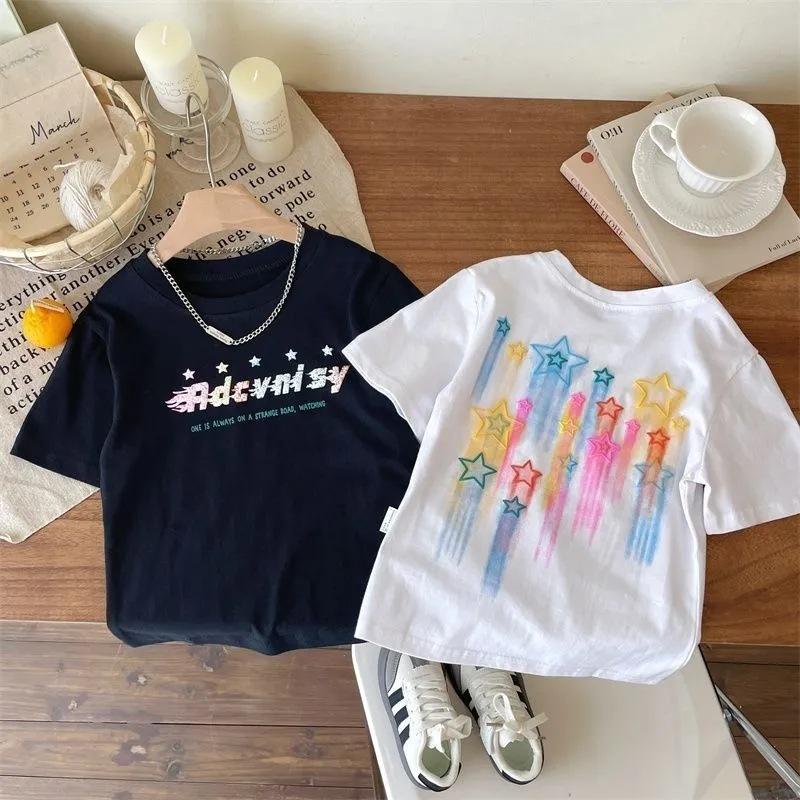 Ropa para Niños Niños y Niñas Camiseta de Algodón Top Verano Nuevo Infantil Estilo Coreano Combinable Lindo Estilo Occidental Camisa de Manga Corta para Bebé