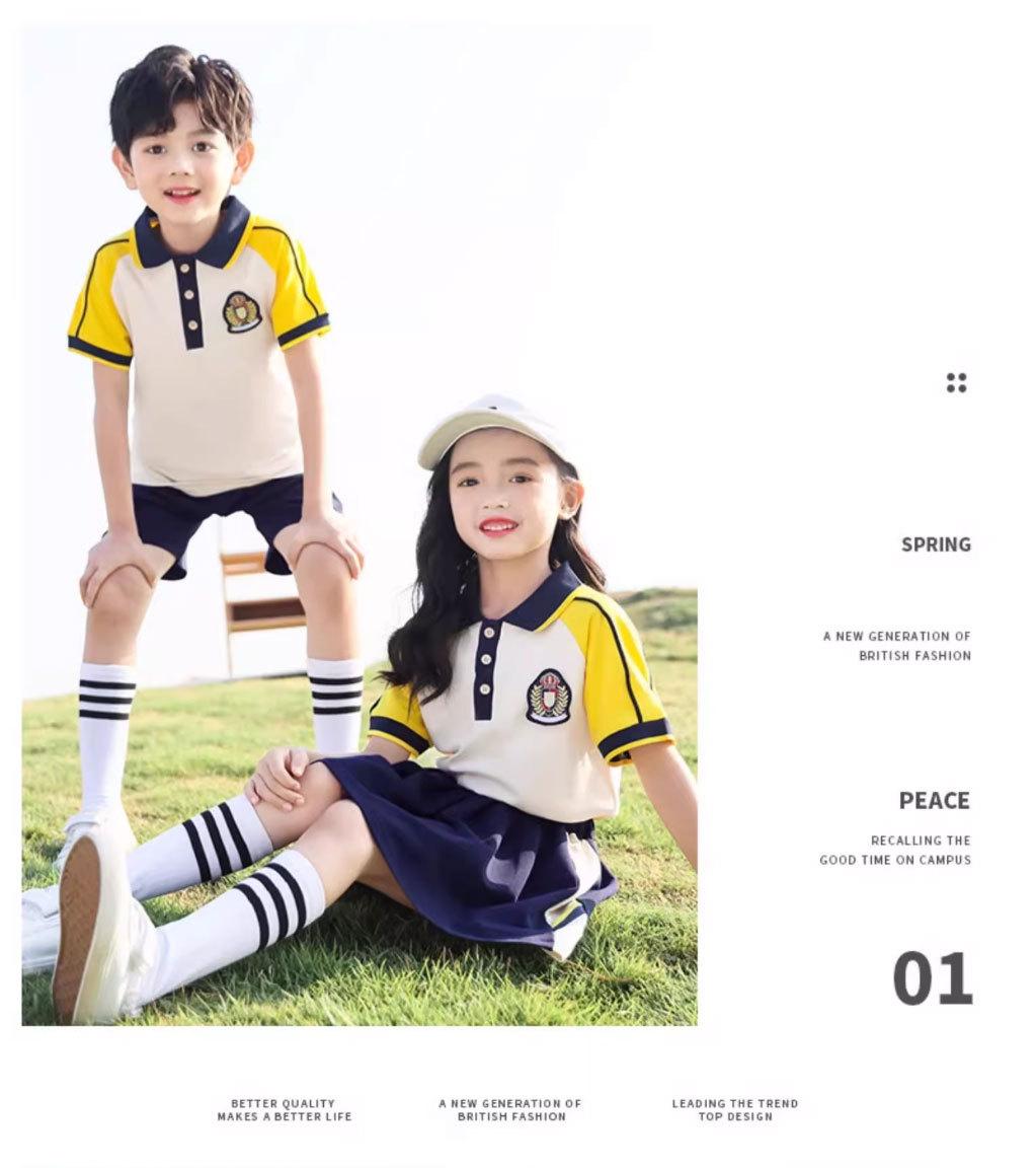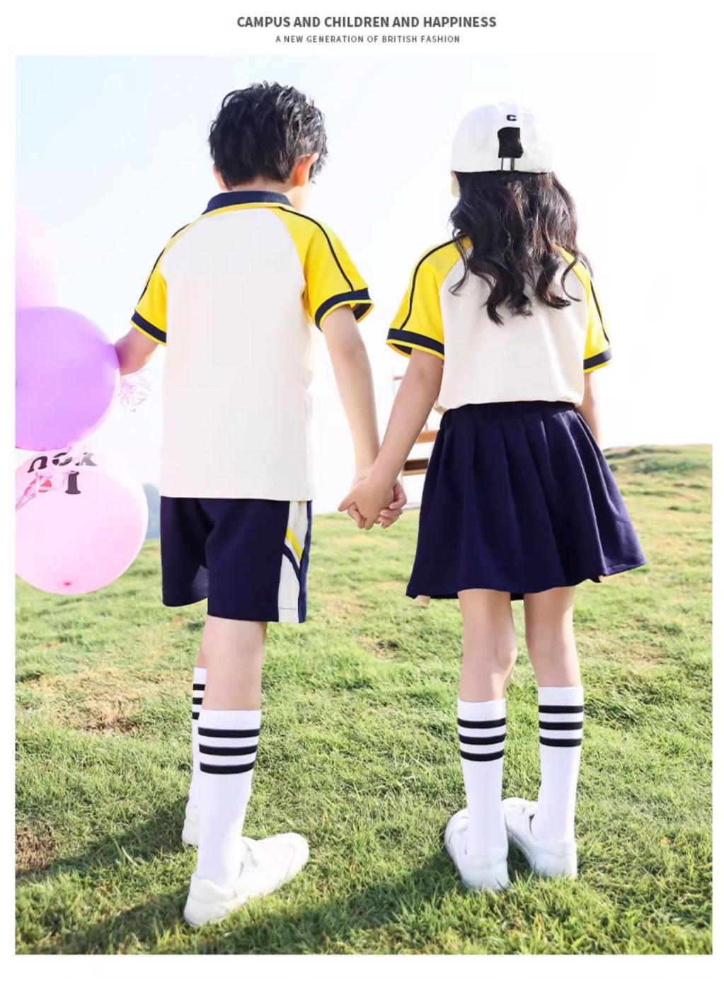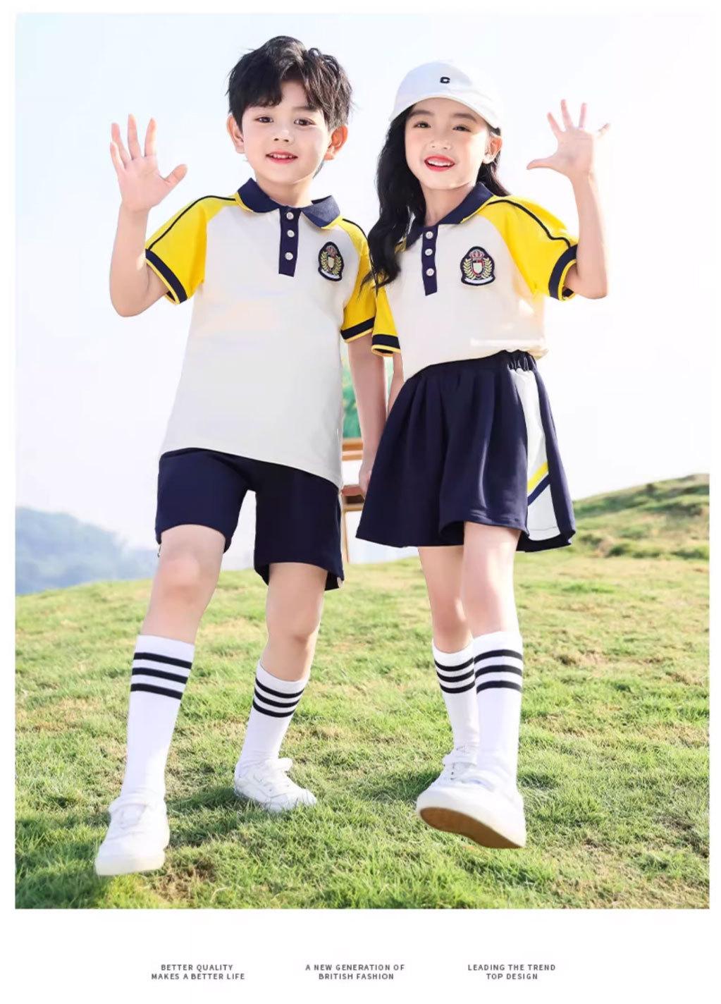 Uniforme de Jardín de Niños Primavera y Otoño Conjunto de Tres Piezas Estilo Universitario Uniforme de Escuela Primaria Amarillo Uniforme Infantil para Clase de Deportes Universitarios