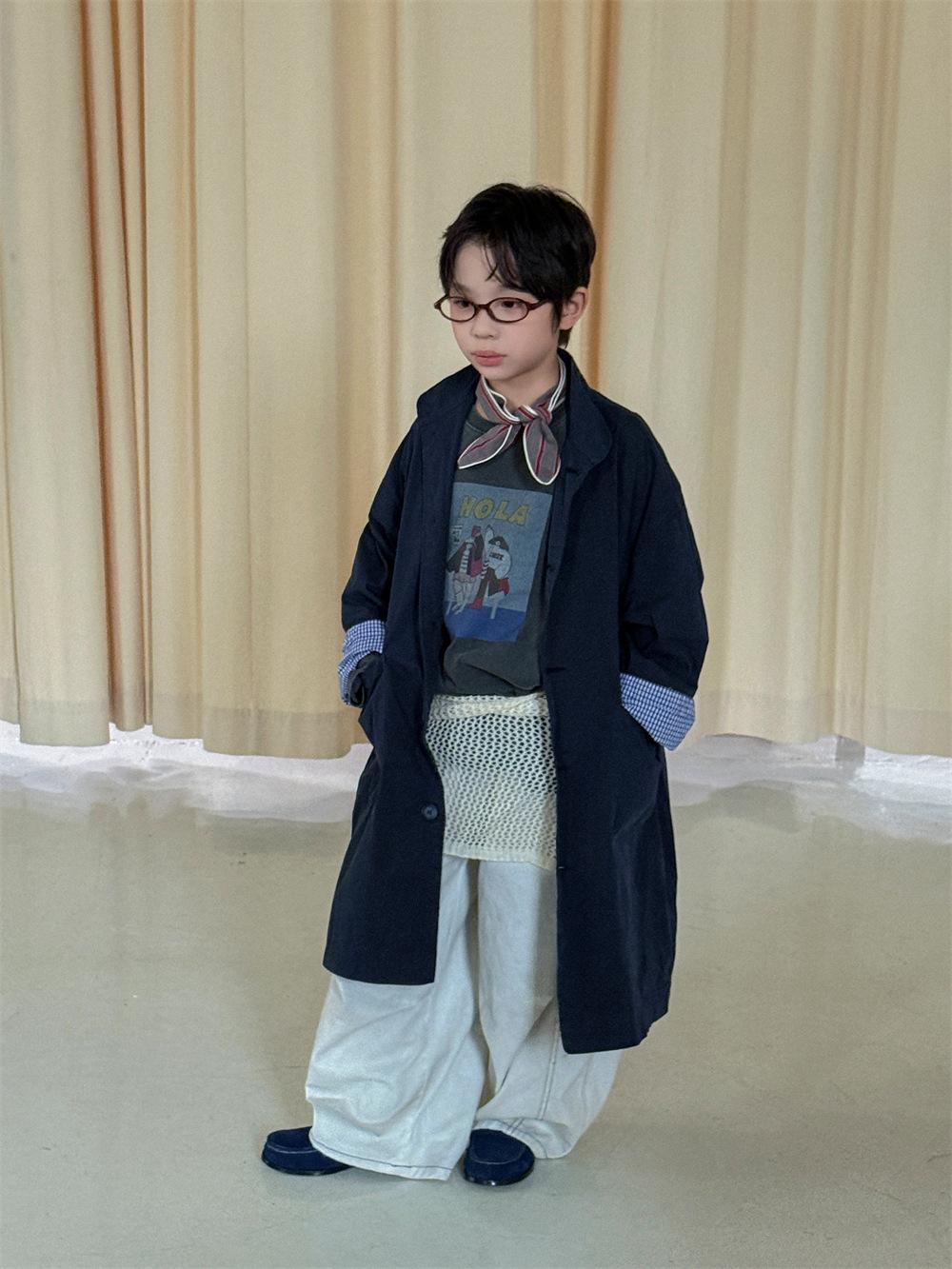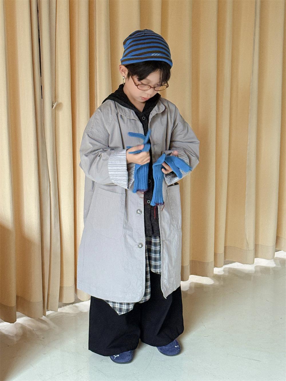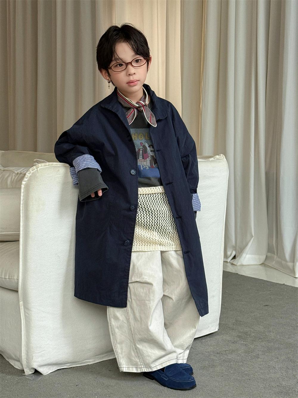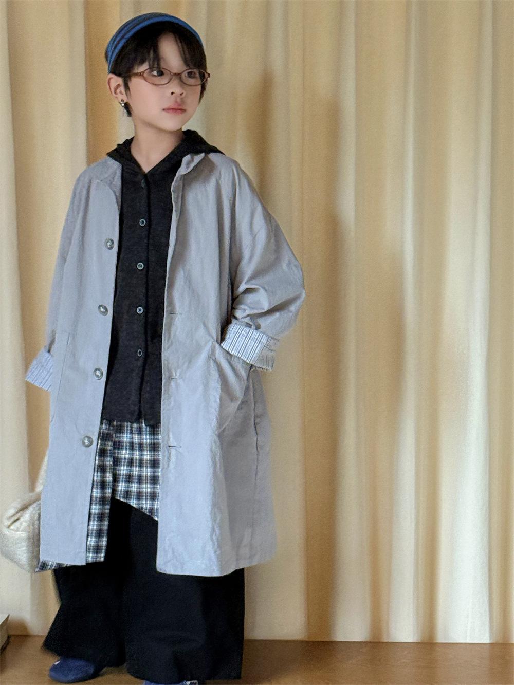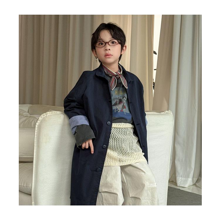 Cheese and Meow Ropa Infantil Abrigo Trench para Niño 2025 Otoño Nuevo Estilo Coreano Color Sólido Largo Abrigo Versátil para Niños Moderno